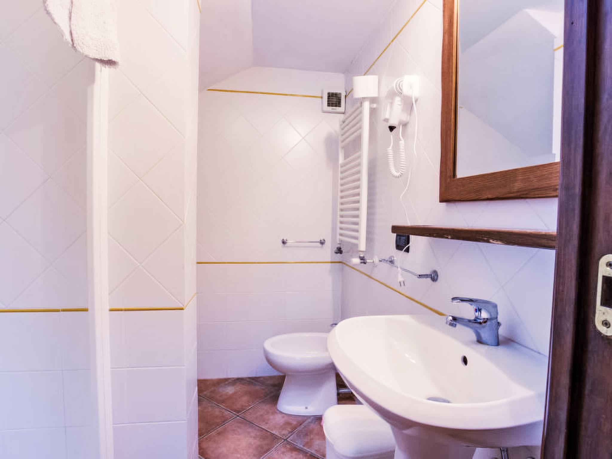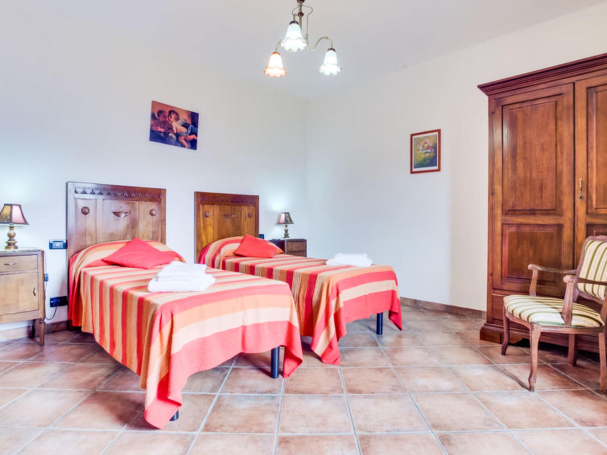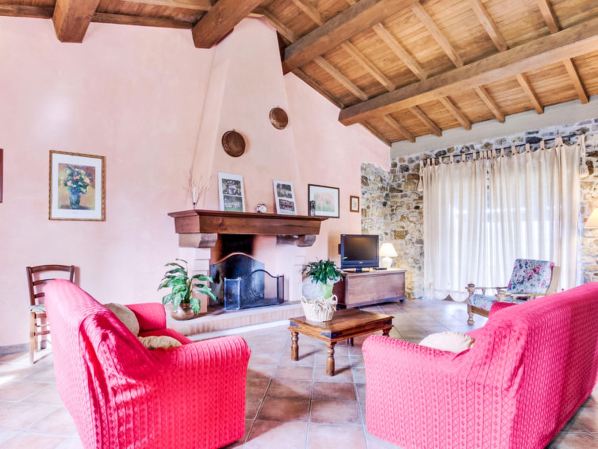 11-room house 400 m2 on 2 levels, on the ground floor. Open living room with open-hearth fireplace, satellite TV and hi-fi system. Open dining room. 1 room with 2 beds. 1 room with 2 beds. 2 double bedrooms. Open kitchen (4 hot plates, oven, dishwasher, freezer). 3 showers/bidet/WC. Upper floor: 1 double bedroom with shower/bidet/WC. 1 double bedroom with shower/bidet/WC. 2 rooms, each room with 2 beds. Large living/dining room with open-hearth fireplace, satellite TV and hi-fi system. Exit to the veranda. Kitchenette (4 hot plates, oven, dishwasher, freezer). Shower/bidet/WC. Gas heating. Terrace furniture, barbecue. Facilities: washing machine, children's high chair, hair dryer. Internet (WiFi, extra). Please note: maximum 1 pet/ dog allowed. Smoke alarm, fire extinguisher. IT046006B4PQW9AVPG