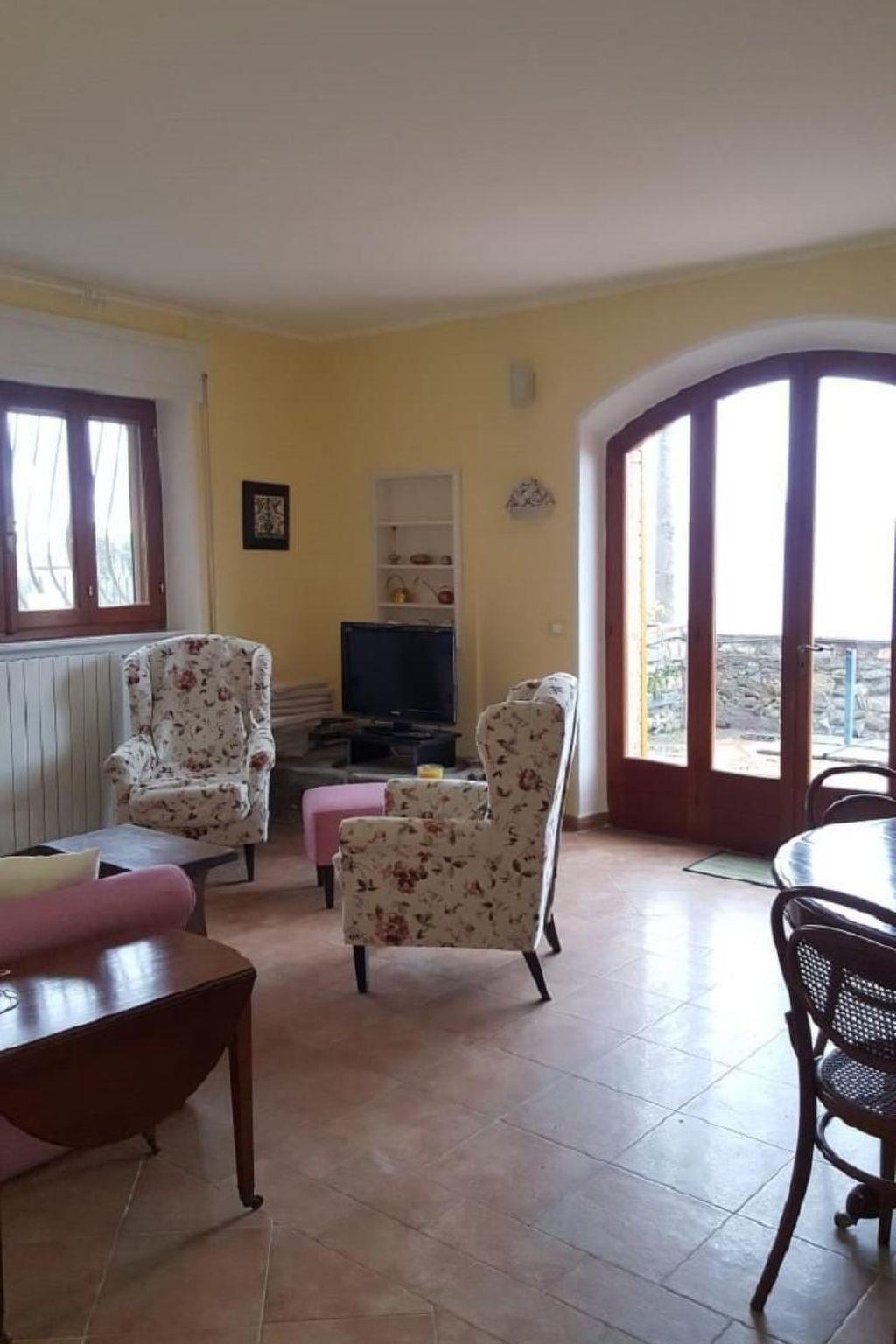 There is a large terrace (50 sq m) overlooking the Ligurian hills down to the seaOutside is furnished with outdoor tables and armchairsThere is a terraced garden with centuries-old olive trees, equipped with a mobile barbecue