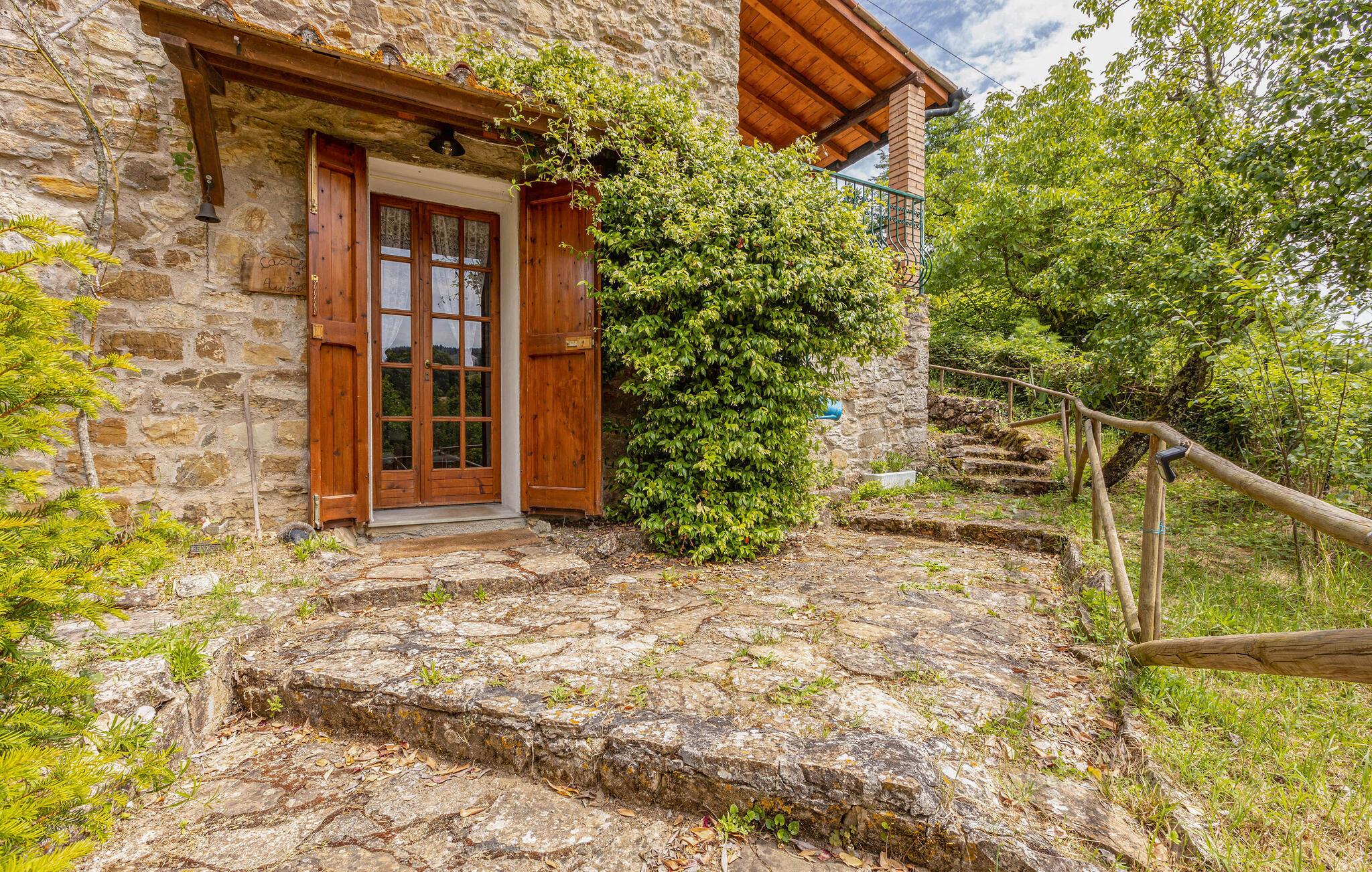 Tilbring en afslappende ferie i Castelnuovo Val di Cecina og nyd den idylliske atmosfære i dette charmerende stenhus. Huset er omgivet af natur, frodige skove og bølgende bakker, der lægger op til afslapning og fred. På den hyggelige terrasse kan I nyde jeres måltider udendørs, omgivet af det smukke toscanske landskab.
