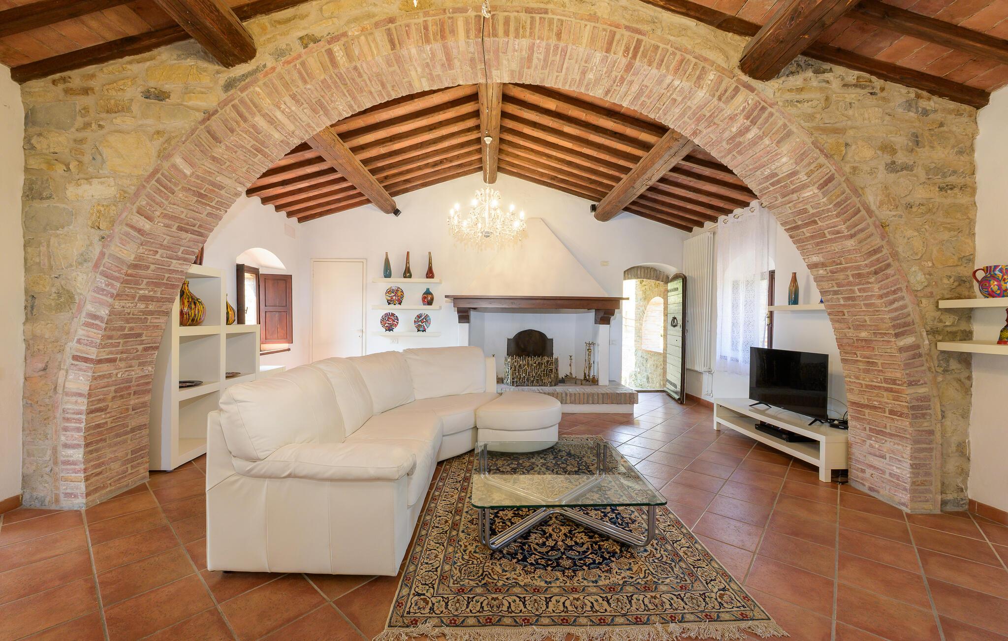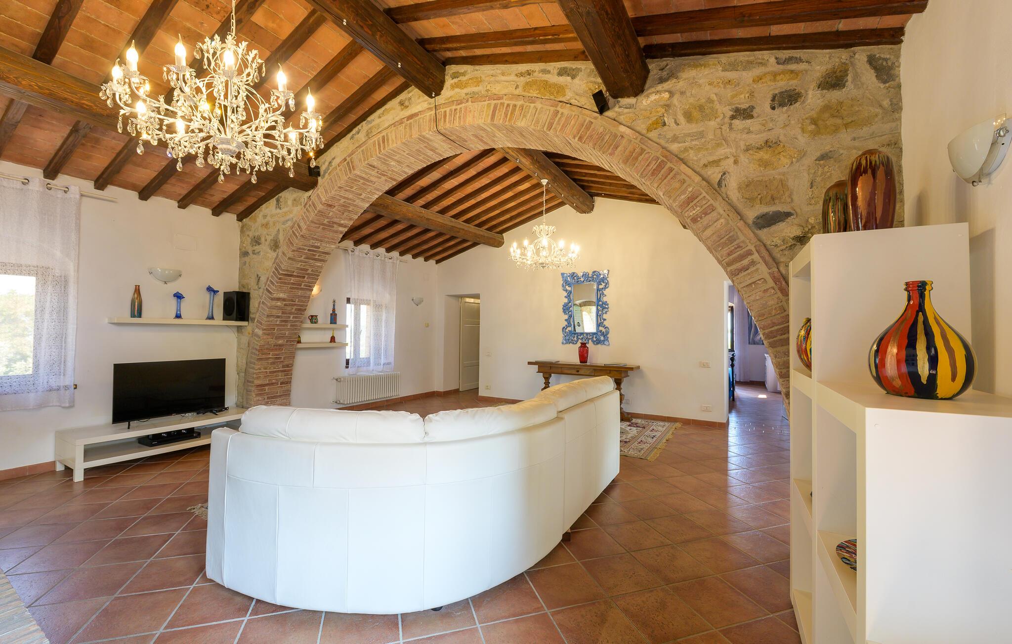 Nyd en afslappende pause og lad jer fortrylle af de maleriske omgivelser i dette traditionelle stenhus. Beliggende i et grønt bakket landskab tilbyder huset et vidunderligt tilflugtssted for jeres næste ferie i Toscana. Den hyggelige opholdsstue med rustikke træmøbler skaber en hyggelig atmosfære, hvor I straks vil føle jer hjemme.