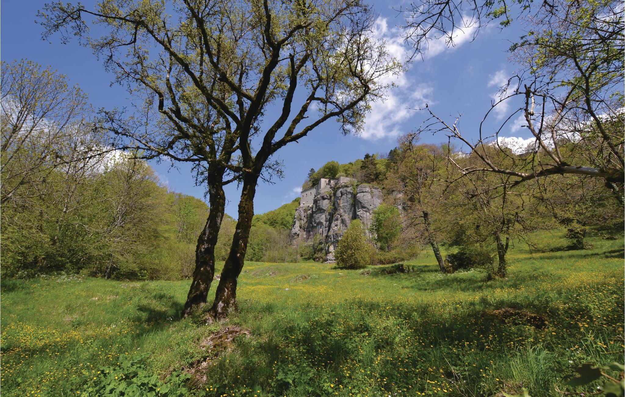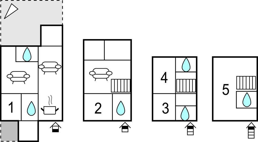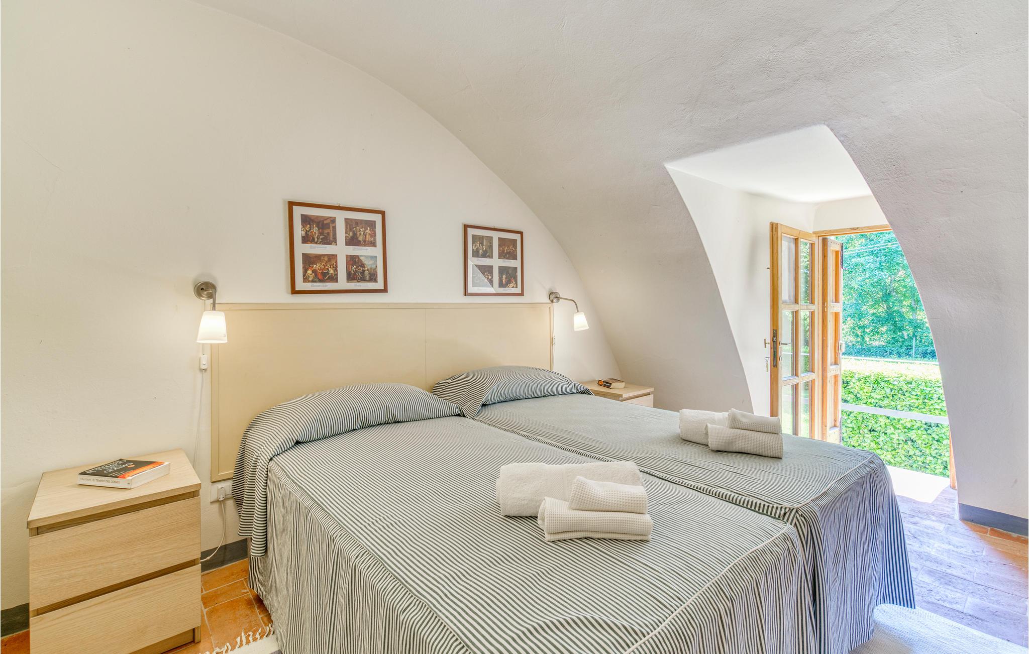 Den lyse stue kombineret med køkken og spisestue er under runde buer, her er også et hyggeligt kaminværelse, soveværelserne ligger på de øverste etager, hver med vid udsigt fra de tykke mure i den romantiske bjerglandsby. De fire etager er forbundet med udendørs trapper eller vindeltrapper (ikke egnet for børn og gangbesværede).
