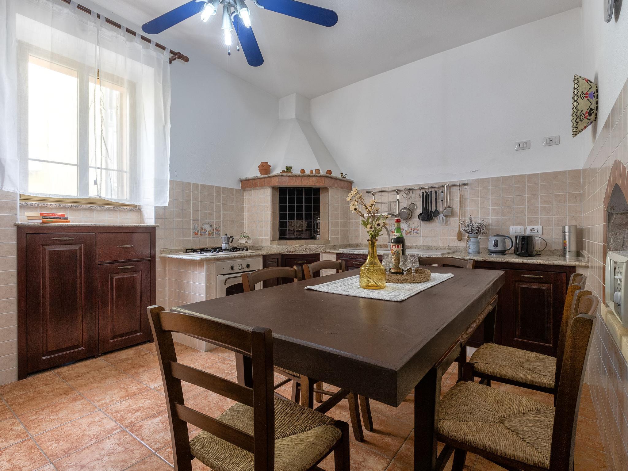"Sos Candhaleris", 4-room house 140 m2 on 2 levels, on the ground floor. Antique and cosy furnishings: entrance hall. Large kitchen (4 gas rings, toaster, kettle, microwave) with open-hearth fireplace (only for decoration), TV, flat screen and fan. Shower/bidet/WC, double hand-basin. Boiler. Upper floor: 1 double bedroom with TV, flat screen and fan. 2 double bedrooms, each room with fan. Facilities: washing machine, iron, hair dryer. Suitable for families. IT090046C2000T5186