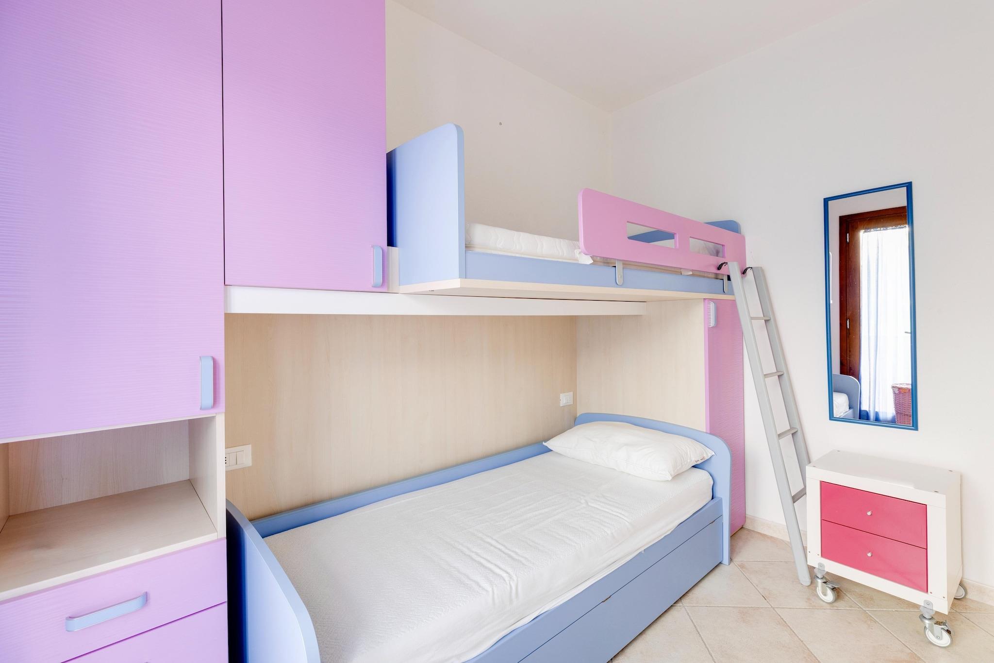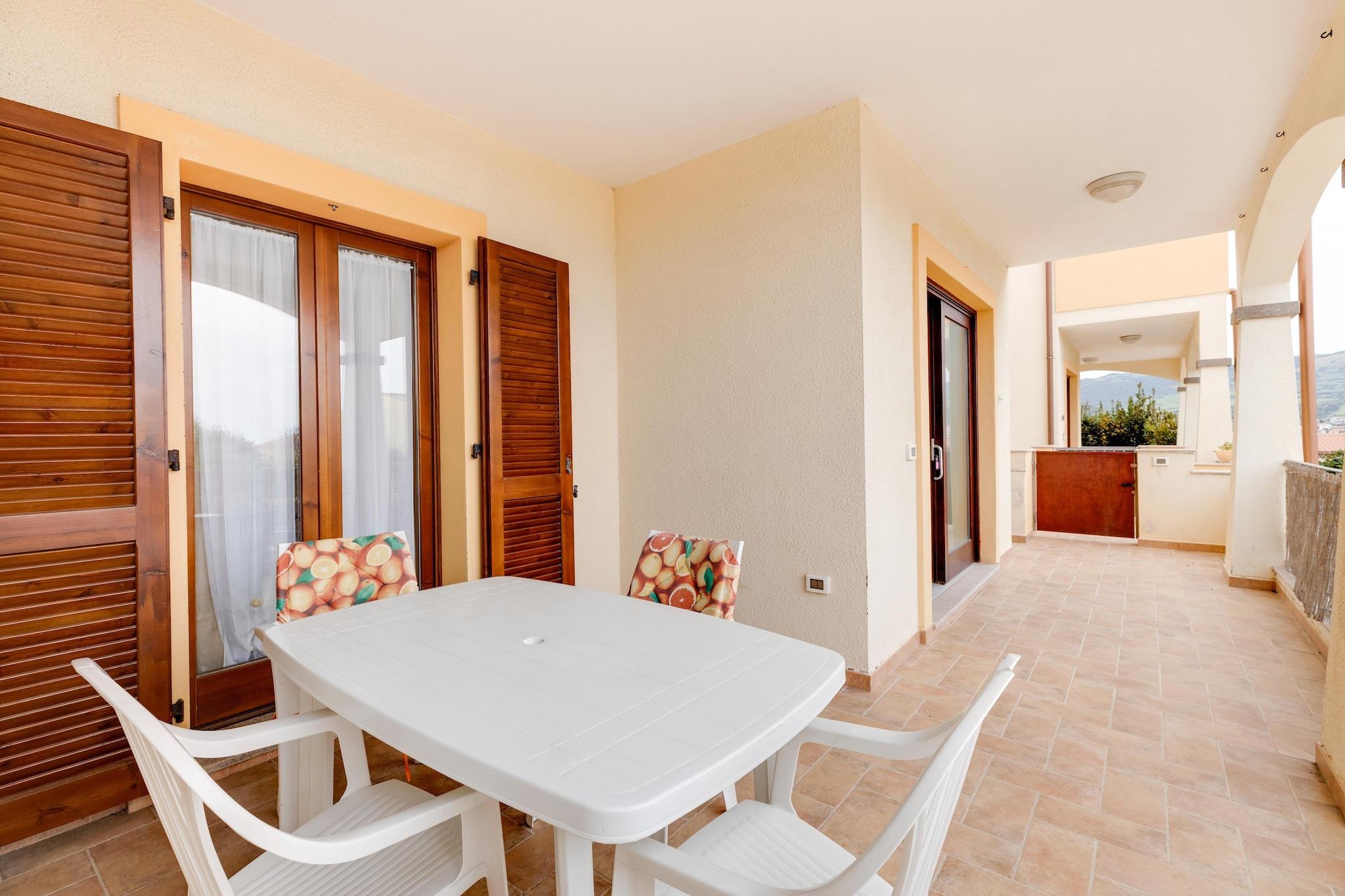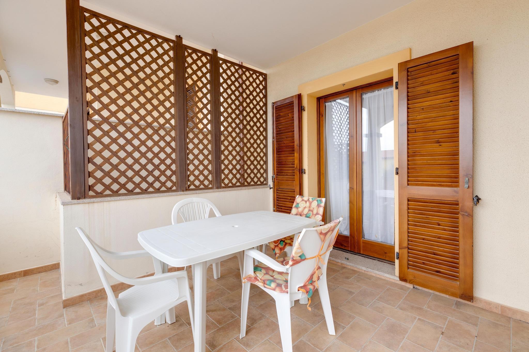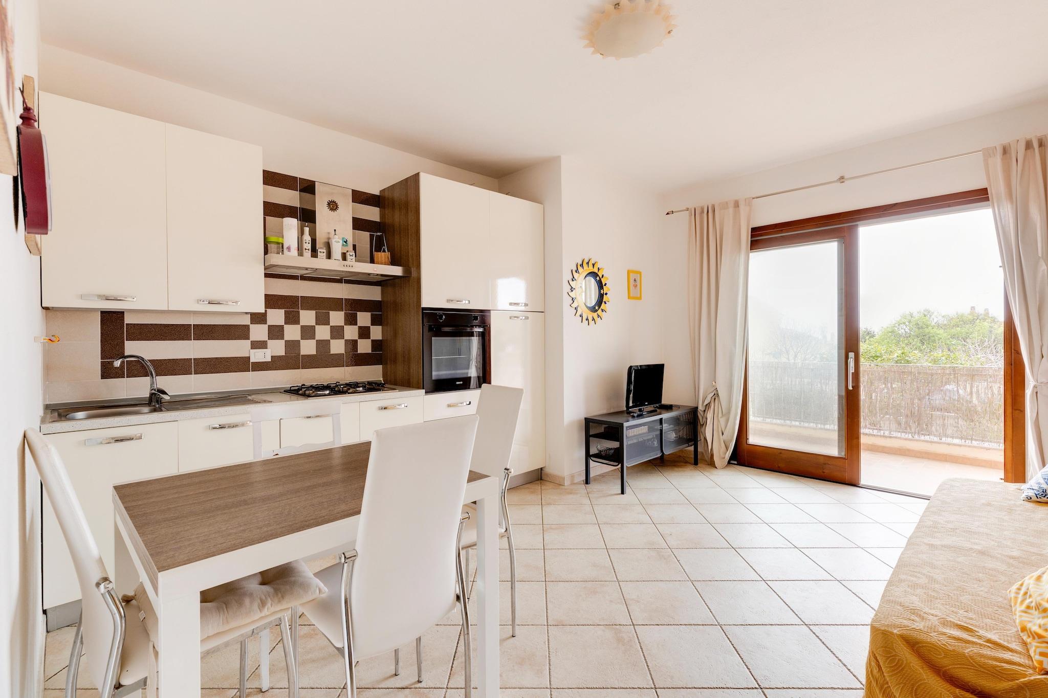 Denne charmerende treværelseslejlighed ligger gemt væk i det fredelige boligområde Lu Bagnu, kun få minutter fra Castelsardo's historiske centrum, og tilbyder et afslappet kystnært tilflugtssted for op til fire gæster. Med et generøst indendørsareal på 65 m² og yderligere 30 m² udendørsliv kombinerer lejligheden komfort, funktionalitet og en afslappet middelhavslivsstil, perfekt til familier, par eller venner, der søger sol, hav og enkelhed. Indenfor føles lejligheden lys og indbydende. Opholdsstuen kombinerer en hyggelig stue med et praktisk åbent tekøkken, ideelt til langsomme morgenmader eller nemme middage efter en stranddag. Aircondition holder rummet behageligt i de varmere måneder, mens spisebordet og tv'et inviterer dig til at slappe af sammen. Der er to velindrettede soveværelser: et med en komfortabel dobbeltseng og et andet med køjesenge, hvilket gør det særligt velegnet til familier med børn. Badeværelset er udstyret med bruser og vaskemaskine, hvilket tilføjer hverdagens bekvemmelighed til længere ophold. Udendørsliv er et sandt højdepunkt her. Træd ud på den 20 m² store veranda for afslappede måltider eller morgenkaffe, eller nyd den private bagterrasse og den lille have, der er indrettet til rolige øjeblikke under åben himmel. Gæsterne har også adgang til en sæsonåben fælles swimmingpool, der er perfekt til at køle af uden at forlade ejendommen. Lu Bagnus sandstrand ligger i nærheden, mens Castelsardos middelalderlige gamle bydel med sit slot, smalle gader og havudsigt kun ligger en kort køretur væk. Fra lokale trattoriaer og gåture langs havet til udflugter langs Sardiniens fantastiske nordkyst tilbyder denne lejlighed en nem og behagelig base for at udforske regionen i dit eget tempo.