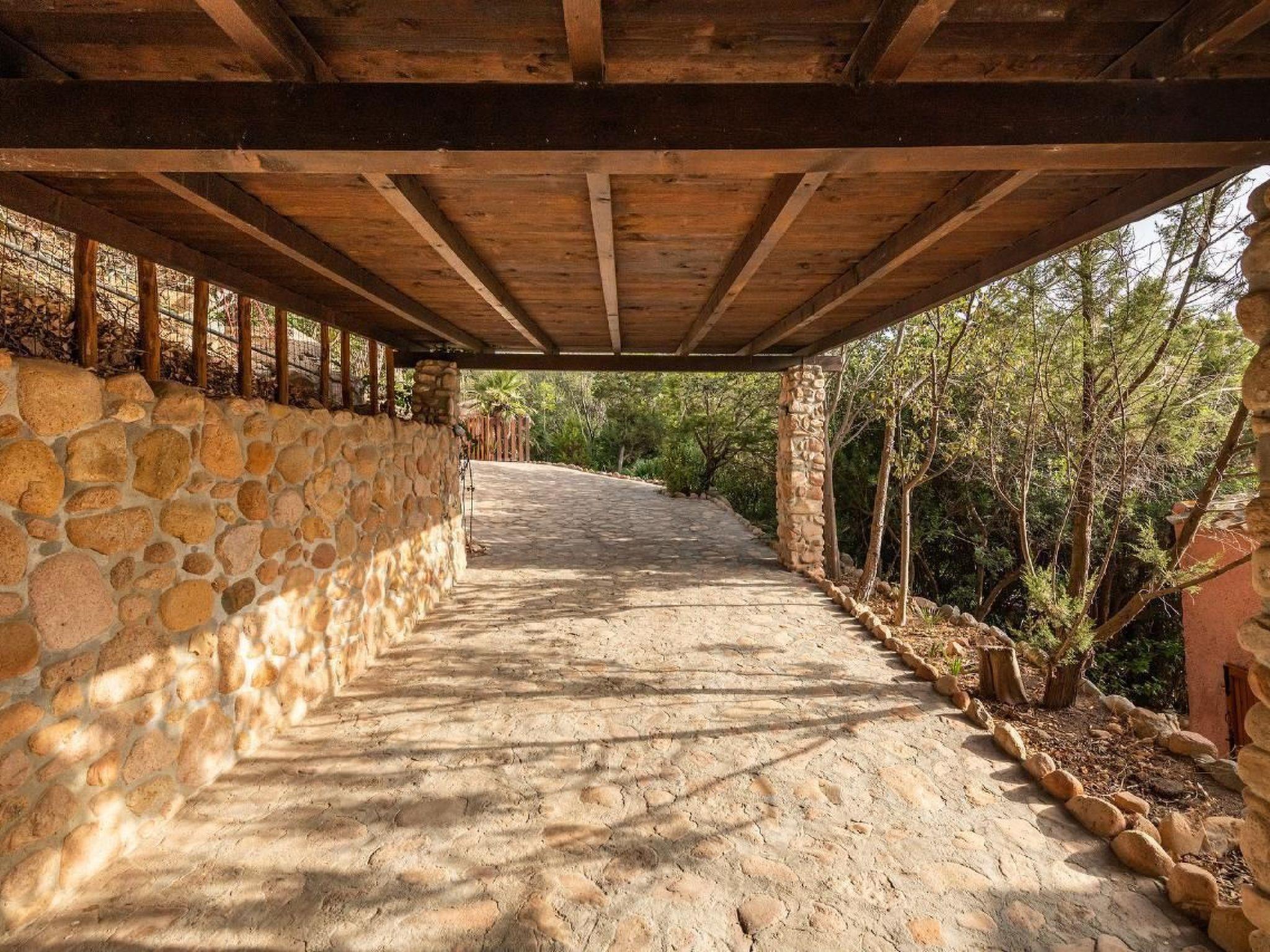 The villa is surrounded by thick Mediterranean-type vegetation.