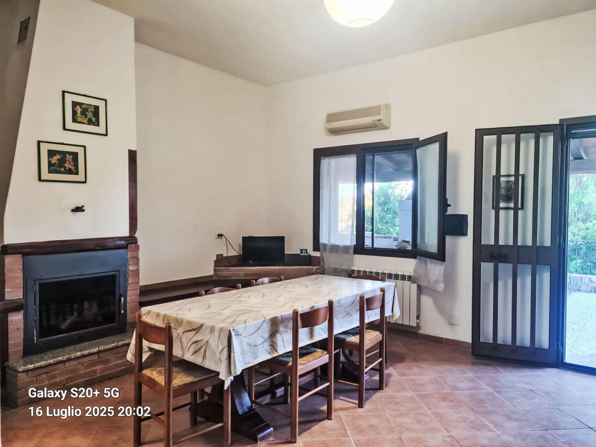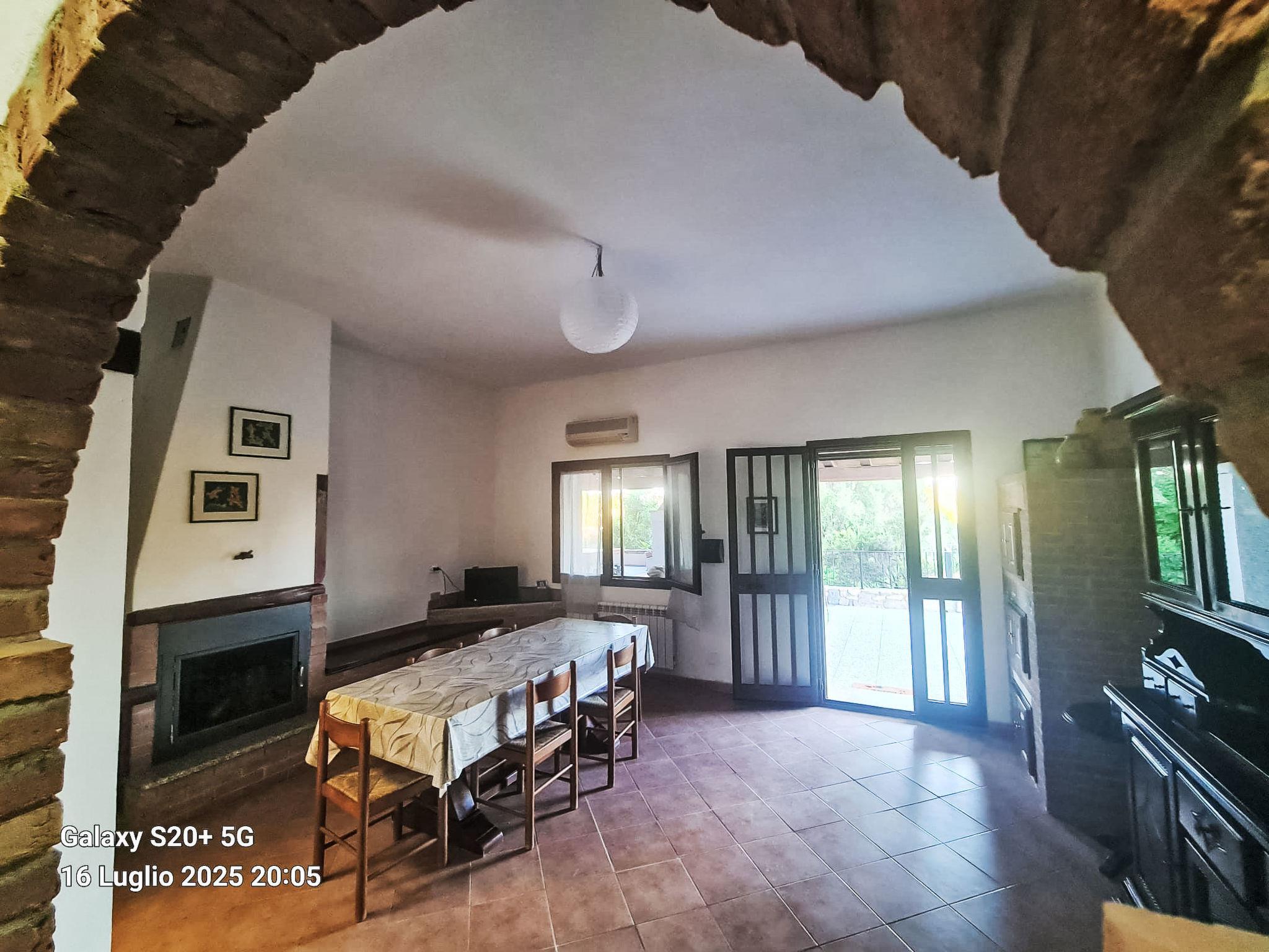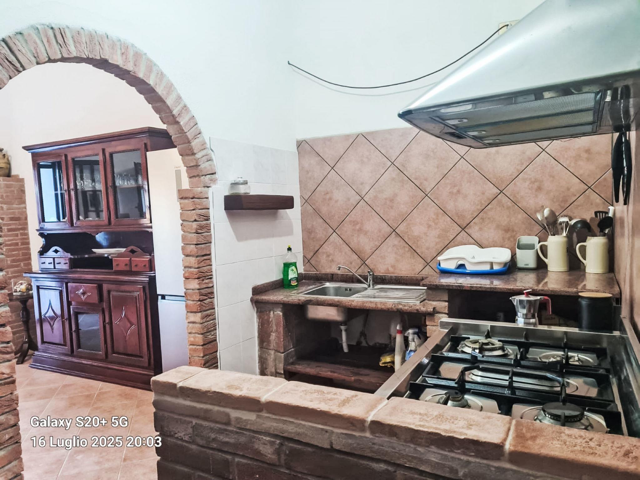 "Silos", 4-room house. Comfortable and cosy furnishings: living/dining room with open-hearth fireplace (only for decoration), dining table, TV and air conditioning. Exit to the veranda. Walk-through room with 1 x 2 bunk beds. Exit to the terrace. 2 rooms, each room with 1 double bed. Kitchenette (oven, 5 gas rings). Bath/shower/bidet/WC. Air-conditioning, forced-air heating. Heating not available in all rooms. Large terrace partly roofed. Terrace furniture, barbecue. View of the countryside. Facilities: washing machine, iron, children's high chair, baby cot for up to 2 year olds (extra), hair dryer. Parking at the house. IT111011C2000T7510