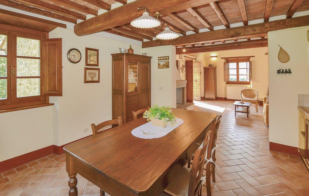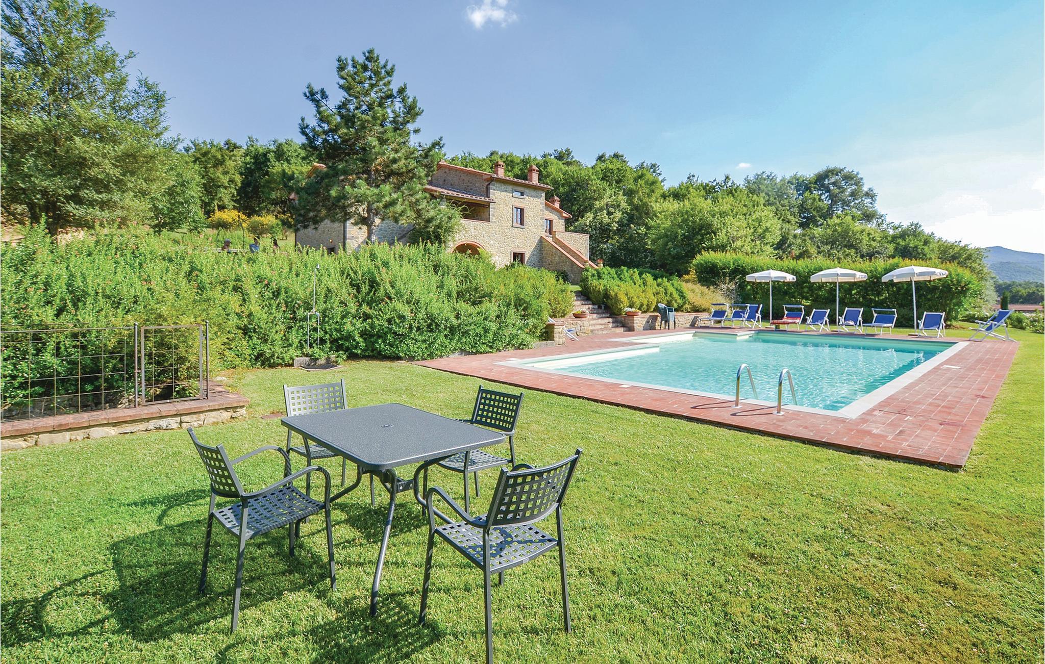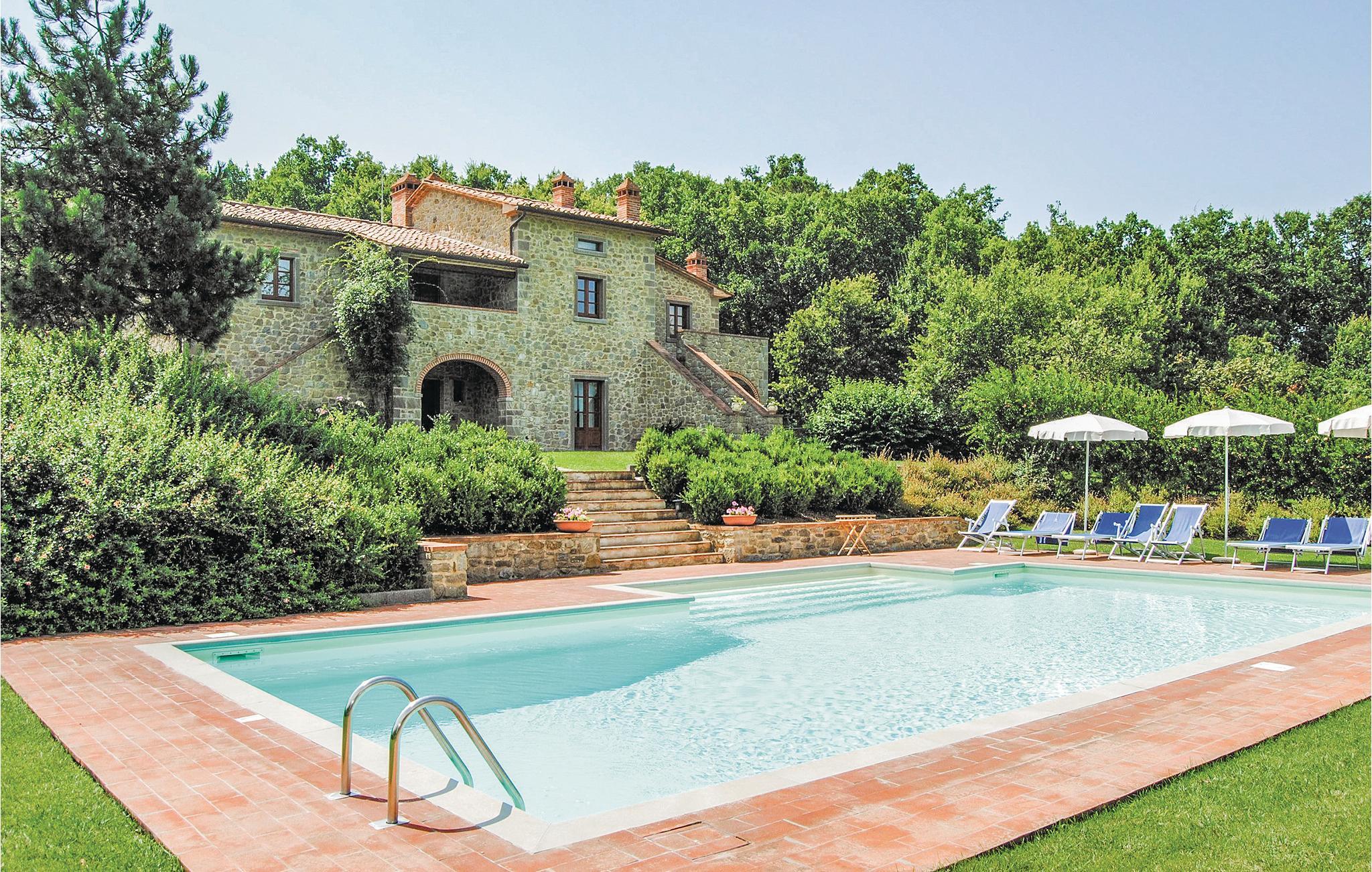 Dette komfortable landhus ligger i romantiske omgivelser, 7 km fra Castiglion Fiorentino og tilbyder de helt ideelle rammer til den afslappende familieferie. Huset består af tre lejligheder, som er smagfuldt indrettet, og som kun udlejes sammen. I alt er der fem soveværelser, et på hemsen under skråtag, med eget badeværelse. Dertil er der i stueetagen en stor stue med satellit-tv, åben pejs og er godt udstyret alrum med køkken og udgang til haven: Det store velholdte haveområde med udendørs køkken (grill, barbecue og overdækket siddeplads), lille skovområde, bordtennis og fælles swimmingpoolområde står alene til jeres rådighed. Her er der mange solrige og skyggefulde siddepladser samt forskellige små pavilloner med vidunderlig udsigt over Val di Chio. Området er helt ideelt til jer, der gerne vil lære de skønne kunstbyer i Toscana og Umbrien at kende. Oplev kulturelle seværdigheder i de gamle byer Arezzo, Siena, Perugia, Cortona eller den lille by Montepulciano, som også er kendt for sin produktion af Nobile-rødvin. Et besøg værd er bestemt også den pittoreske by Pienza, hvor I skal smage på den fremragende, lokale pecorino-gedeost, og den smukke Trasimenosø med sine strande med udstyr til leje. I Castiglion Fiorentino er der alle slags butikker, gode restauranter og barer til en cappuccino eller aperitivo på piazzaen.
