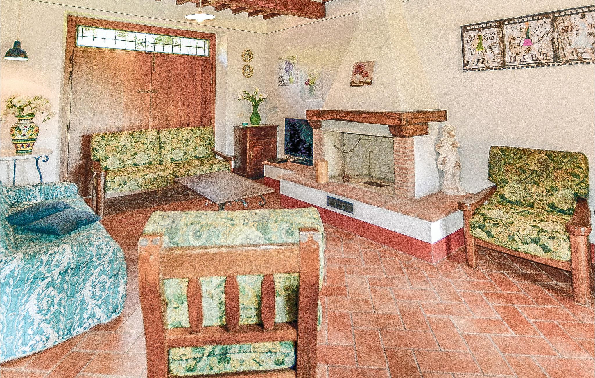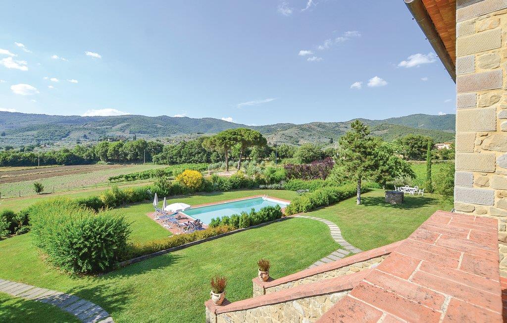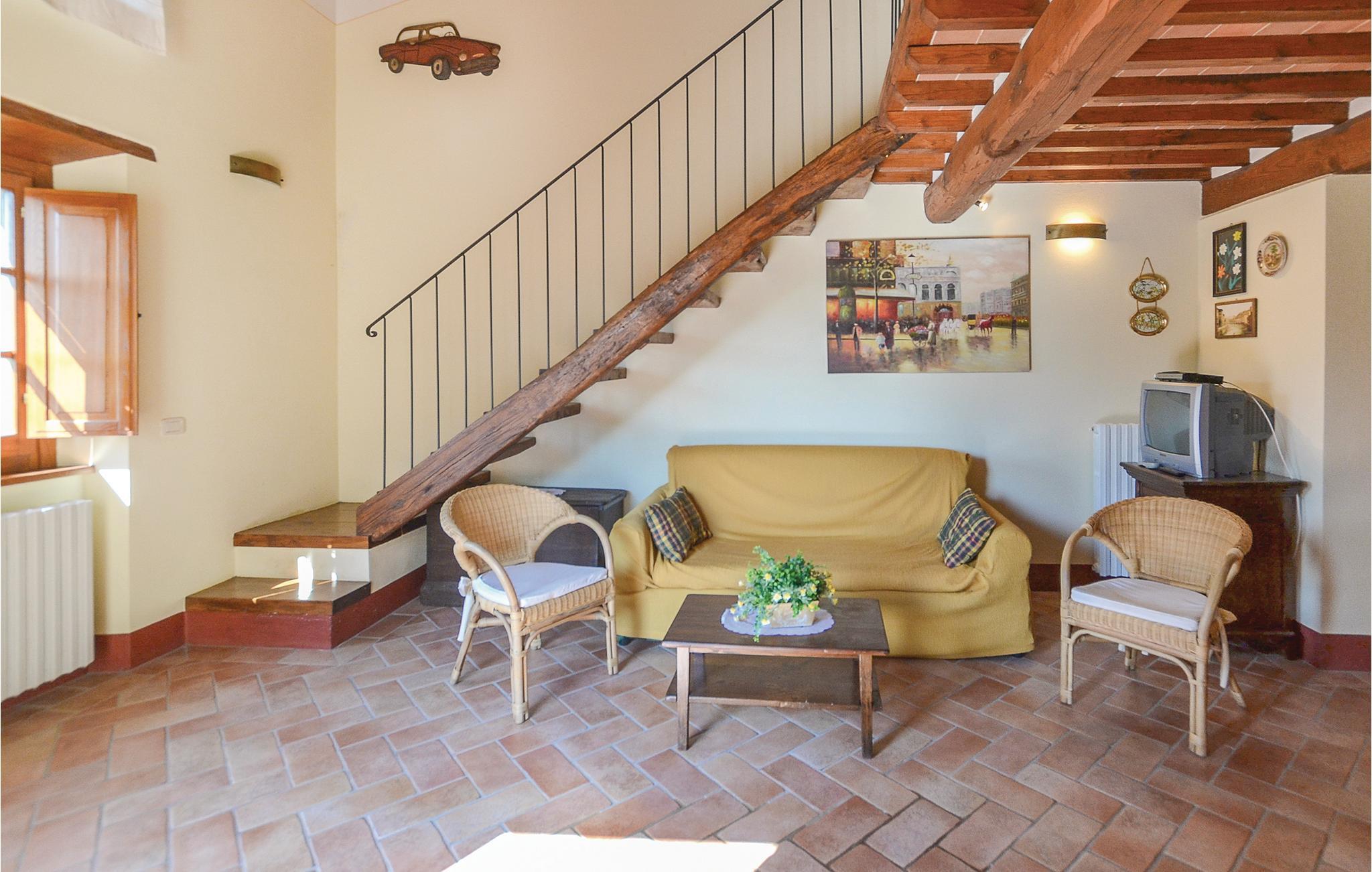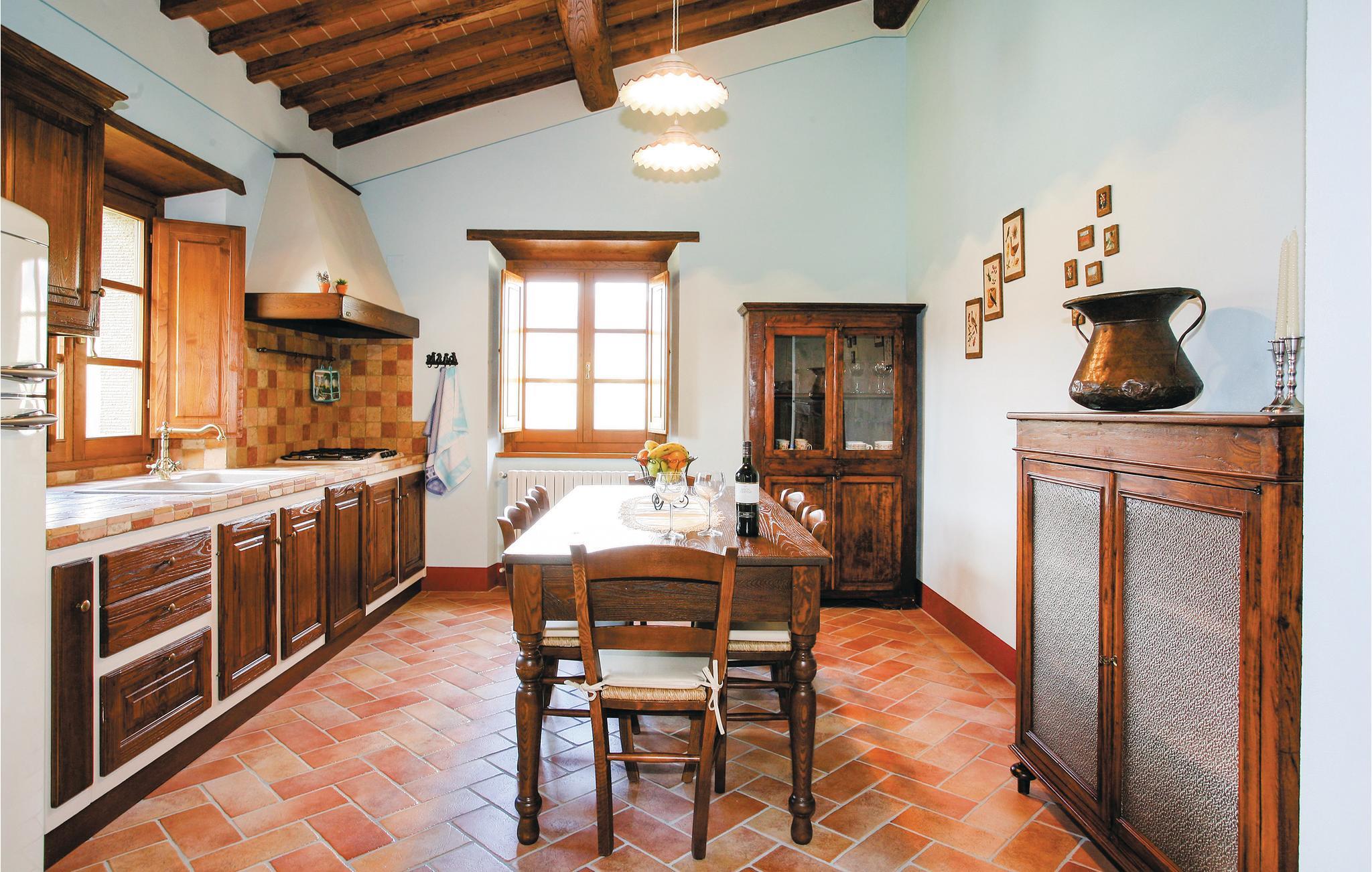 Dette komfortable landhus ligger i romantiske omgivelser, 7 km fra Castiglion Fiorentino og tilbyder de helt ideelle rammer til den afslappende familieferie. Huset består af tre lejligheder, som er smagfuldt indrettet, og som kun udlejes sammen. I alt er der fem soveværelser, et på hemsen under skråtag, med eget badeværelse. Dertil er der i stueetagen en stor stue med satellit-tv, åben pejs og er godt udstyret alrum med køkken og udgang til haven: Det store velholdte haveområde med udendørs køkken (grill, barbecue og overdækket siddeplads), lille skovområde, bordtennis og fælles swimmingpoolområde står alene til jeres rådighed. Her er der mange solrige og skyggefulde siddepladser samt forskellige små pavilloner med vidunderlig udsigt over Val di Chio. Området er helt ideelt til jer, der gerne vil lære de skønne kunstbyer i Toscana og Umbrien at kende. Oplev kulturelle seværdigheder i de gamle byer Arezzo, Siena, Perugia, Cortona eller den lille by Montepulciano, som også er kendt for sin produktion af Nobile-rødvin. Et besøg værd er bestemt også den pittoreske by Pienza, hvor I skal smage på den fremragende, lokale pecorino-gedeost, og den smukke Trasimenosø med sine strande med udstyr til leje. I Castiglion Fiorentino er der alle slags butikker, gode restauranter og barer til en cappuccino eller aperitivo på piazzaen.
