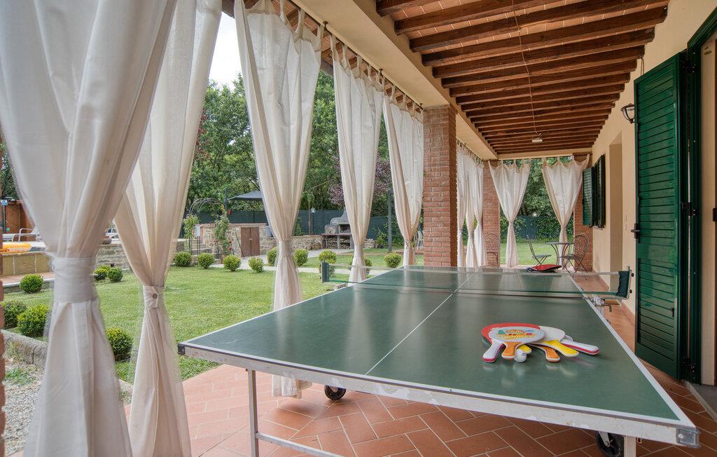 Feriehuset er noget særligt med sin smagfulde indretning og byder på masser af plads til en stor familie. I den hyggelige opholdsstue kan I finde jer godt til rette på den komfortable sofa. Det moderne køkken er veludstyret og lægger op til at tilberede autentiske toscanske specialiteter. Indtag jeres måltider i den stilfulde spiseplads og nyd tiden i godt selskab.