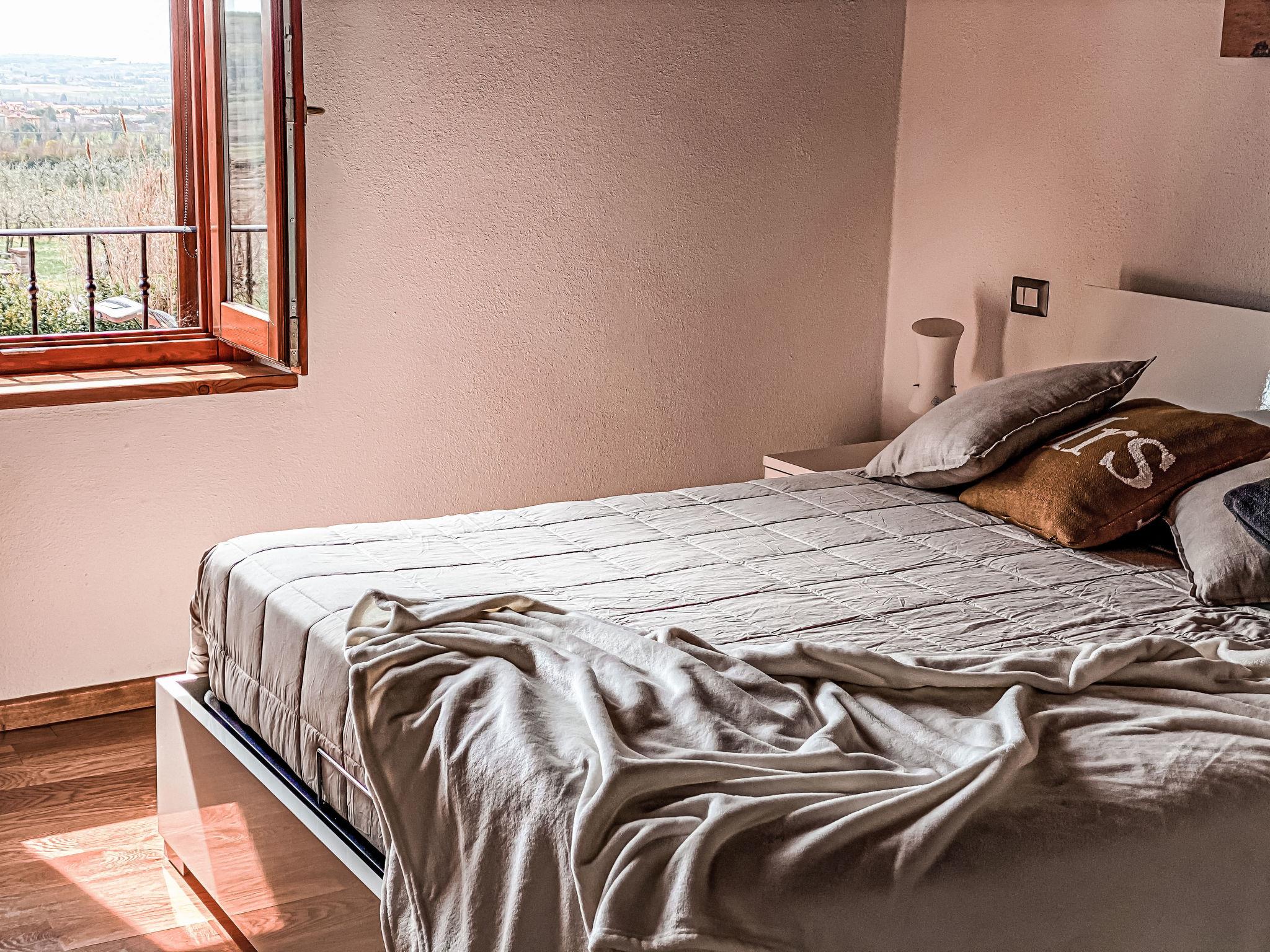 Beautiful, comfortable villa "Il Sogno Di Pietro", surrounded by trees and fields. Property composed of main house and outbuilding 6 km from the centre of Castiglion Fiorentino. Private: property 6'500 m2 (fenced), lawn, swimming pool (12 x 4 m, depth 140 cm, seasonal availability: 01.Apr. - 30.Oct.). Outdoor shower, pergola, garden furniture, barbecue, pool maintenance by the owner/gardener. In the house: infrared sauna, spa area (all included). Parking (for 6 cars) on the premises. Grocery 3 km, supermarket 3 km, restaurant 1 km, bus stop 1.5 km, thermal baths "Rapolano Terme" 37 km, bathing lake "Trasimeno". Nearby attractions: Cortona 13 km, Arezzo 16 km, Lucignano 20 km, Passignao Sul Trasimeno 31 km, Castiglione Del Lago 33 km, Pienza 47 km. The owner does not accept any youth groups. Annex consisting of a living room/kitchenette, one double bedroom and a bathroom with a shower. The mentioned pool can be heated at an additional cost, subject to prior booking of the service.
