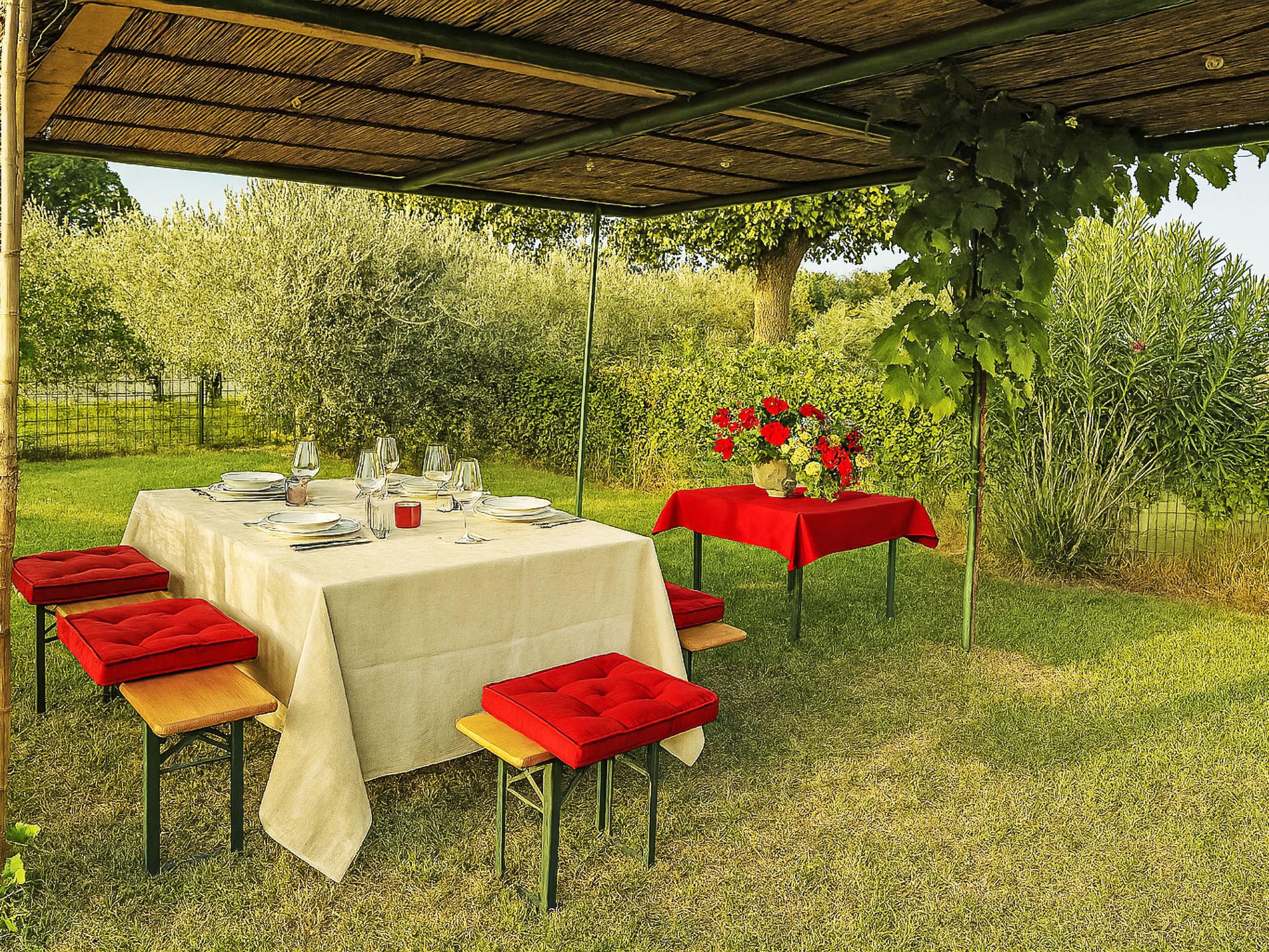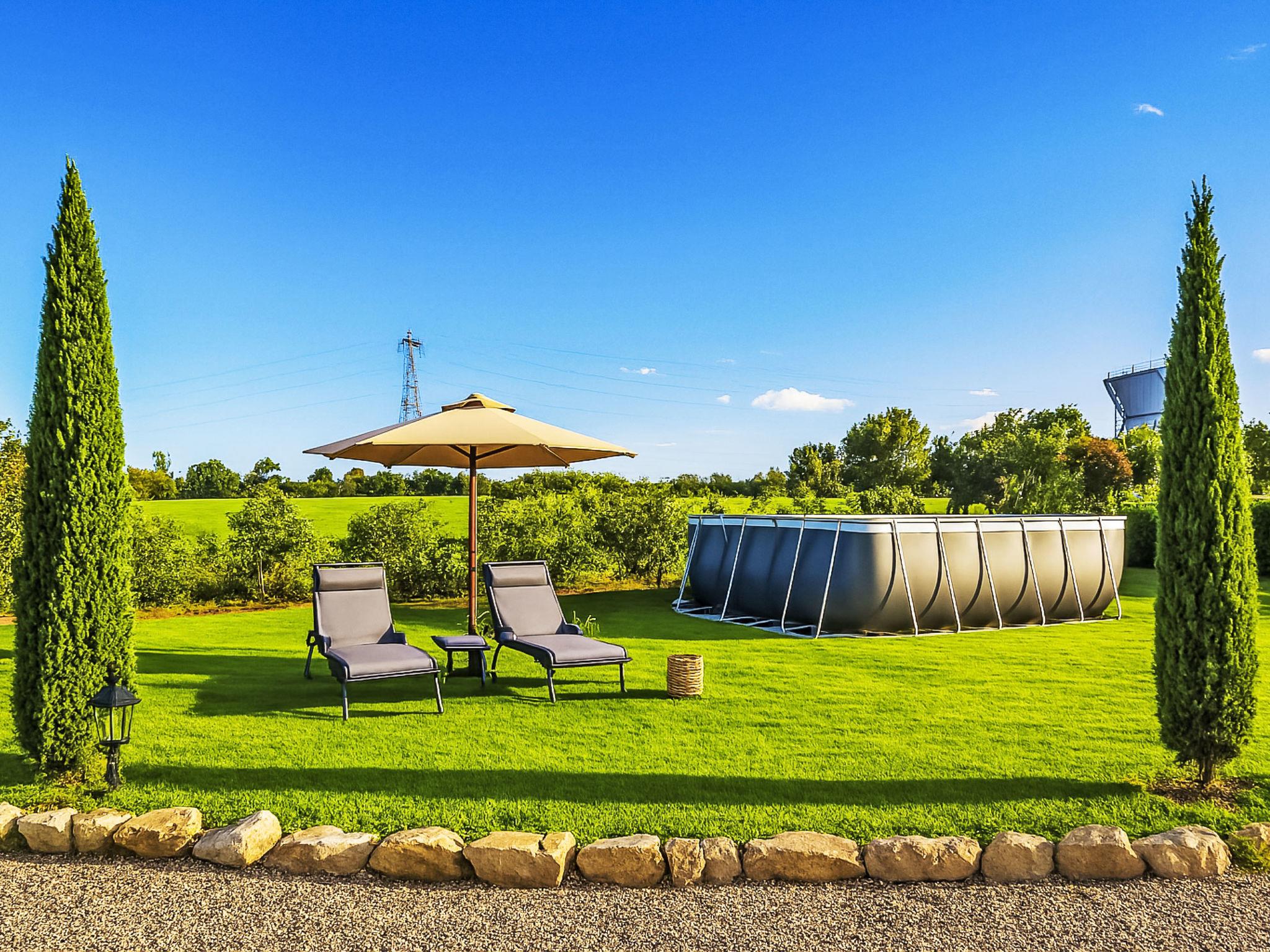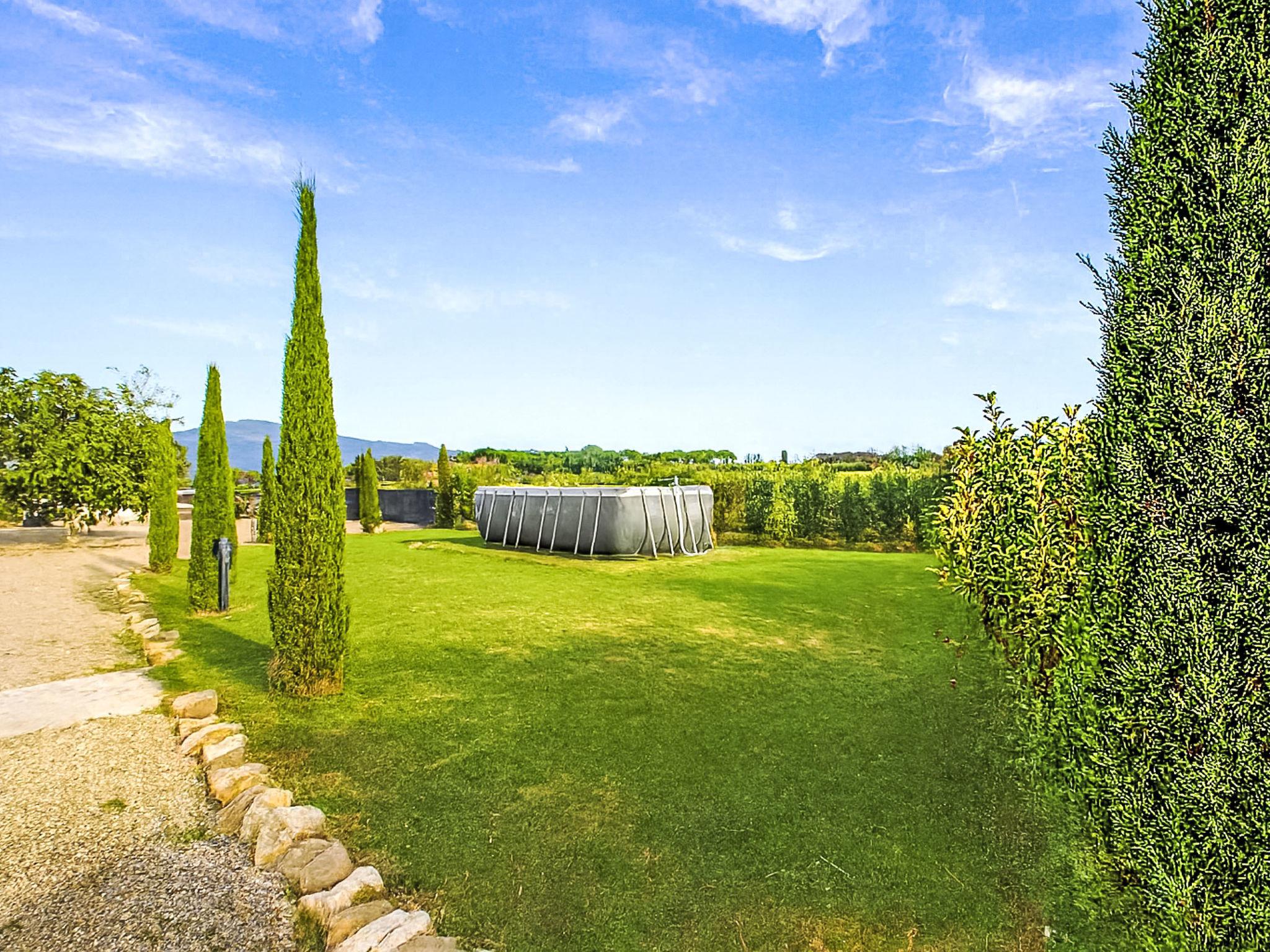 Modern, cosy house "Il Tiglioré", semi-detached, renovated, surrounded by fields. 5 km from the centre of Castiglion Fiorentino. Private: well-kept garden (fenced) with wildlife garden and trees, swimming pool (above ground) (6 x 3 m, depth 132 cm, seasonal availability: 01.Jun. - 31.Aug.). Arbour, garden furniture, barbecue, parking on the premises. Supermarket 3.3 km, restaurant 3 km, bus stop 600 m. Nearby attractions: Cortona 16 km, Arezzo 19 km, Montepulciano 33 km, Firenze 99 km. Well-known lakes can easily be reached: Lago Trasimeno 40 km. Please note: car recommended. The owner lives in the same residence.