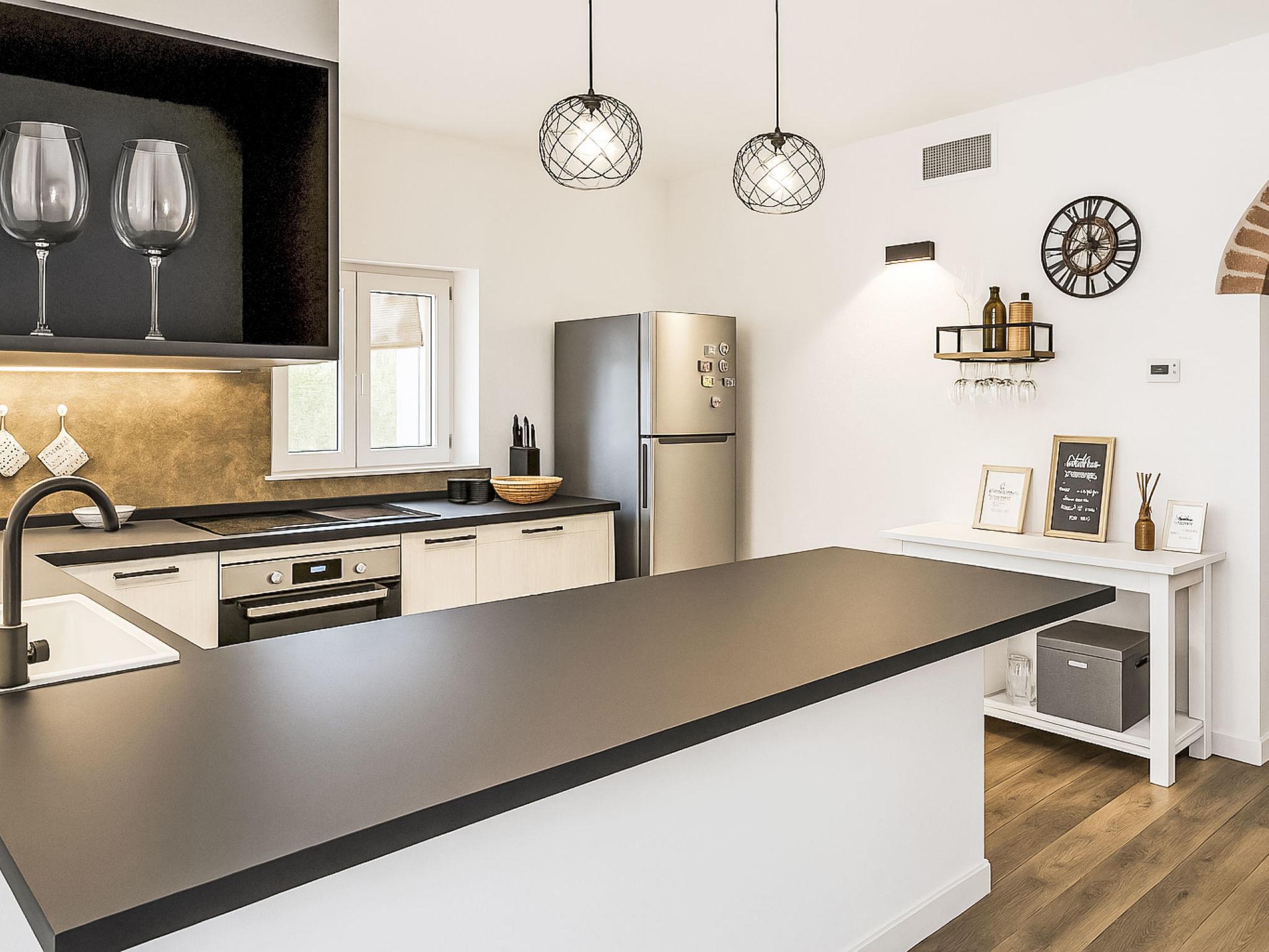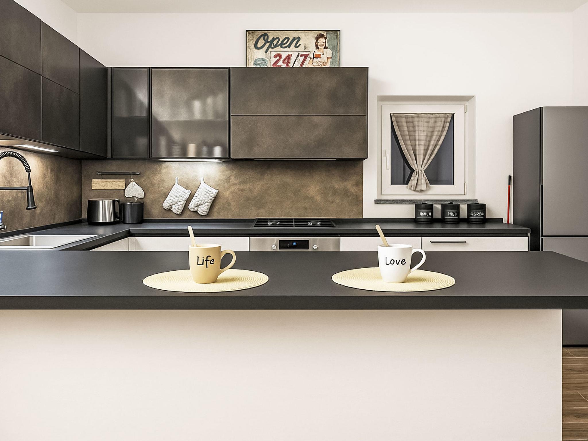"Il Tiglioré", 3-room house 80 m2, on the ground floor. Bright, fully renovated, modern and tasteful furnishings: living/dining room with dining table and TV (flat screen). Exit to the garden. 2 rooms, each room with 1 double bed (160 cm, length 190 cm), air conditioning and forced-air heating. Open kitchen (oven, dishwasher, 4 induction hot plates, toaster, kettle, microwave, electric coffee machine). Exit to the garden. Shower/bidet/WC. Air-conditioning, forced-air heating. Heating available only from 15.10. to 15.04. Large garden, porch. Barbecue, sitting area. Facilities: Internet (WiFi, free). Parking. Maximum 1 small pet/ dog allowed. IT051012C2BDTKR6JI