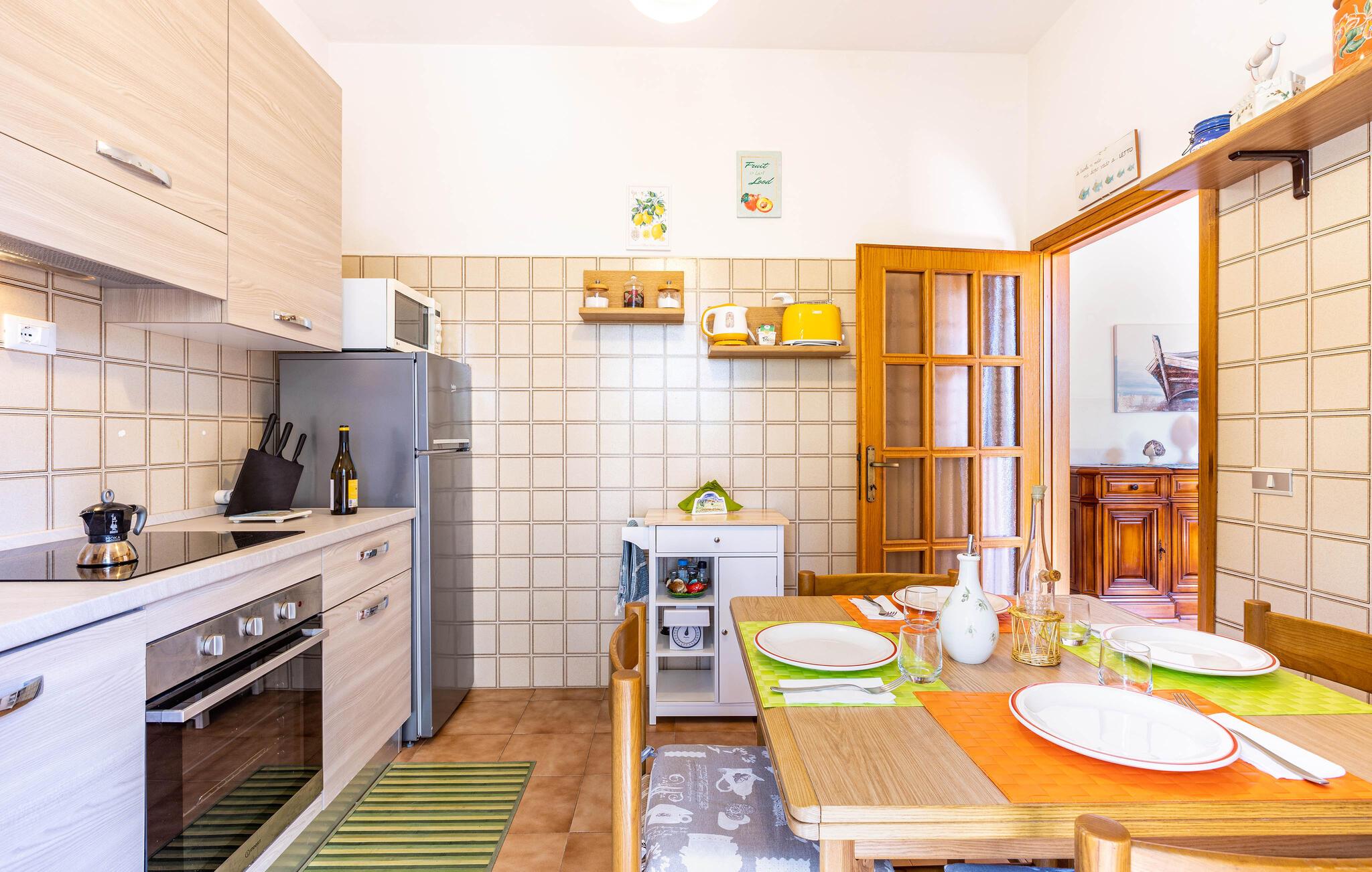 Denne feriebolig byder på en vellykket kombination af komfort, god beliggenhed og en behagelig ferieatmosfære. Tilbring afslappende dage nær kysten og sæt hverdagen på pause. Gå ind i den velholdte mezzaninlejlighed i et tofamiliehus. De velindrettede værelser har varme, funktionelle møbler. Brug den hyggelige stue til at læse, slappe af eller se tv sammen. Tilbered lækre retter i køkken-alrum og nyd måltider i en behagelig atmosfære.