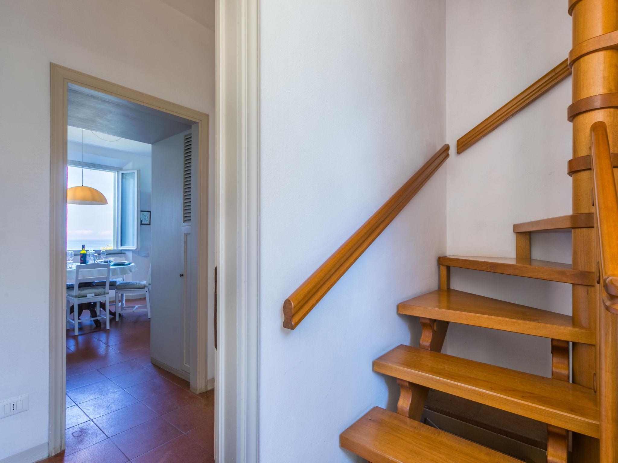 "Mare", 4-room apartment 75 m2 on 2 levels on 1st floor. Object suitable for 3 adults + 3 children. Bright, beautiful and stylish furnishings: living/dining room with dining table and TV. Open kitchen (mini-oven, oven, Gas stove, 4 gas rings, toaster, kettle, electric coffee machine). Shower/bidet/WC. Gas heating. Upper floor: (spiral staircase), 1 double bedroom with panoramic window. 1 room with 3 beds. 1 room with 1 bed. Gallery with 1 bed. Shower/bidet/WC. Gas heating. Large garden 120 m2, porch. Terrace furniture, electric barbecue, deck chairs. Marvellous panoramic view of the sea. Facilities: washing machine. Internet (WiFi, free). Parking (2 cars). Please note: private mooring (extra). Fire extinguisher, no lift. Private covered and furnished patio right next to the beach. IT049017C2OYZ4SW8S