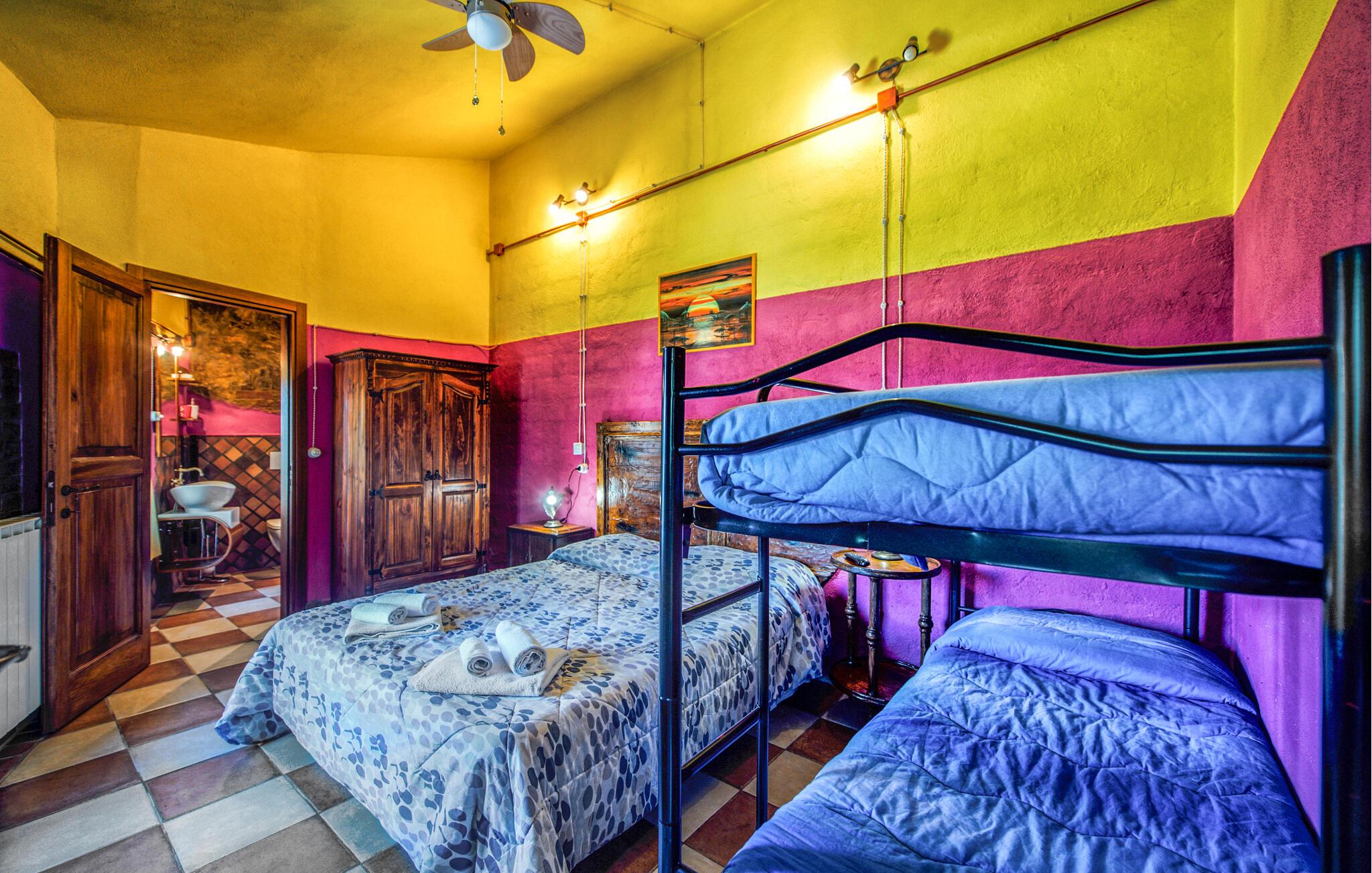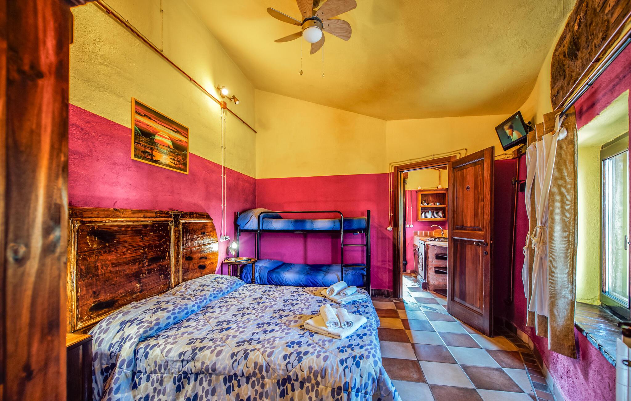 Velkommen til denne dejlige lejlighed, der ligger i rolige omgivelser, og hvor I får en herlig base for årets ferie. Indretningen fremtræder pænt og rustikt med synligt bindingsværk og stenvægge, der sammen med de stærke farver og praktiske møbler gør det nemt at slappe af med det samme, I ankommer. Lejligheden er udstyret med alt, I behøver for at kunne slappe af før og efter dagens udflugter, og afhængig af ledighed kan I booke andre lejligheder på grunden, som I deler spabad og sauna med.