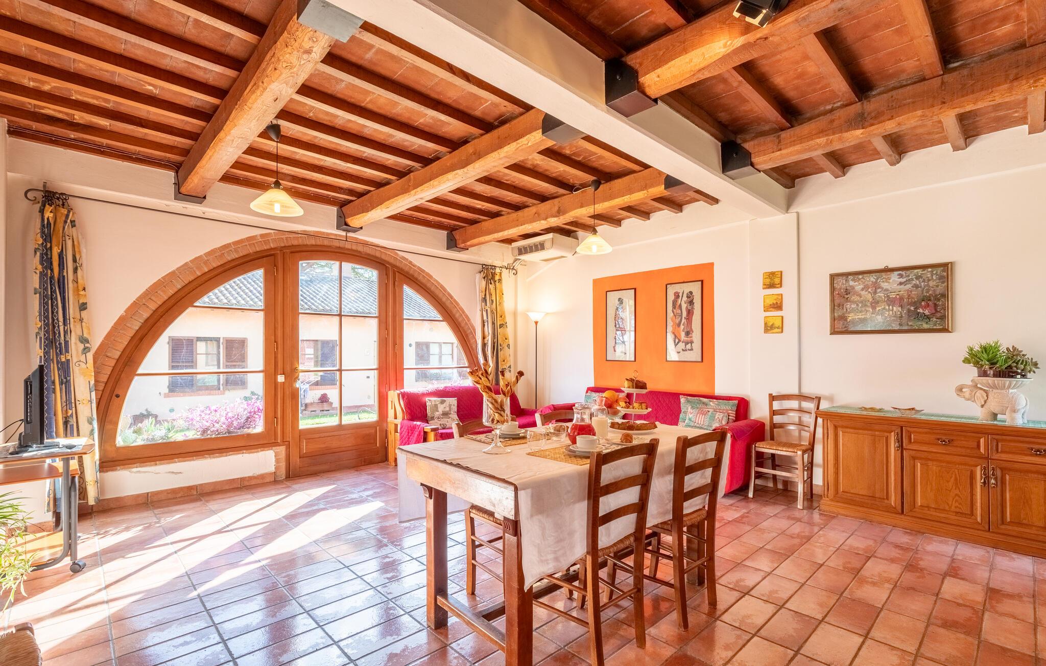 Kun få kilometer fra Castiglione del Lago tilbyder denne ferielejlighed et dejligt tilflugtssted for alle, der ønsker at udforske Umbriens og Toscanas skønhed. Den rummelige stue og køkkenet inviterer til afslapning og madlavning. Her finder I alt, hvad I behøver for et komfortabelt ophold.