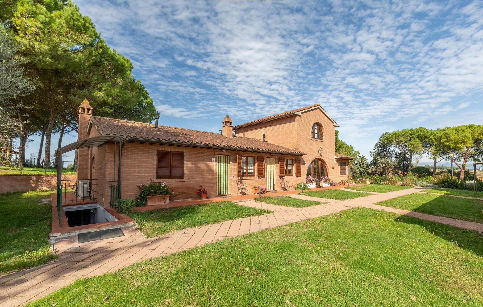 Brug verandaen, som er til jeres eksklusive brug, og nyd jeres måltider udendørs, mens I indånder den friske landluft. Lad jeres børn lege på legepladsen, eller tilbered en lækker middag i grillområdet. Dyp jer i den fælles pool for at køle af på varme sommerdage og nyd ejendommens fredelige atmosfære.