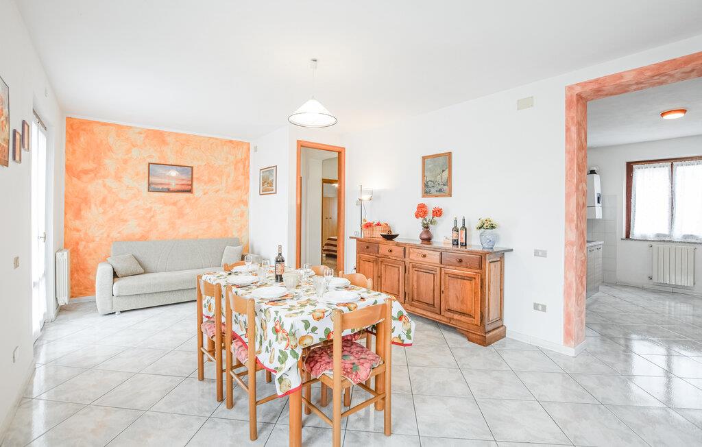 Velkommen til den lyse opholdsstue i jeres feriehus, hvor venlige farver og de velholdte rammer lægger op til afslapning. Stil det store spisebord til en italiensk fest eller læn jer tilbage i sofaen med en god bog. Det veludstyrede køkken tilbyder jer alt, hvad I skal bruge for at tilberede lækker pasta eller frisk antipasti.
