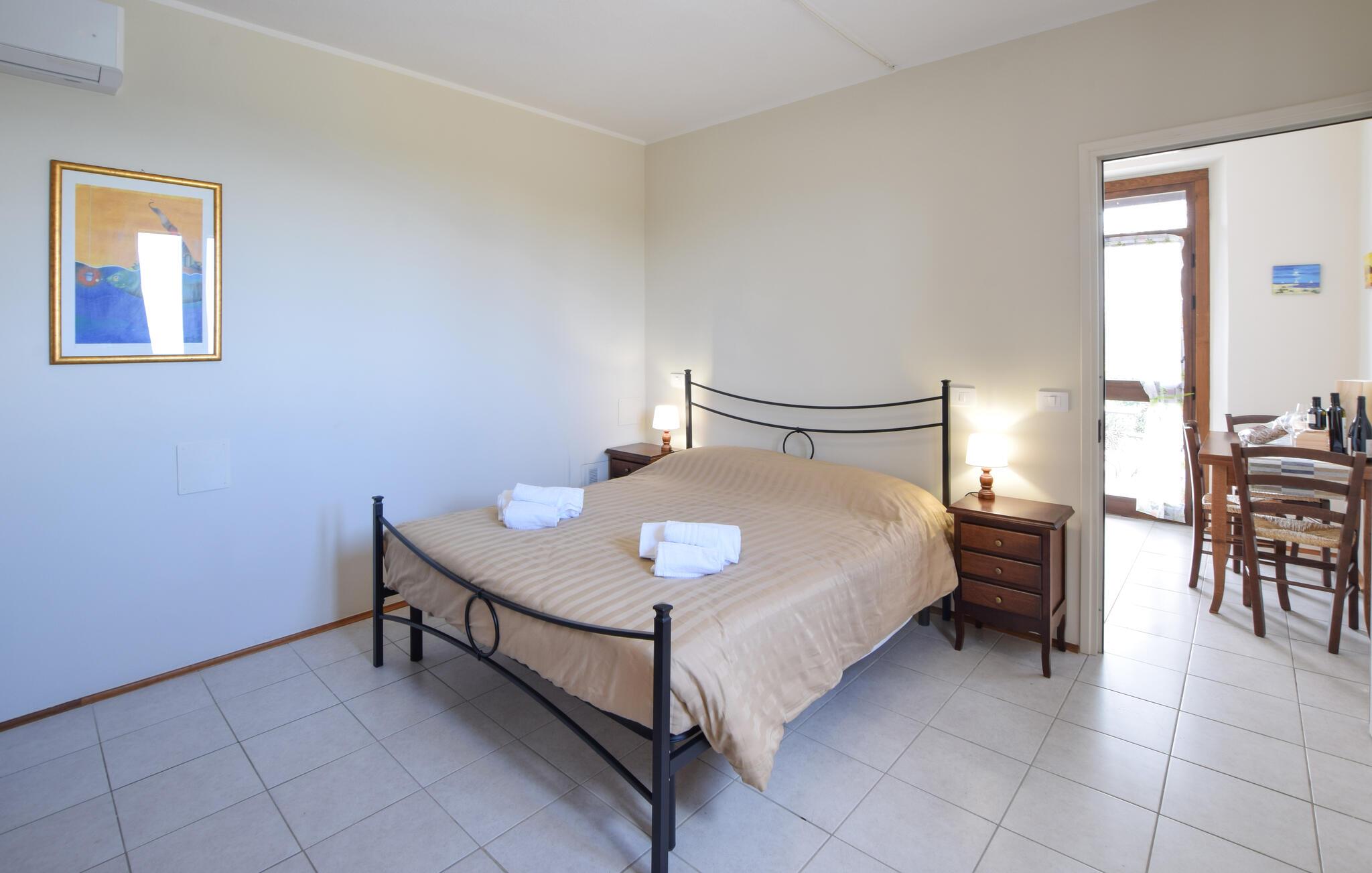 Nyd måltiderne på panoramaterrassen i hovedlejligheden på første sal eller i det udendørs område i stuelejlighederne. Slap af i den store have, som byder på en stor pavillon, en grillplads og en smuk pool. Børnene vil elske legeområdet med gynger, mens I slapper af på liggestolene. Når I ankommer, får I en rundtur, hvor I kan prøve gårdens vine og produkter.