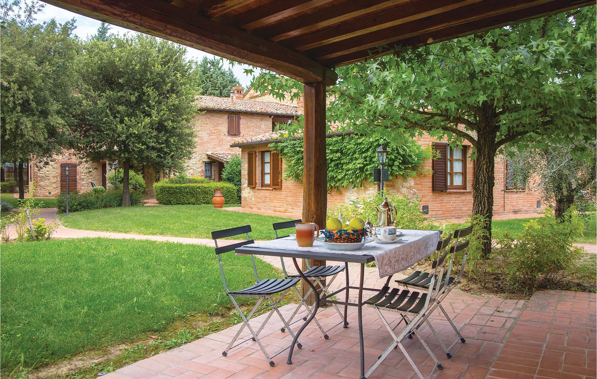 Hver feriebolig har en privat skyggefuld terrasse (pergola) foran køkkenet; møblerne er funktionelle og smagfulde. Det indhegnede poolområde med solterrasse er tilgængeligt for alle gæster på den rummelige ejendom. Til sportsaktiviteter en tennisbane, bordtennis og andre boldspil samt en legeplads.