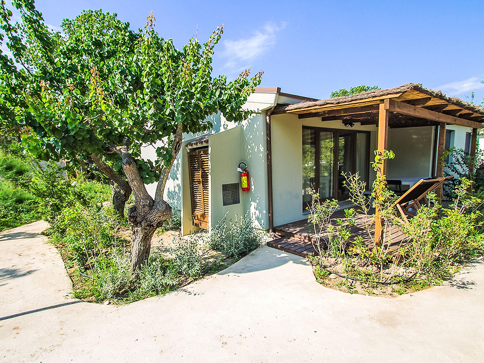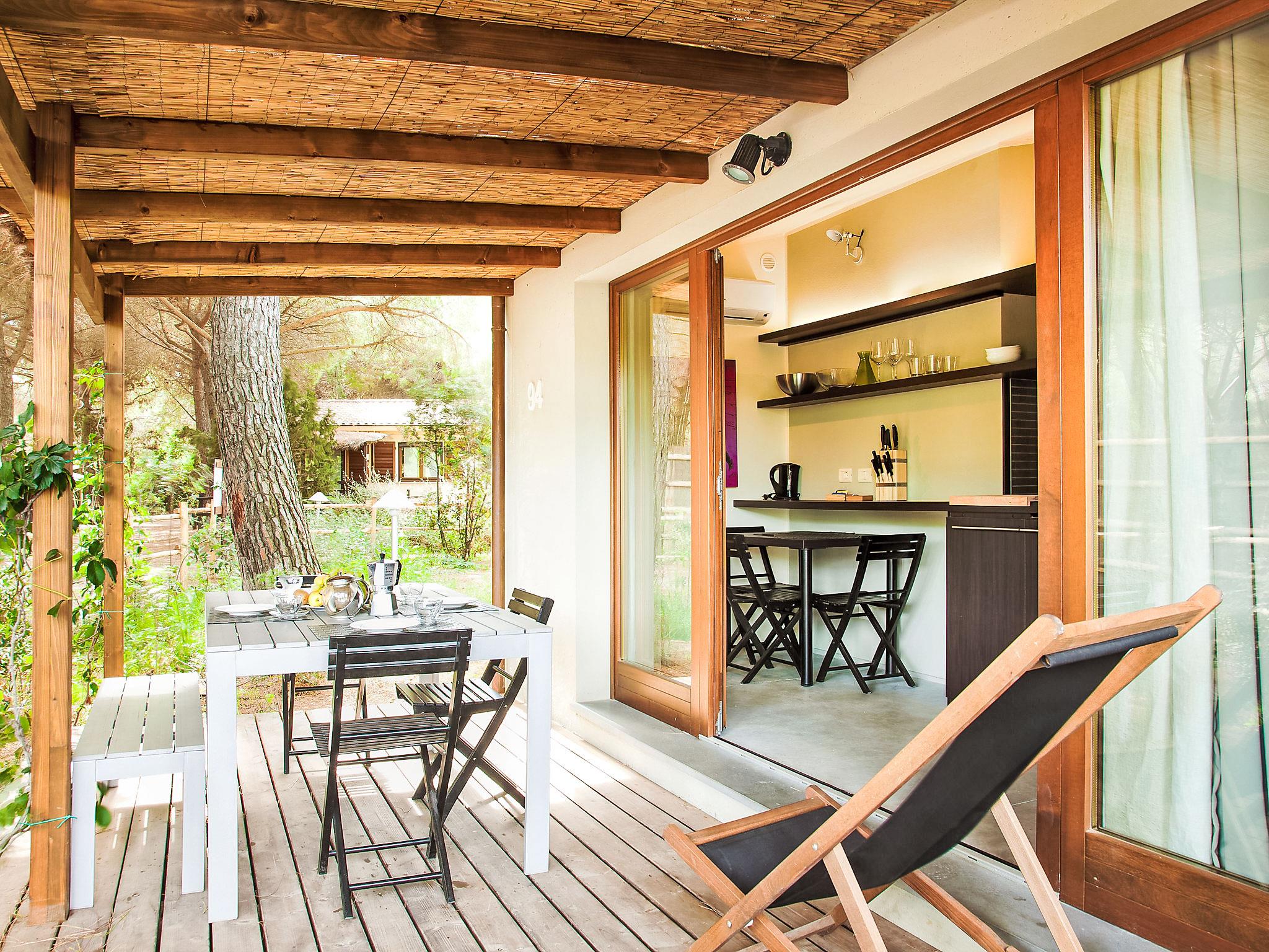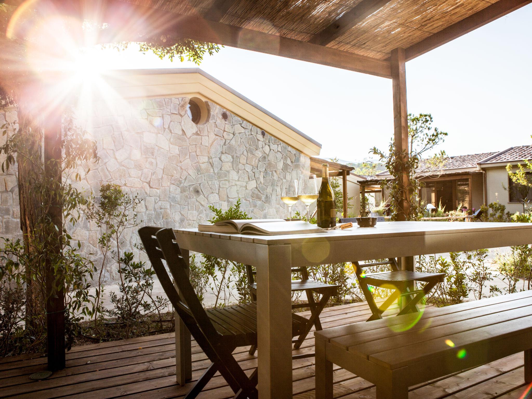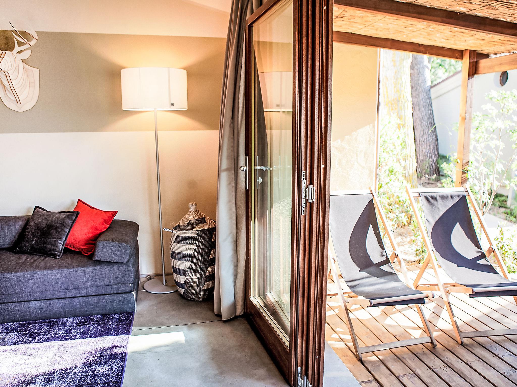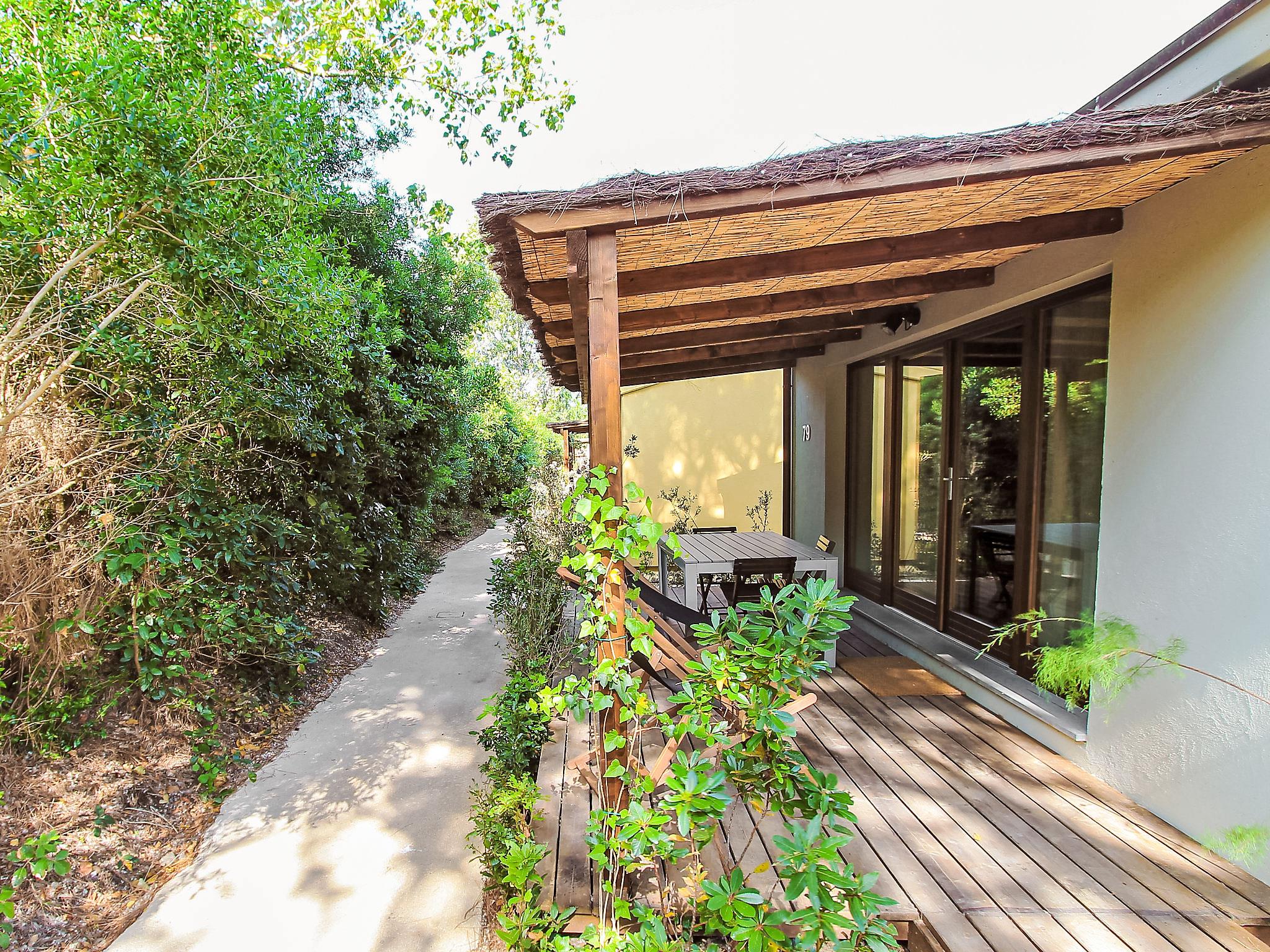 "Deluxe", 3-room house 40 m2, on the ground floor. Modern and stylish furnishings: living/dining room with 1 double sofabed, kitchen corner and digital TV. Exit to the terrace. 1 double bedroom with digital TV. 1 small room with 2 beds. Kitchenette (3 induction hot plates). Shower/bidet/WC. Air-conditioning. Patio. Sitting area. Facilities: Internet (WiFi, free). Accommodation for the disabled must be requested in advance.