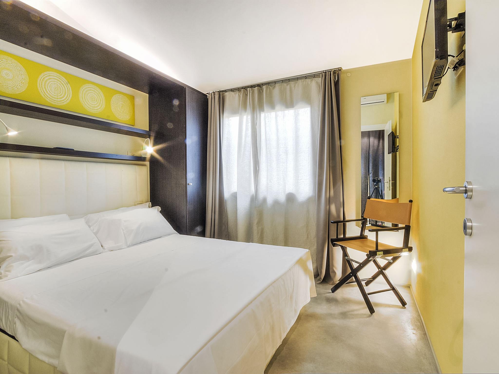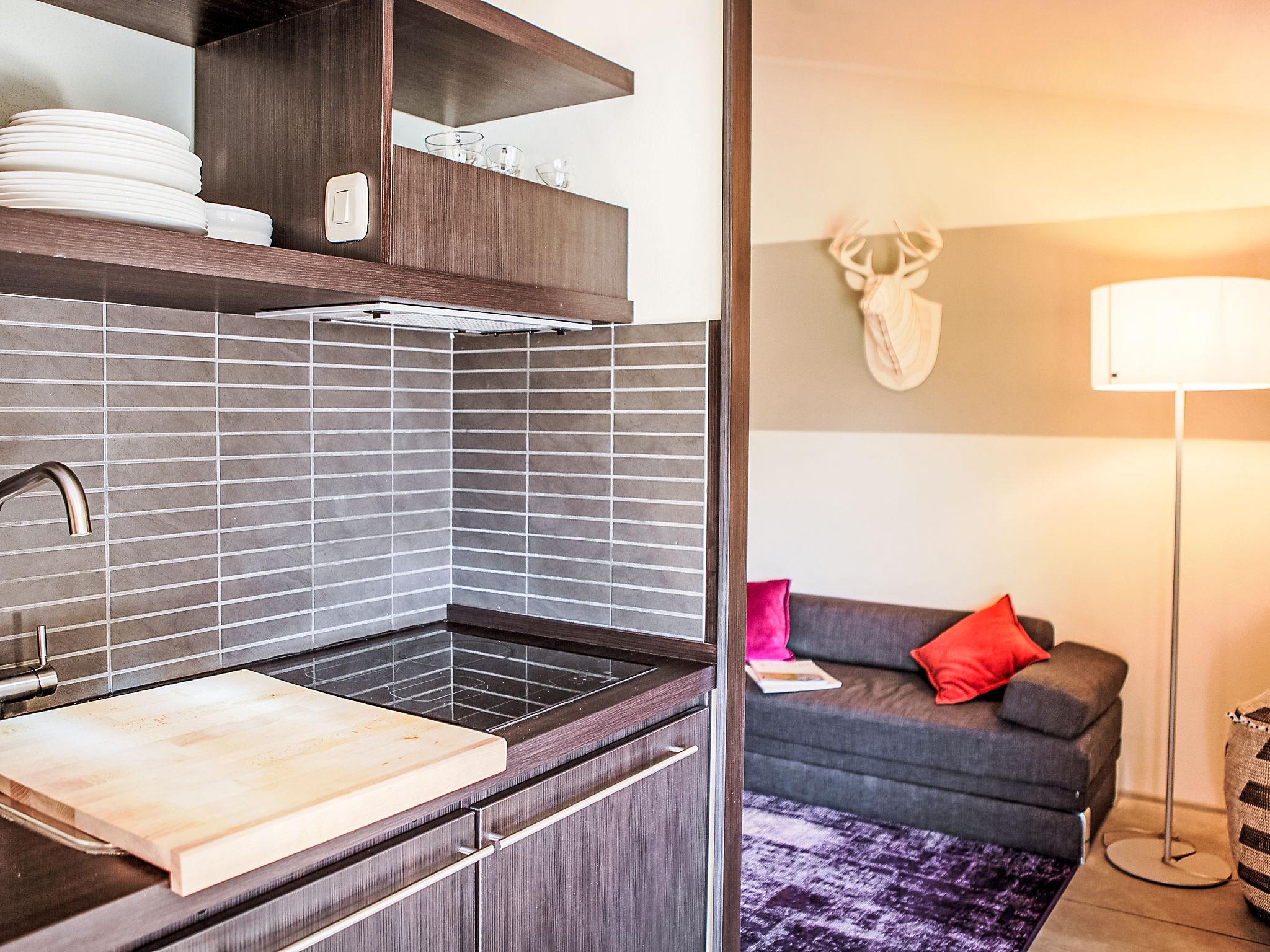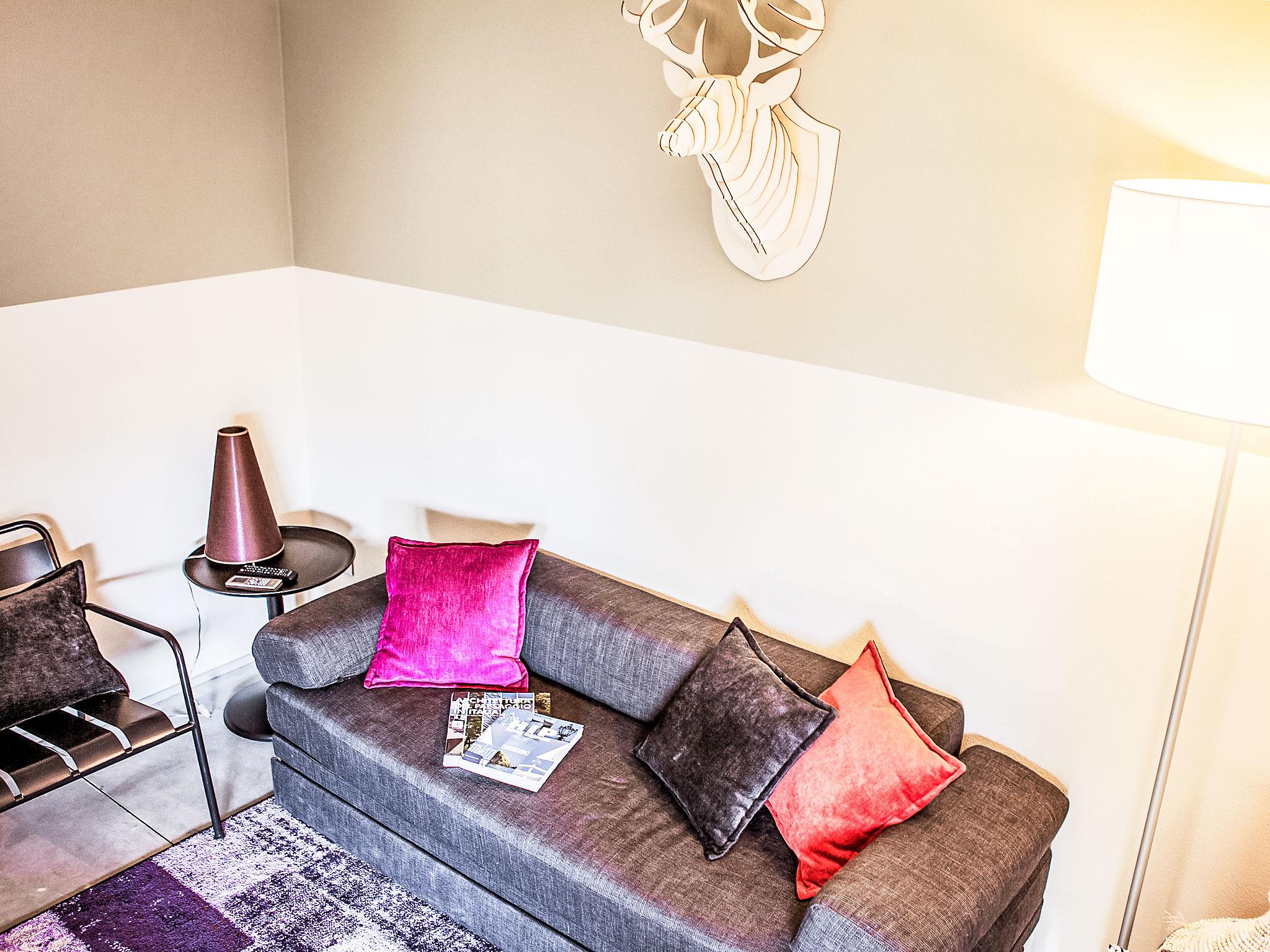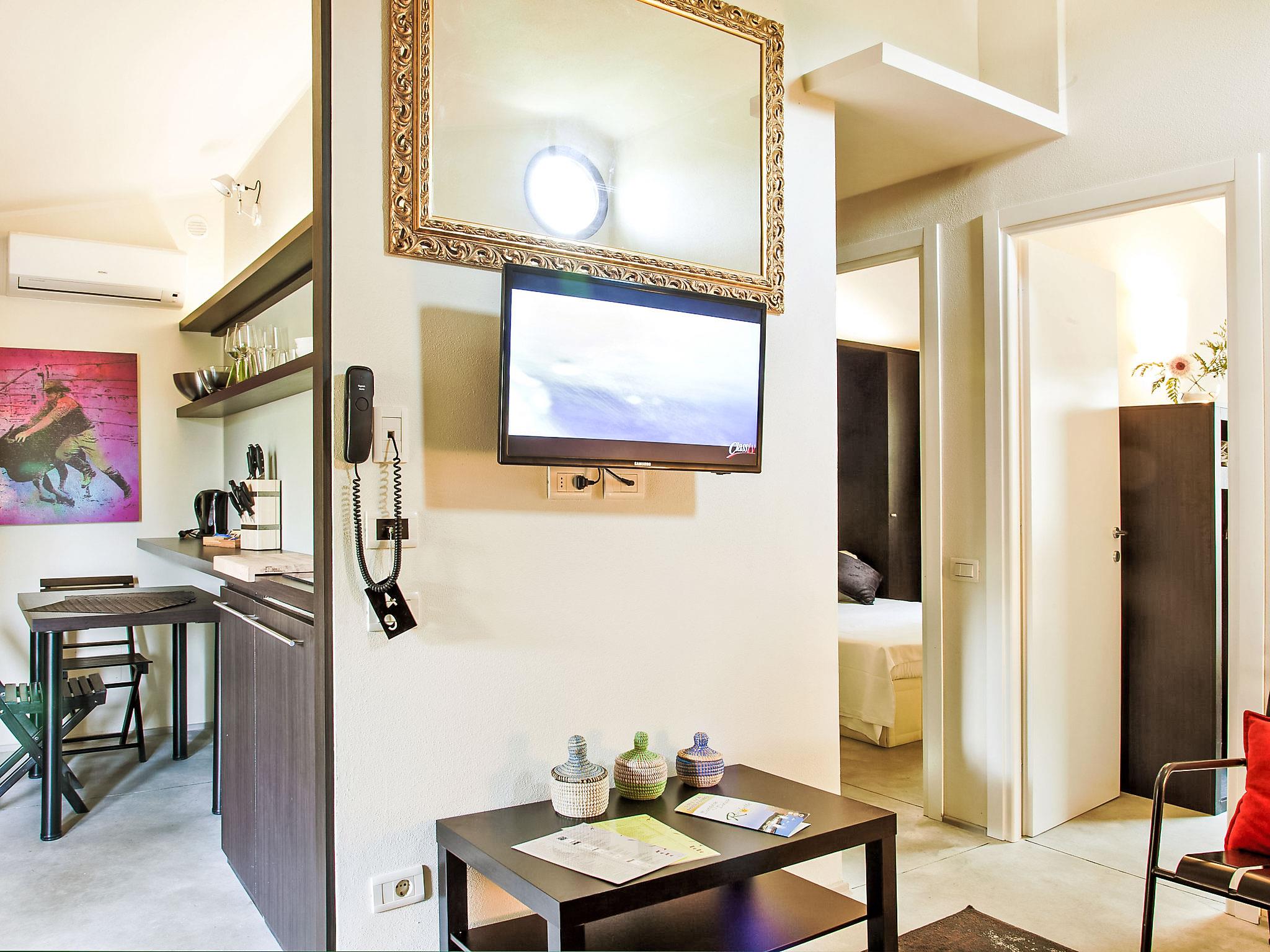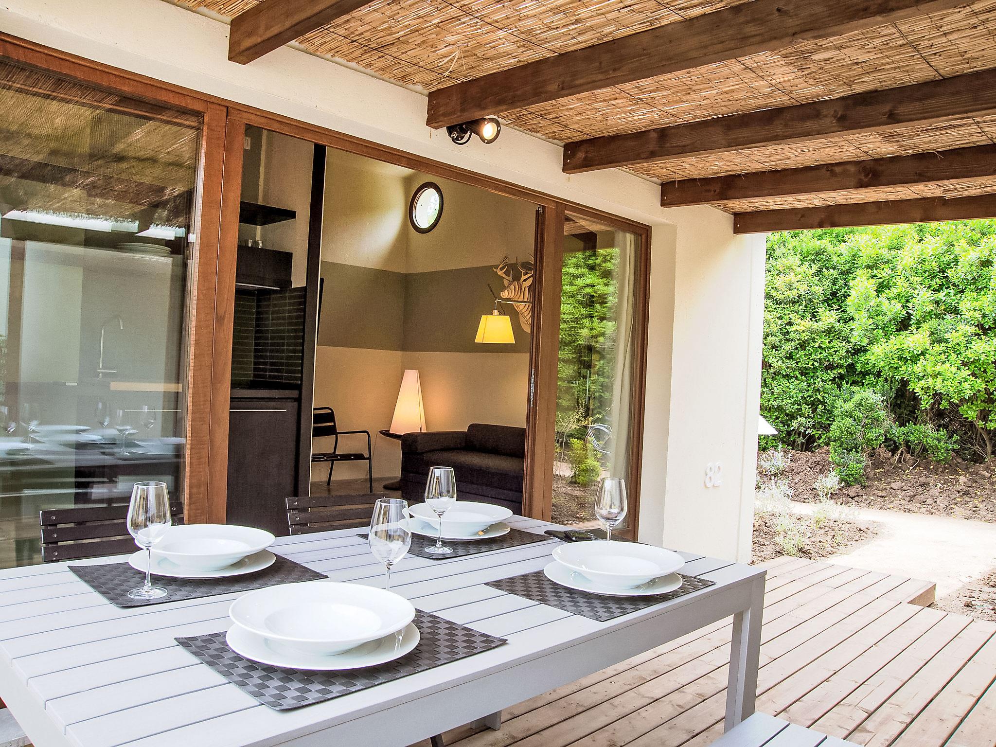 "Deluxe", 3-room house 40 m2, on the ground floor. Modern and stylish furnishings: living/dining room with 1 double sofabed, kitchen corner and digital TV. Exit to the terrace. 1 double bedroom with digital TV. 1 small room with 2 beds. Kitchenette (3 induction hot plates). Shower/bidet/WC. Air-conditioning. Patio. Sitting area. Facilities: Internet (WiFi, free). Accommodation for the disabled must be requested in advance.