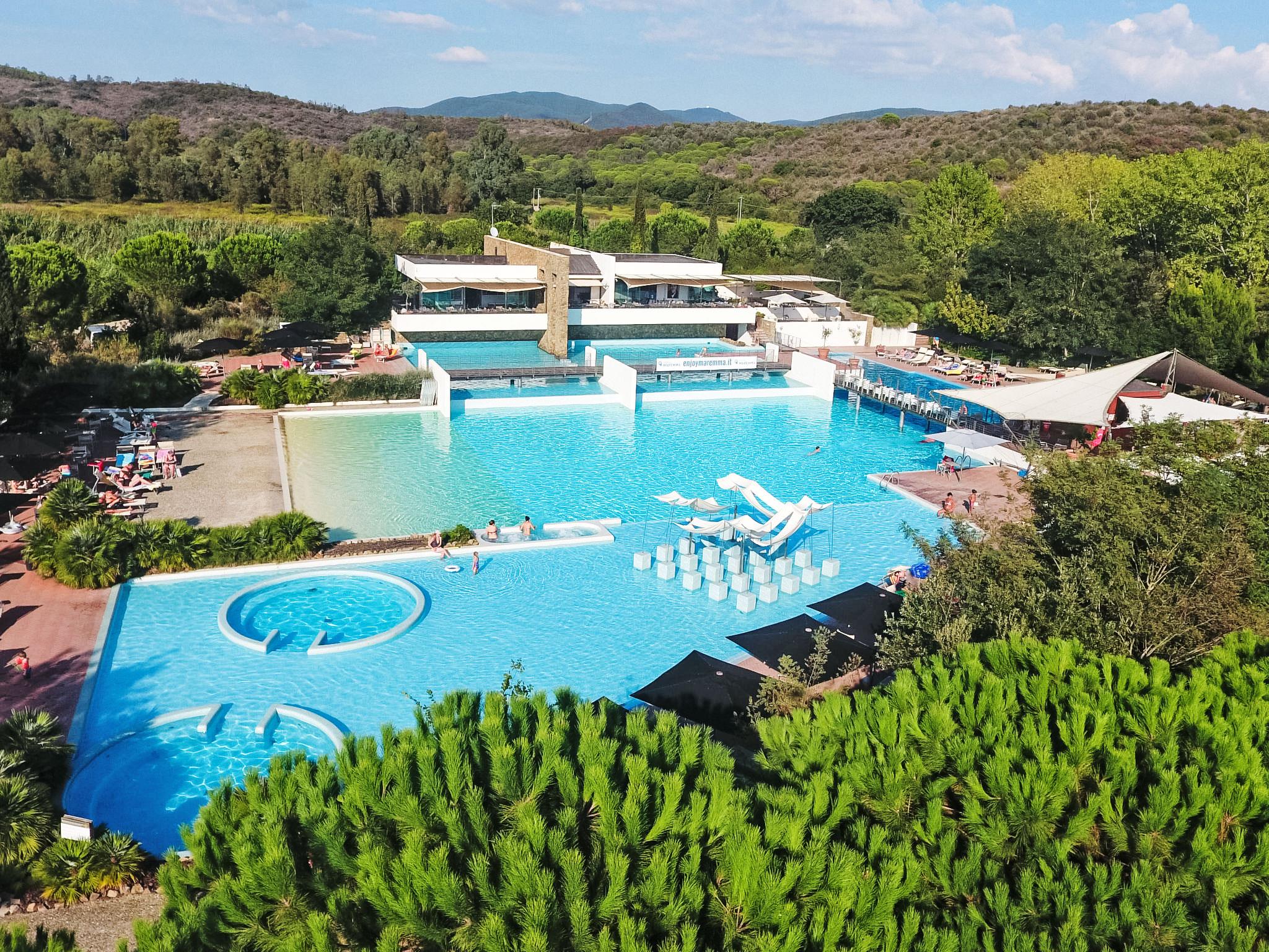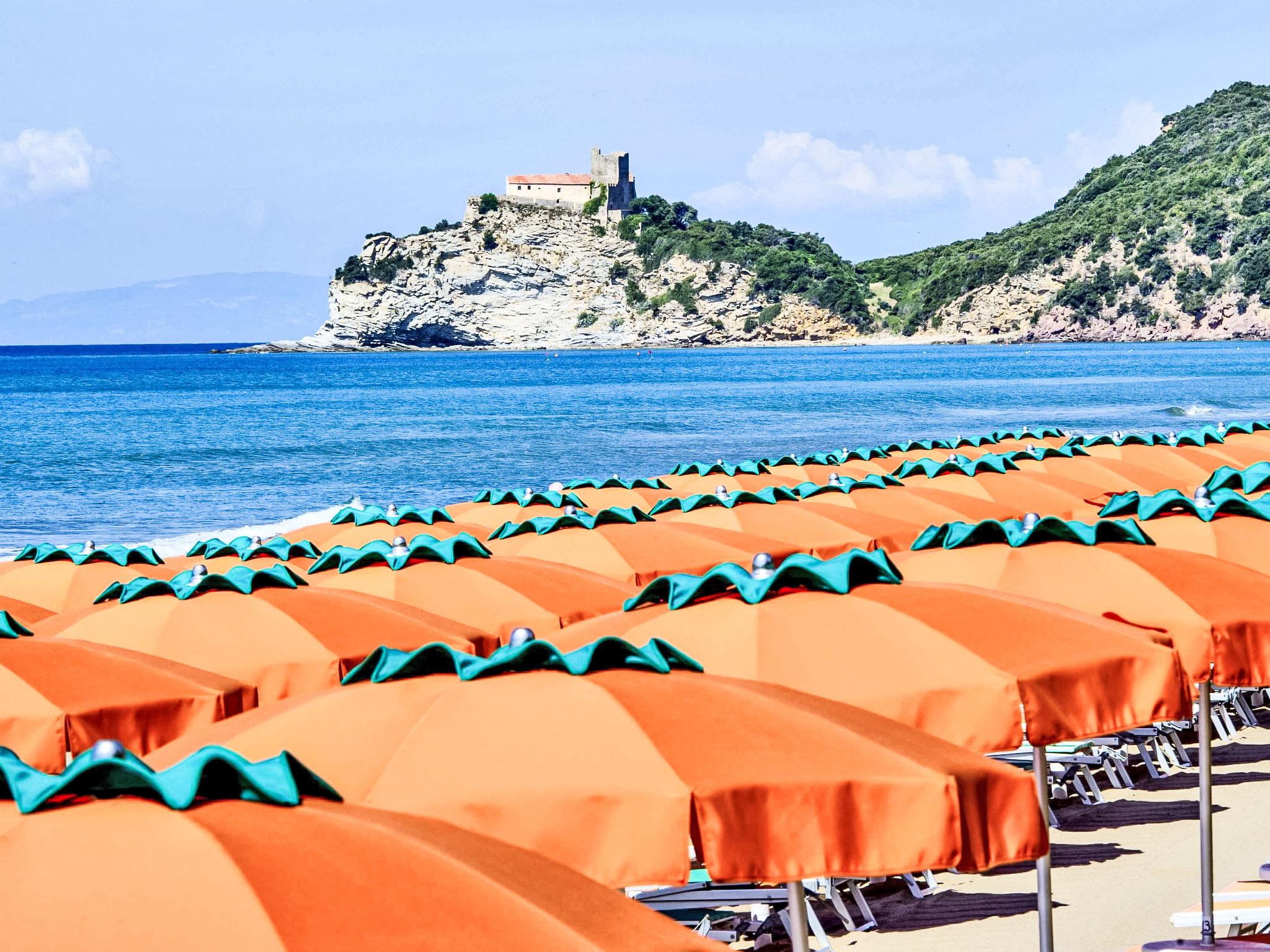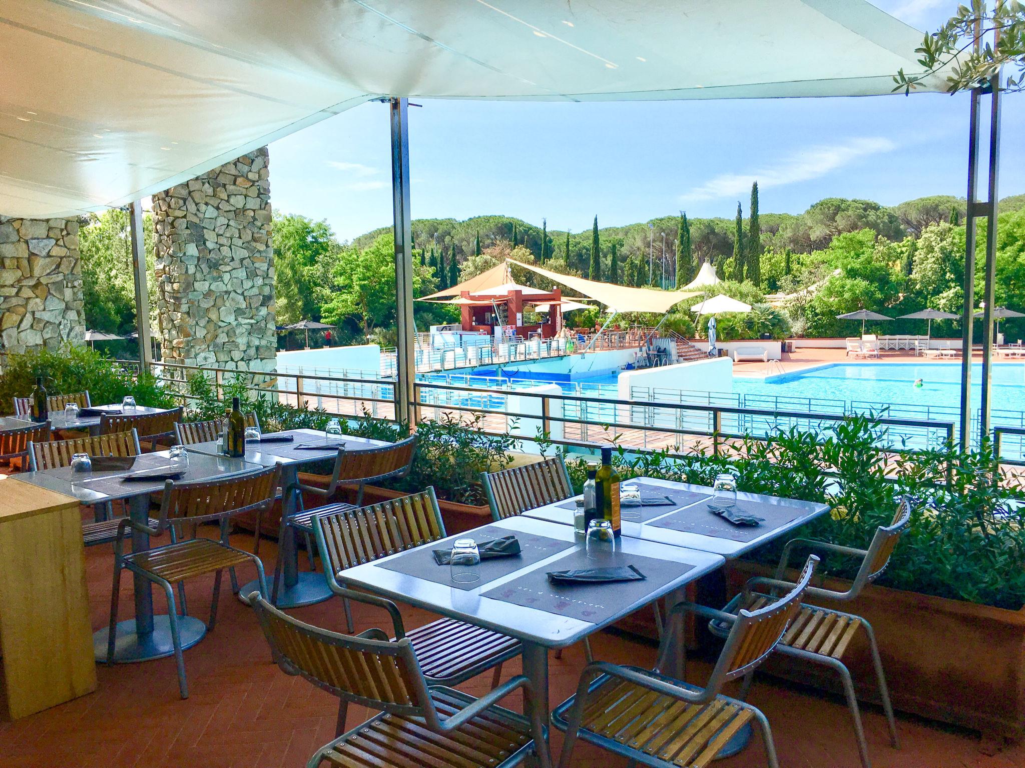 This holiday village is a perfect example of a well-guarded sea oasis spreads over an area of natural beauty. The guests can enjoy the private setting of the magnificent complex near the sea with a discreet and professional service. As a guest you have full access to the village private swimming pool (2000sqm) with three hydro-massage, 2 area for children, 1 training tank, beach effect area, furnished with deckchairs (extra) and beach umbrellas. Padel tennis court, table tennis tables, outdoor gym, guided MTB tours. Mini-Club and Entertainment activities from 24/05 to 06/09. Club card included in the price. Modern, comfortable resort. In the hamlet Rocchette 7 km from the centre of Castiglione della Pescaia, 12 km from the centre of Punta Ala, in a sunny position, 600 m from the sea, road to cross. For shared use: park 70'000 m2 (fenced), natural garden, 3 swimming pools secured (seasonal availability: 17.Apr. - 19.Oct.). WC in the pool area, children's pool, outdoor shower, table tennis, patio. In the complex: reception, restaurant, bar, WiFi, steam room, hot tub, shopping facilities (extra) bicycle rental. Full board half board possible on request (extra). Parking on the premises. Supermarket 6 km, sandy beach "Rocchette (extra on request)" 600 m. Sailing school 10 km, riding stable 7 km. Please note: entertainment in the season. The complex has night security. Residence with electric gates. Additional accommodations can be booked. Property ref. IT5450.130 is situated on the same property.
