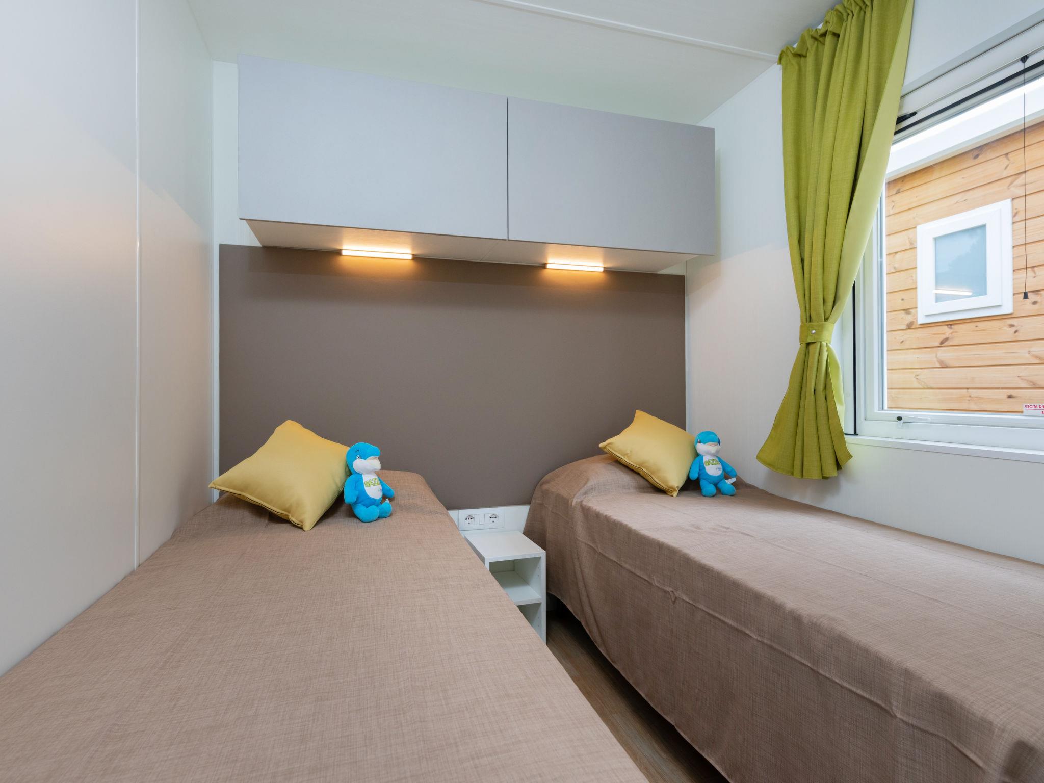 "Fashion", 3-room mobile home 38 m2, on the ground floor. Comfortable and modern furnishings: living/dining room. Exit to the garden, to the veranda. 1 double bedroom with shower/bidet/WC. 1 room with 2 beds. Kitchenette (4 gas rings, freezer). Shower/WC. Air-conditioning. Terrace, garden. Terrace furniture. Facilities: safe, mosquito net, hair dryer. Internet (WiFi, free). Parking (1 car). Please note: private entrance. IT053006B1ZWQW8ZUA
