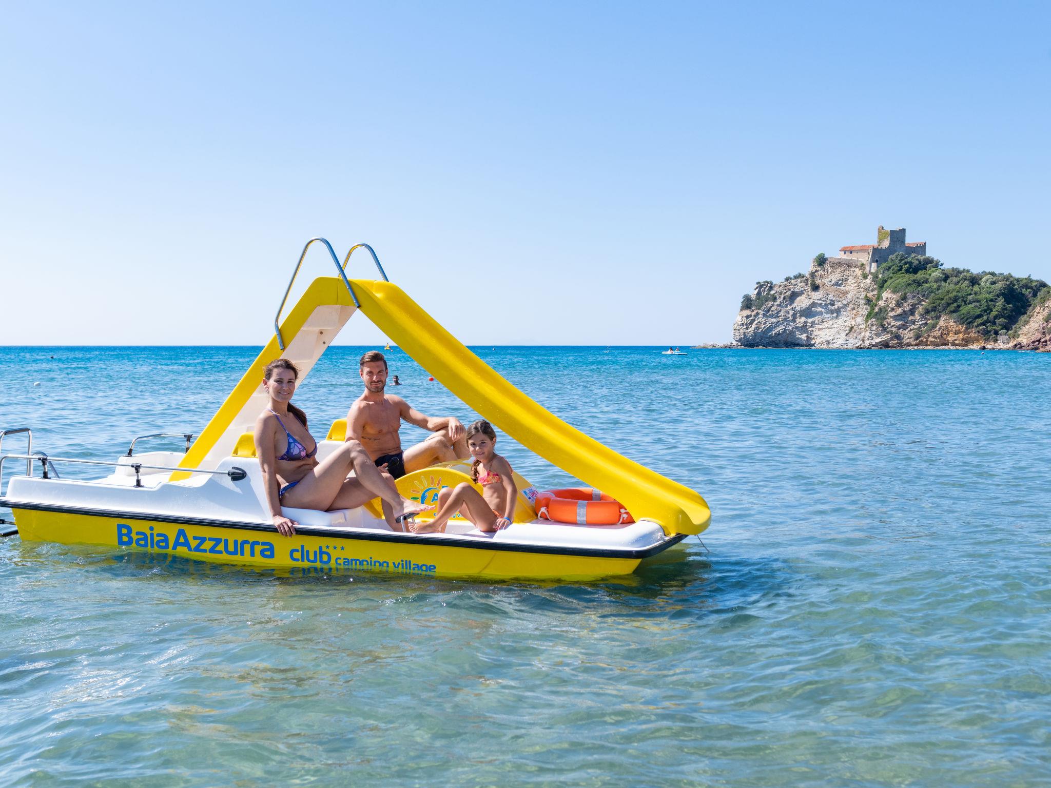 Nestled in the colours and scents of the Mediterranean sea, this resort offers the comforts of lovely bungalow, with own private outdoor spaces and amenities ideally for families and their children. It is in a great location to visit Maremma and the cities of arts that surrounds it (Siena, Pisa, Florence, Rome). 2 swimming pools (swimming cap compulsory) with deck chairs and sun shade, one for children and one with hot tub next to the main facilities. Large resort. In the hamlet Rocchette 7 km from the centre of Castiglione della Pescaia, in a quiet position, 150 m from the sea, road to cross. For shared use: 2 swimming pools (depth 150 cm, seasonal availability: 28.Mar. - 01.Nov.). WC in the pool area, children's pool, outdoor shower, hot tub, tennis, beach volleyball, children's playground. In the complex: reception, restaurant, bar, WiFi, shopping facilities, washing machine, tumble dryer (for shared use, extra), bicycle rental. Available: canoe (extra). Breakfast full board half board possible on request (extra). Parking on the premises. E-charging station. Supermarket 8 km, bus stop 50 m, sandy beach "Le Rocchette" 150 m. Marina 10 km, golf course (18 hole) 20 km, riding stable 10 km. Nearby attractions: Punta Ala 12 km, Follonica 20 km, Massa Marittima 30 km. Please note: entertainment in the season. Suitable for families. The photograph shows a typical example. The holiday properties may differ in situation, size and location. Access to the sea with a free beach (free) or equipped beach for guests (extra on request) is located in front of the Residence. Restaurant, pizzeria, bar, supermarket, butcher, ATM, soccer, outdoor fitness area, padel field, large playground and animation (16.05.-03.10. ca).