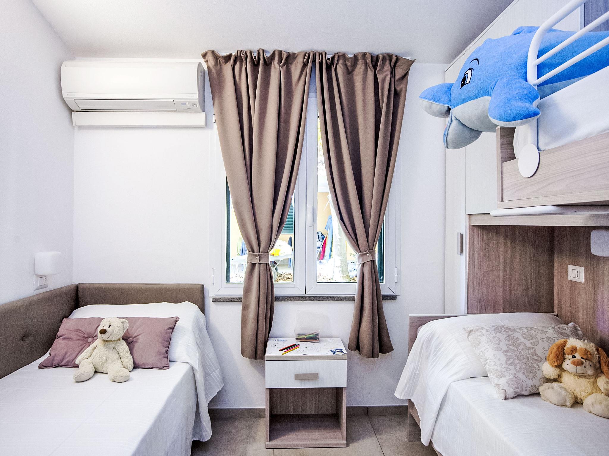 "De Luxe Plus", 3-room house 40 m2, on the ground floor. Object suitable for 4 adults + 2 children. Comfortable furnishings: living/dining room with satellite TV. Exit to the garden, to the veranda. 1 double bedroom. 1 room with 1 bed and 1 x 2 bunk beds. Kitchenette (dishwasher, 4 gas rings, freezer). Shower/bidet/WC, sep. WC. Air-conditioning. Patio 12 m2, large garden. Terrace furniture, sitting area. Facilities: safe, mosquito net, hair dryer. Internet (WiFi, free). Parking (1 car). Please note: private entrance. IT053006B1ZWQW8ZUA
