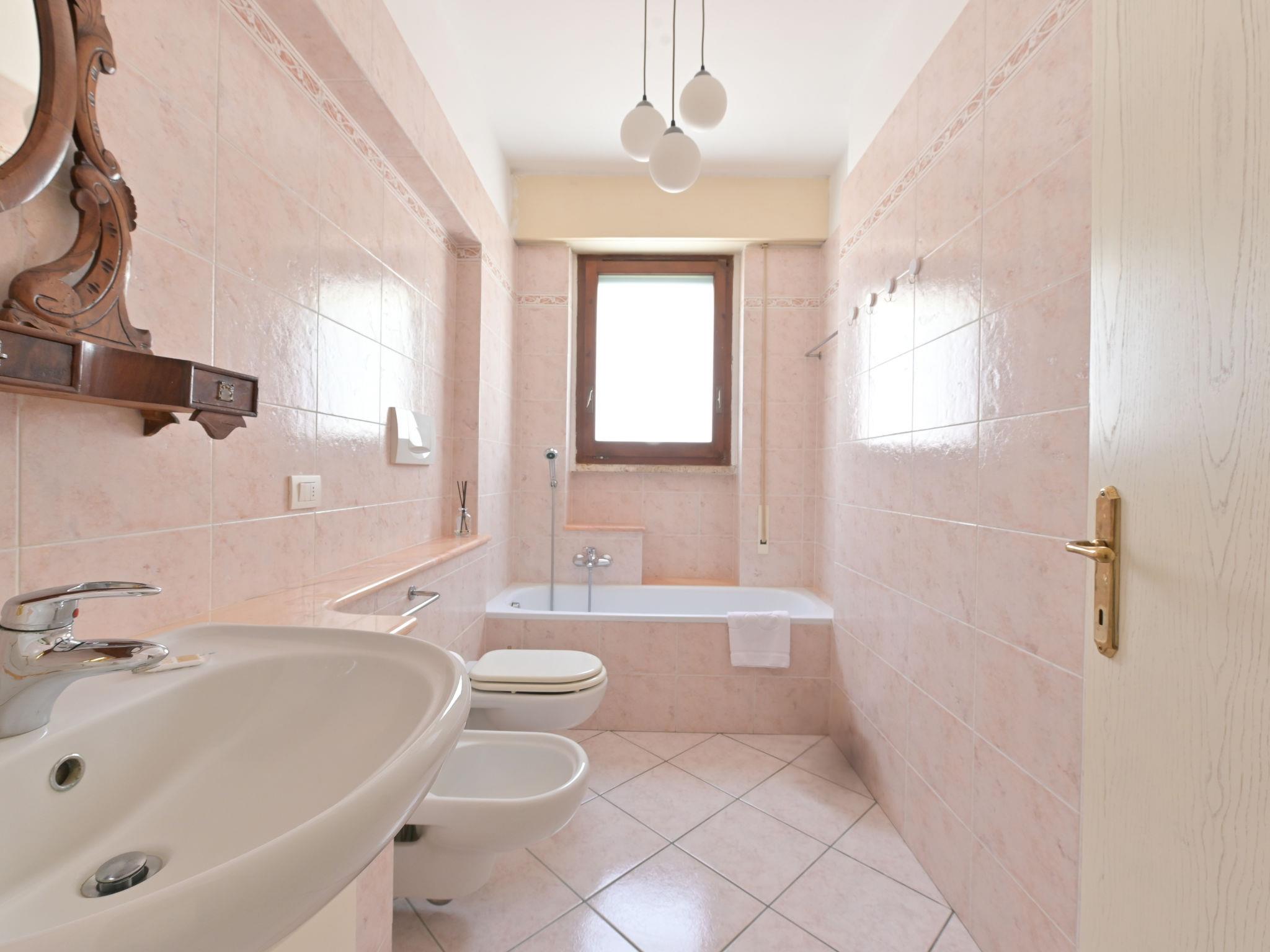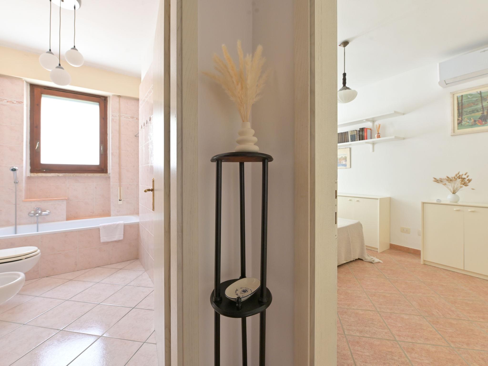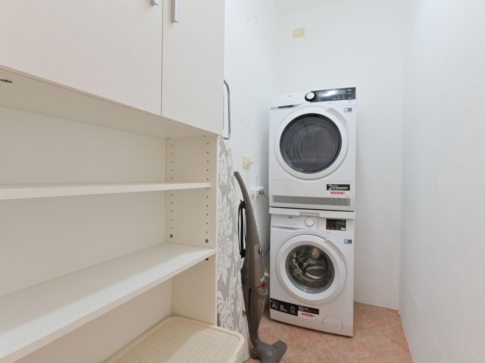 5-room house 140 m2, on the ground floor. Spacious, tasteful and cosy furnishings: living room with 1 double sofabed and open-hearth fireplace (only for decoration), TV. Exit to the garden, to the terrace. 1 double bedroom with shower/WC and air conditioning. 1 double bedroom with air conditioning. Living/dining room with 1 double sofabed, TV and air conditioning. Exit to the garden. 1 double bedroom with TV. Large, open kitchen (oven, dishwasher, 5 gas rings, toaster, kettle, microwave, electric coffee machine) with dining table and TV. Bath/bidet/WC, shower/bidet/WC. Gas heating, forced-air heating. Heating available only from 01.11. to 15.04. Terrace roofed. Terrace furniture, deck chairs. Partial view of the sea. Facilities: washing machine, dryer, mosquito net, baby cot for up to 2 year olds (extra), hair dryer. Internet (WiFi, free). Please note: non-smoking house. Private entrance, smoke alarm, fire extinguisher. No internal connecting door between the separated properties. IT053006C2O5CBXIK9