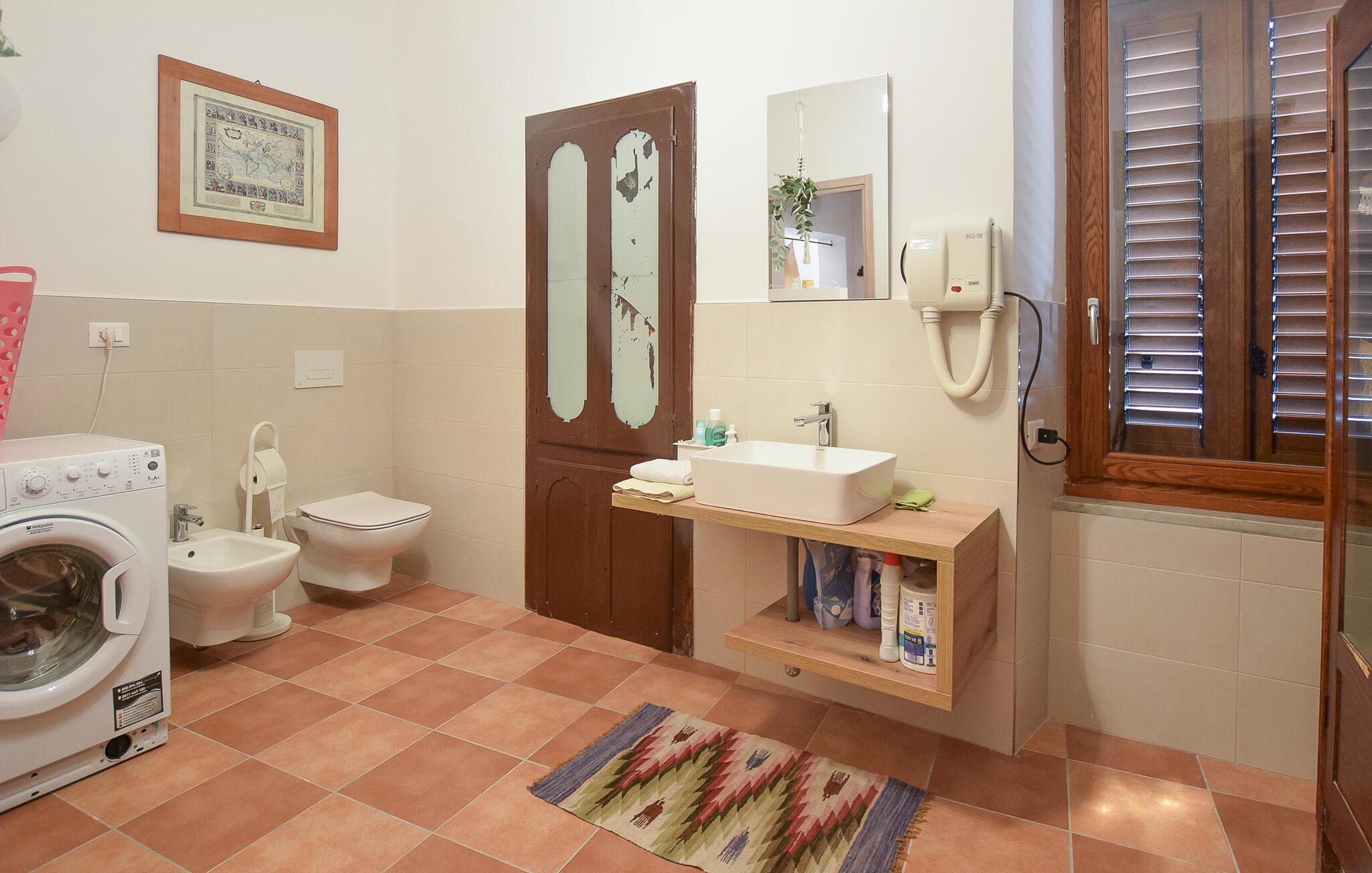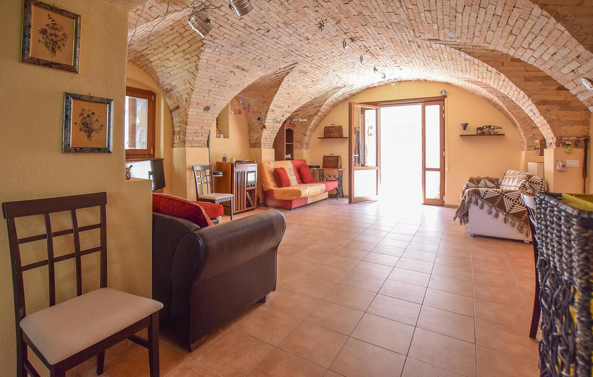 Velkommen til Abruzzo! Her ligger denne ferielejlighed, som er smukt indlejret i et charmerende, bakket landskab i Castilenti. Den traditionelle atmosfære udstråler en rustik stemning og tilbyder en afslappende ferie væk fra hverdagen. Nyd freden og trygheden i ferielejligheden. Om morgenen samles om køkkenet spisebord til morgenmad. Og tilbered selv lækre retter i det praktisk udstyrede køkken med regionale råvarer, som I kan købe på det nærliggende marked. Slap af om aftenen i opholdsstuen med bræt- eller kortspil eller gør jer godt tilpas med en god bog på den indbydende terrasse. Senere kan I afslutte dagen med et godt glas italiensk vin.