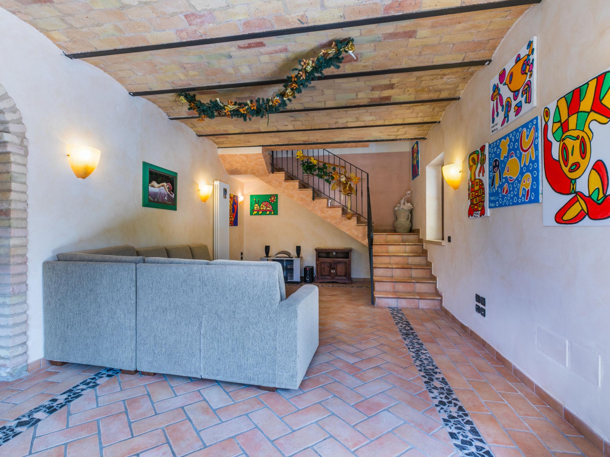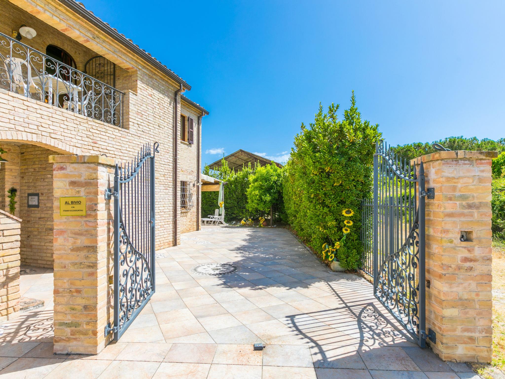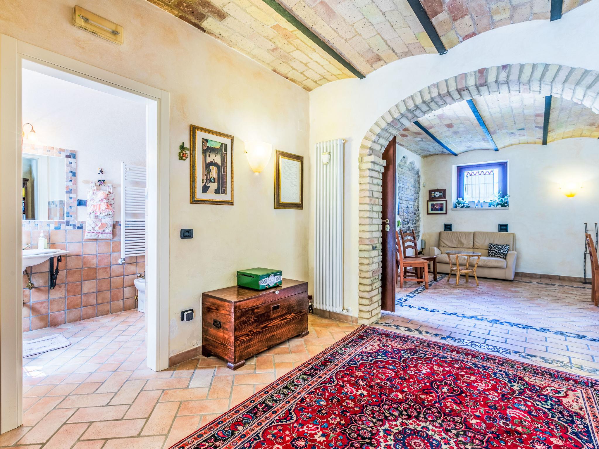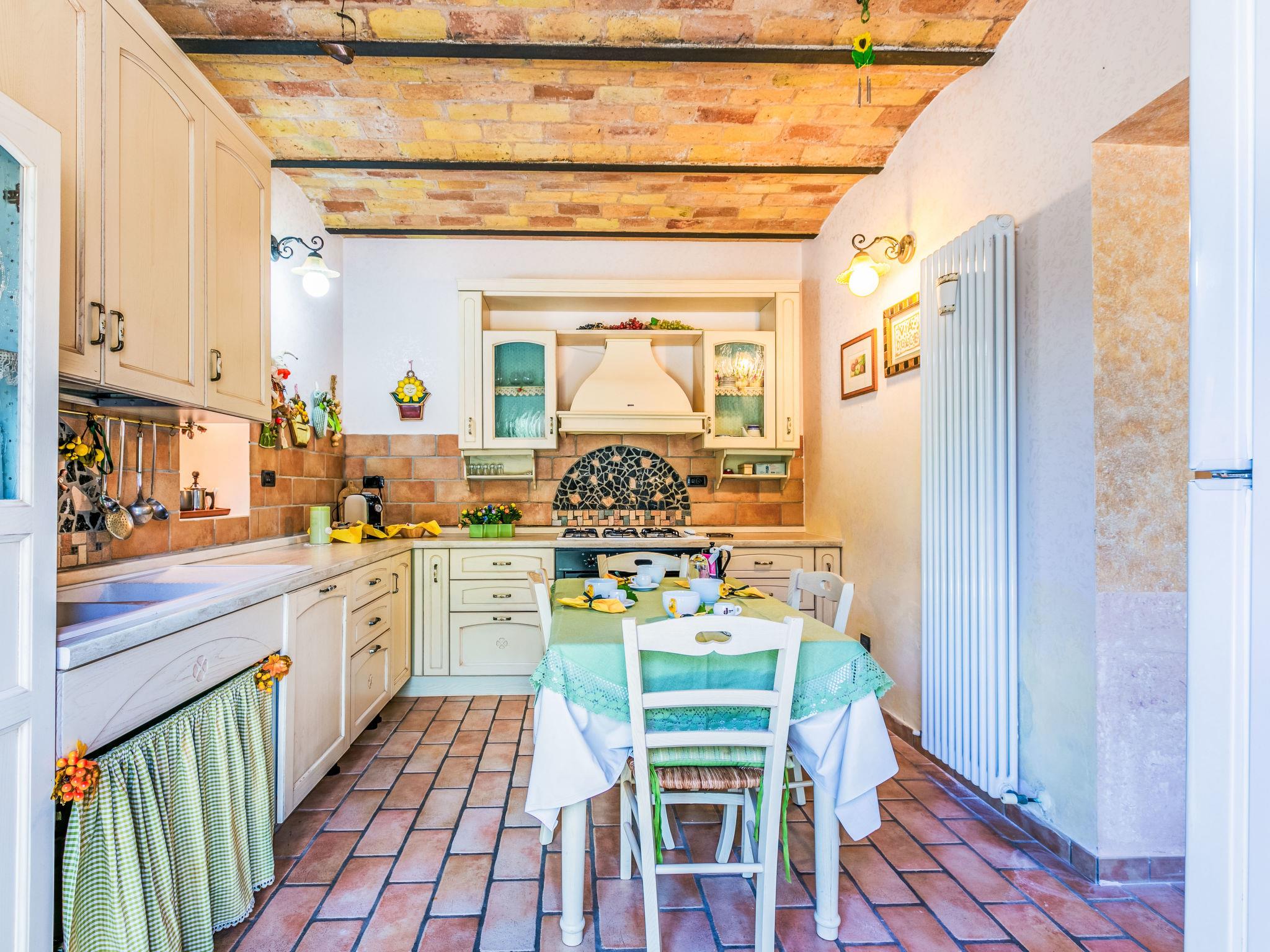 Large single-family house "Al Bivio", 2 storeys. 3 km from the centre of Castorano, outside the resort, 6 km from the centre of Borgo Miriam, in a secluded, sunny, elevated position. Private: garden 300 m2 (fenced) with wildlife garden and trees, natural garden, orchard, parking. Shop 6 km, shopping centre 16 km, bus stop "Bivio Cantina Sociale" 100 m, railway station "San Benedetto del Tronto" 24 km, sandy beach "Porto d'Ascoli" 16 km. Nearby attractions: San Benedetto del Tronto 23 km, Ascoli Piceno 27 km. Please note: car recommended.