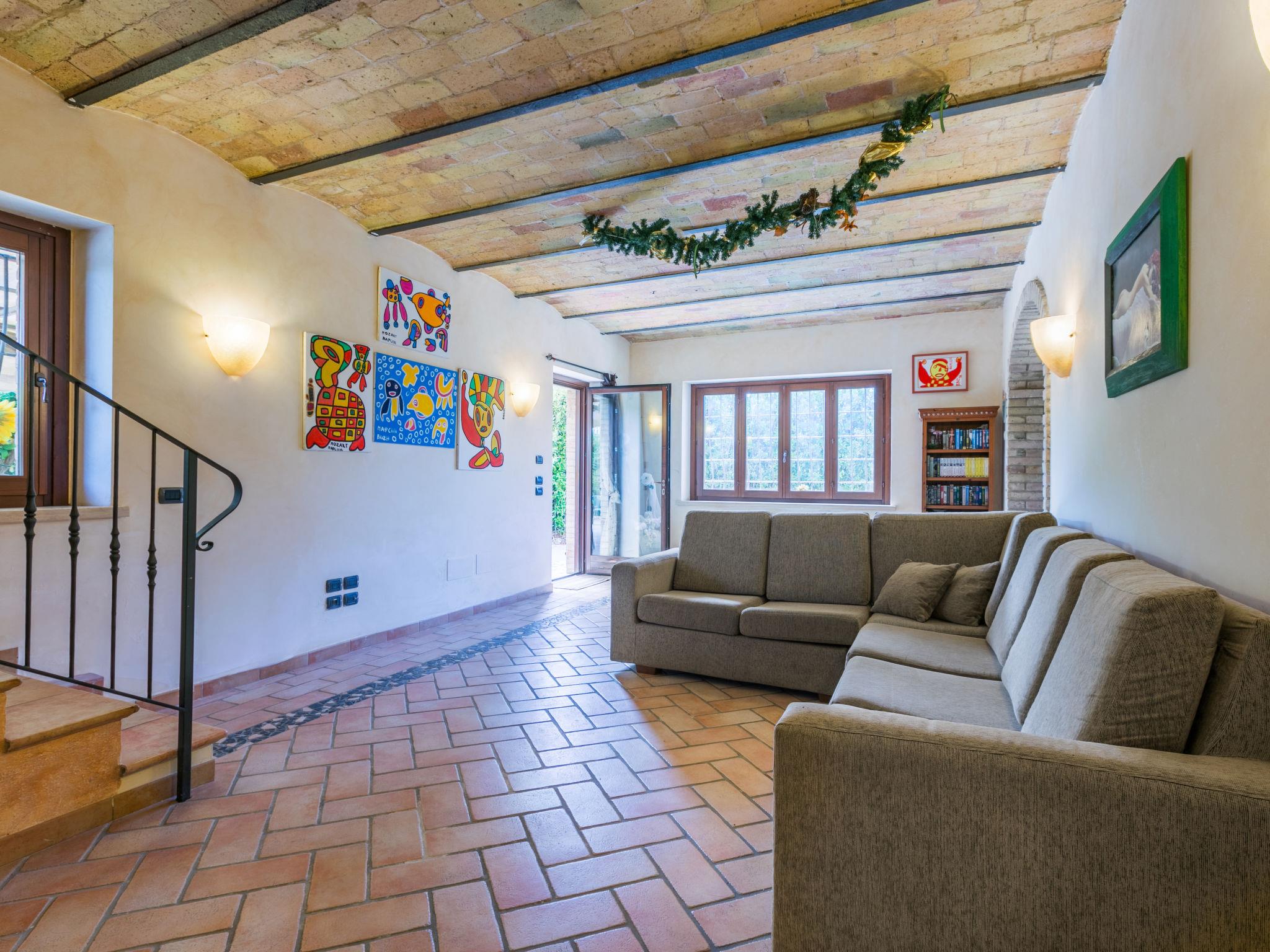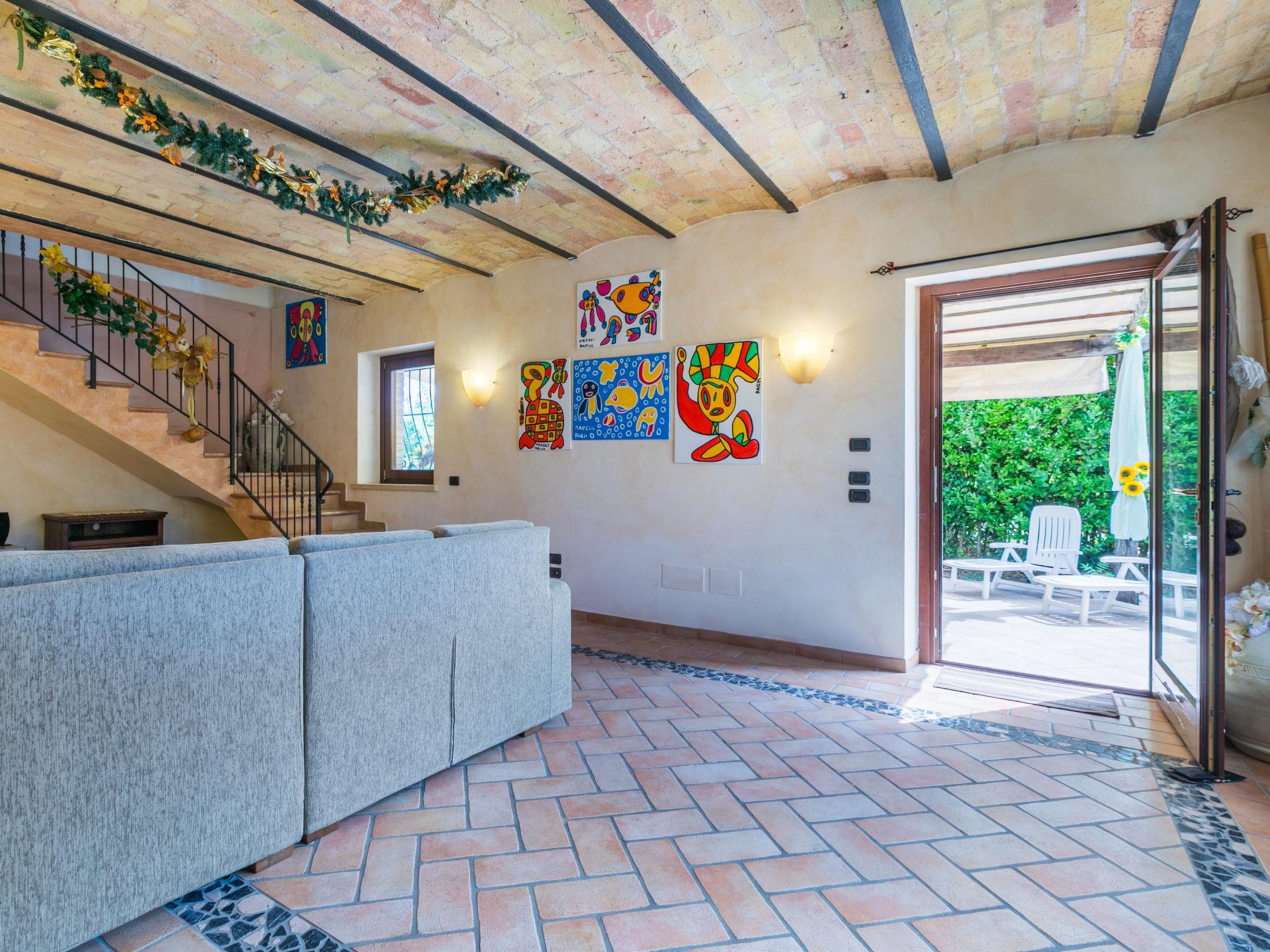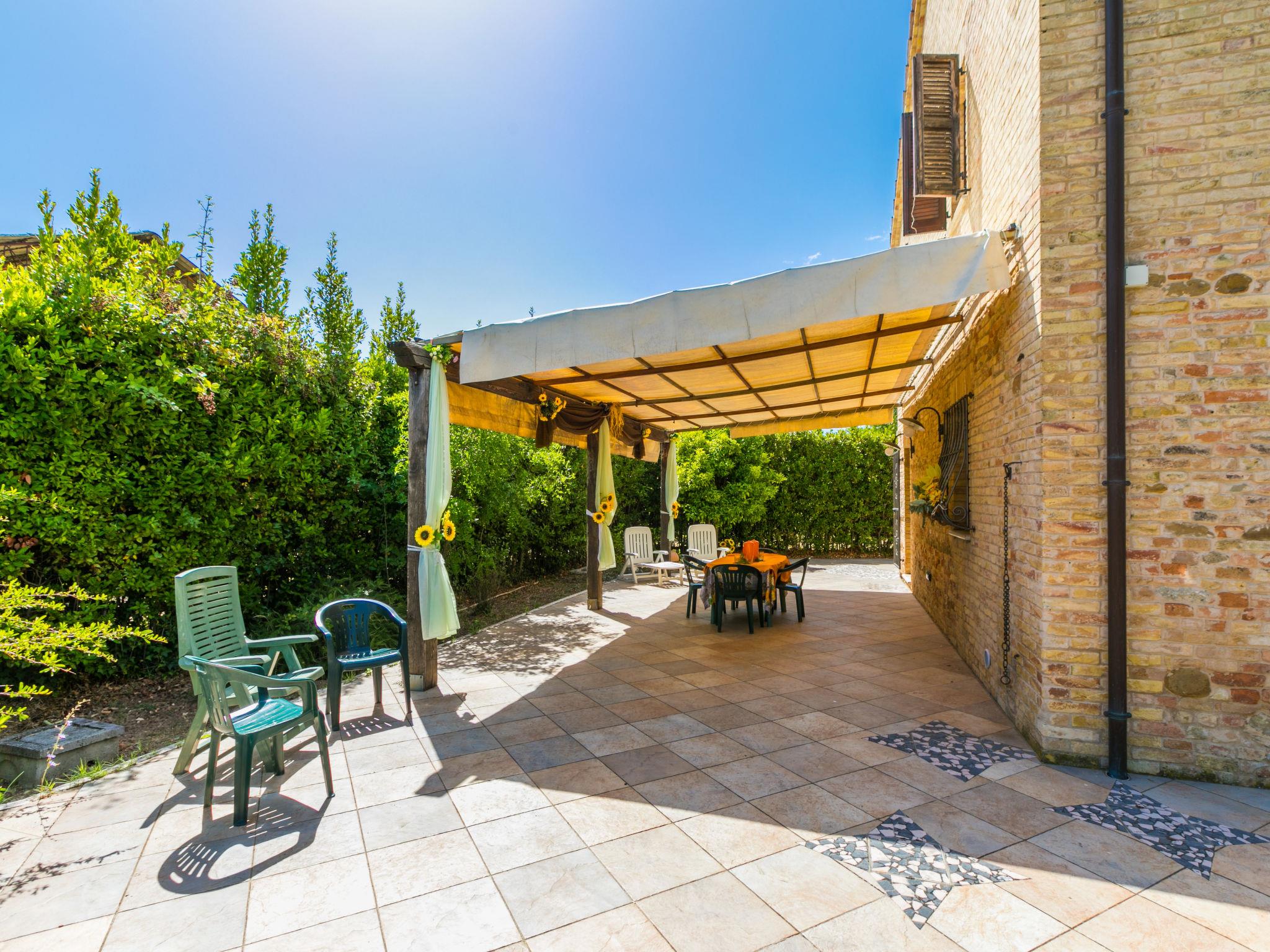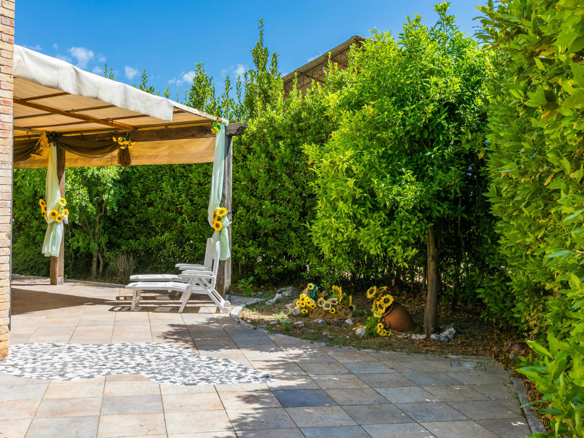 Large single-family house "Al Bivio", 2 storeys. 3 km from the centre of Castorano, outside the resort, 6 km from the centre of Borgo Miriam, in a secluded, sunny, elevated position. Private: garden 300 m2 (fenced) with wildlife garden and trees, natural garden, orchard, parking. Shop 6 km, shopping centre 16 km, bus stop "Bivio Cantina Sociale" 100 m, railway station "San Benedetto del Tronto" 24 km, sandy beach "Porto d'Ascoli" 16 km. Nearby attractions: San Benedetto del Tronto 23 km, Ascoli Piceno 27 km. Please note: car recommended.