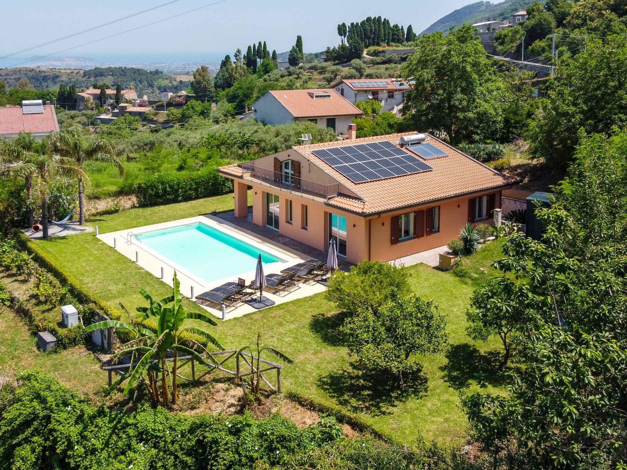 Villa Malú is a traditional Sicilian Villa located on the hillside of northern Sicily near Castroreale, which was ranked Italy’s 2nd most beautiful village in 2018. It is fully fitted to a high standard with quality bamboo furnishings and uniquely positioned with a large private garden with spectacular sea views overlooking the world renowned Aeolian Islands, which can be seen from the villa’s very own private heated pool with hydro-massage. De-stress with the perfect escape from the hustle and bustle of city life and enjoy the peace and serenity of the best of Sicily. This property offers access to a large patio and a private parking space for up to three cars.