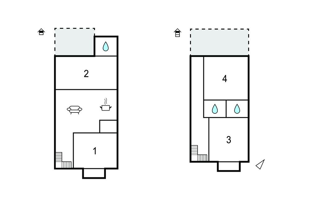 Soveværelse 14m2 (nr. 4) - 1 Soveplads. (Enkeltseng(e)). 2 Sovepladser. (Dobbeltseng(e)).