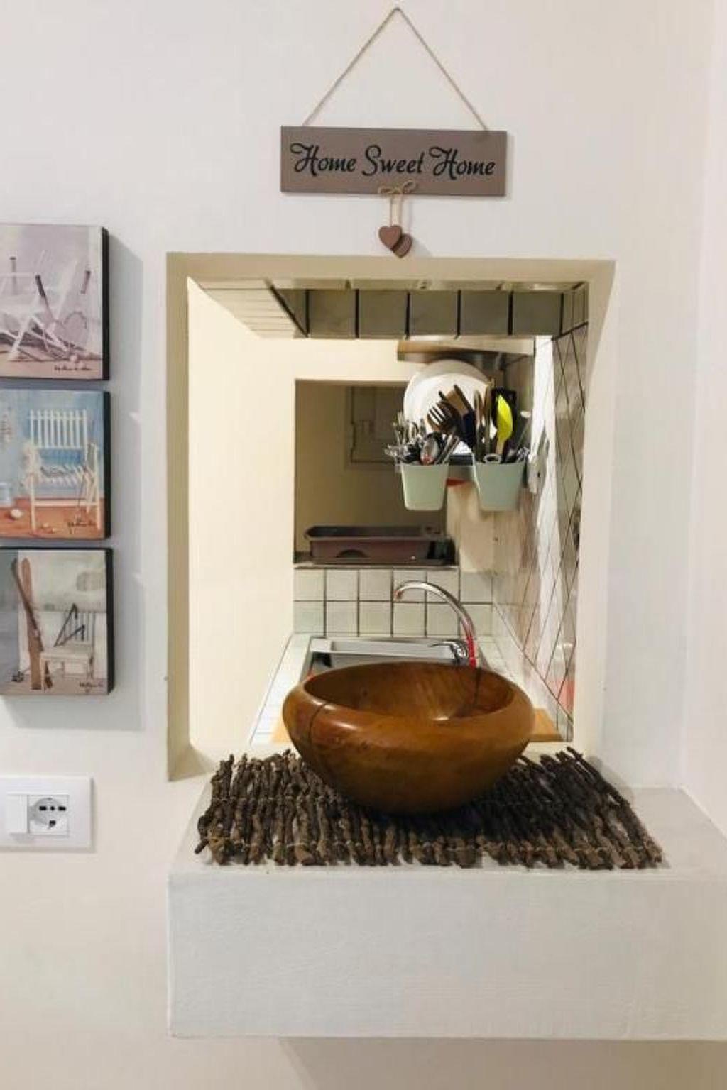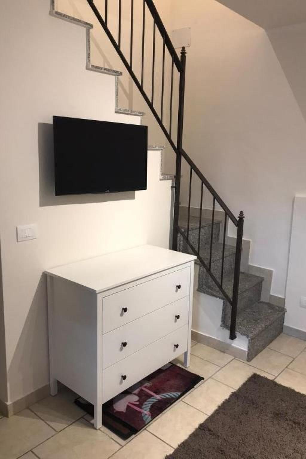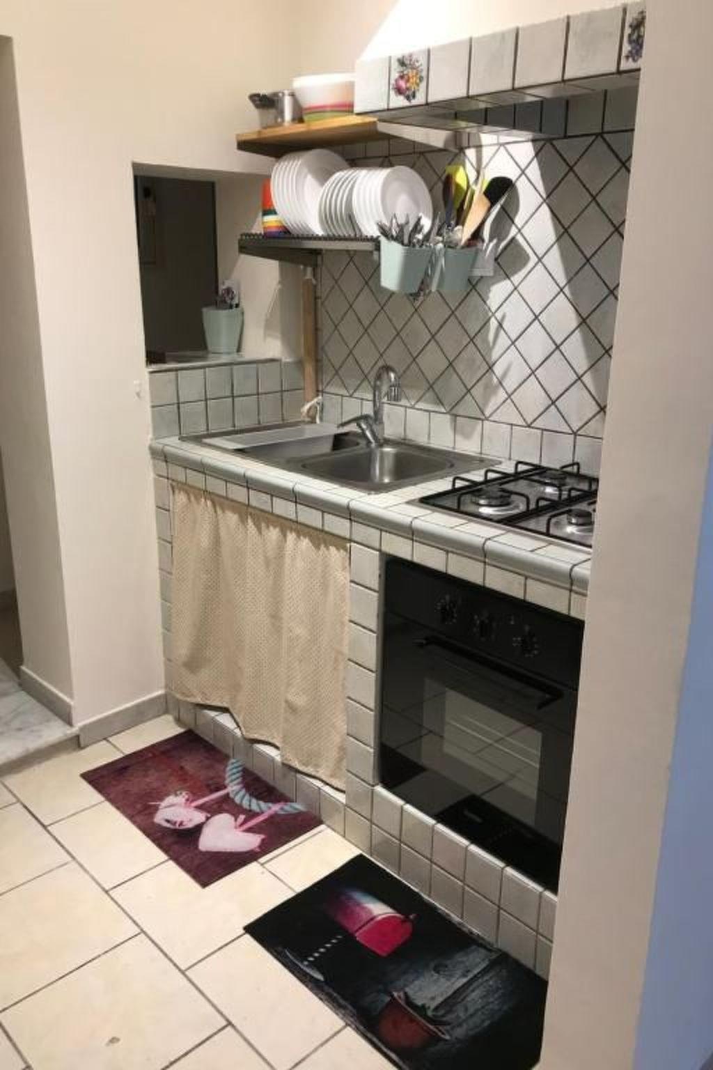 Composed of a ground floor where we find a small kitchen equipped with oven, fridge, coffee machine with capsules, kettle and toaster. . then a bathroom with shower, equipped with thermo furniture and hairdryer .. a small recess where there is housed the washing machine . .. a small living room with a double sofa bed, on the upper floor, a double bedroom and one with a double bed...
