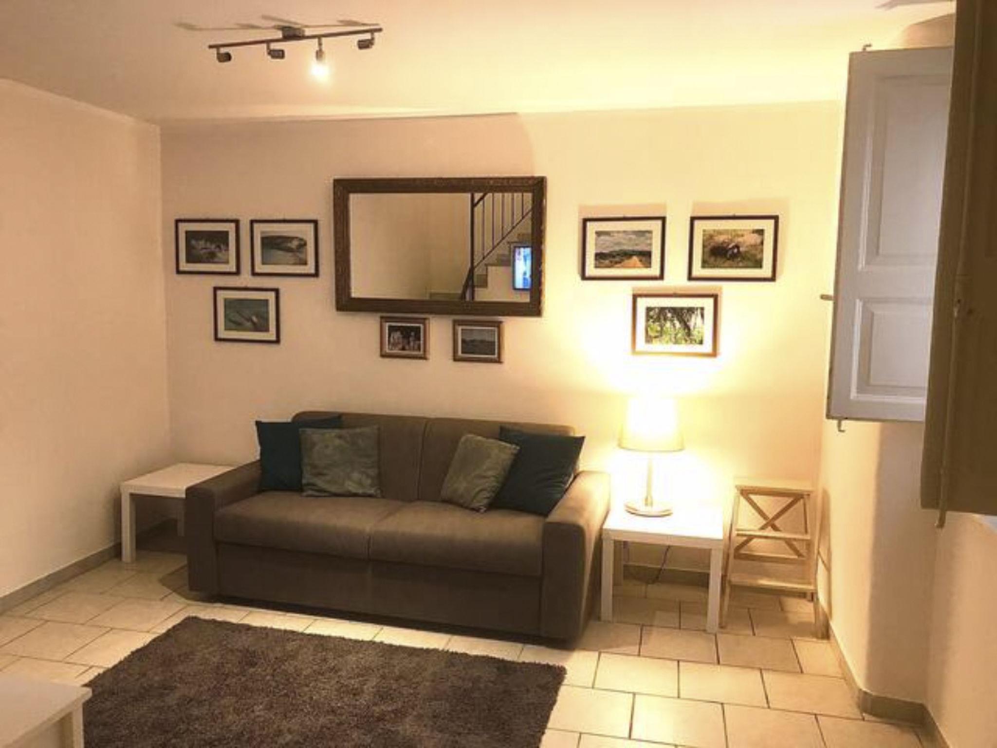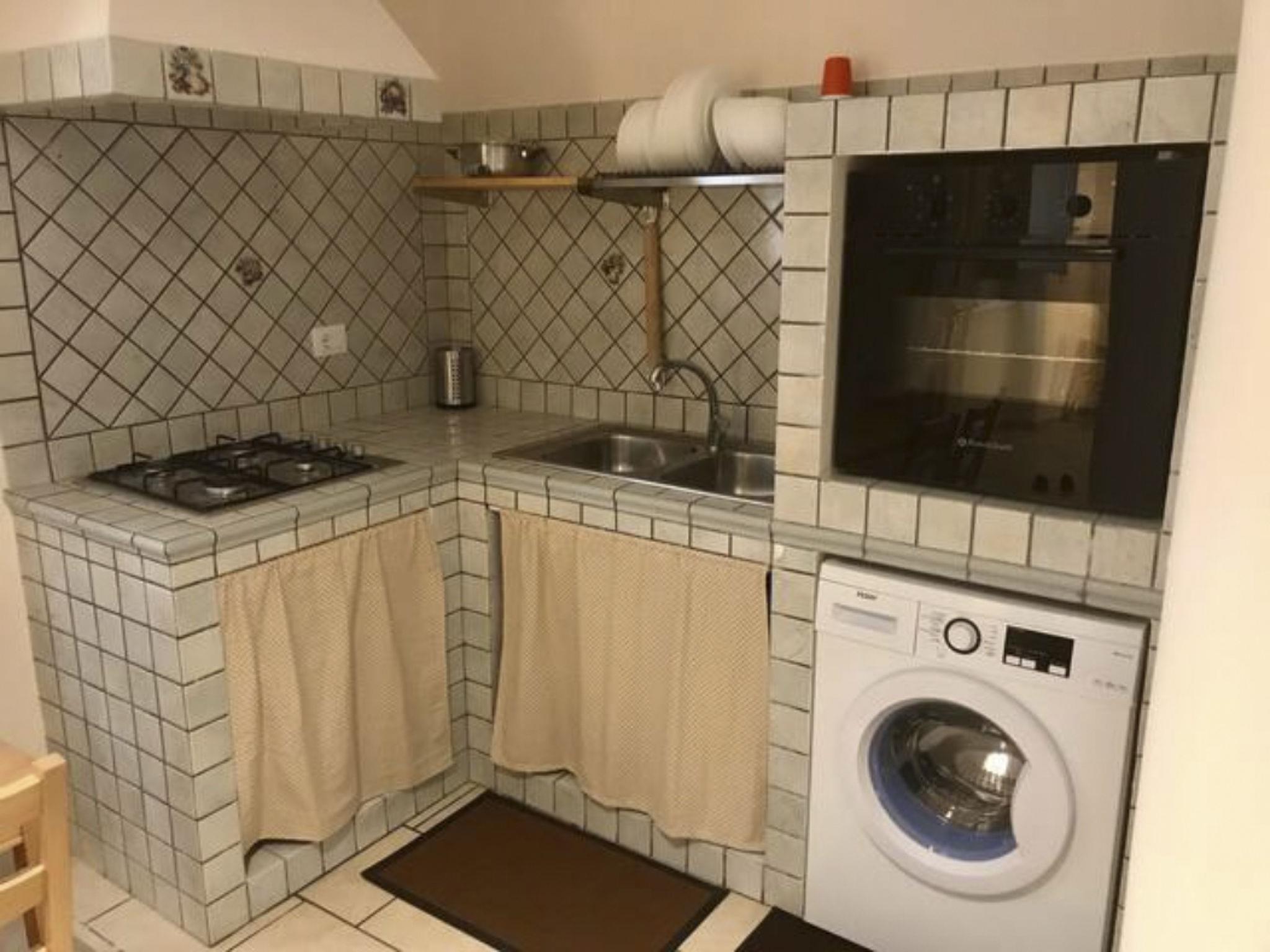 Comprising a ground floor where we find a kitchen equipped with oven, fridge, coffee machine with capsules, kettle and toaster, a bathroom with shower, equipped with thermo furniture and hairdryer and a small recess where there is housed the washing machine; a small living room with sofa bed, upper floor, two double bedrooms.