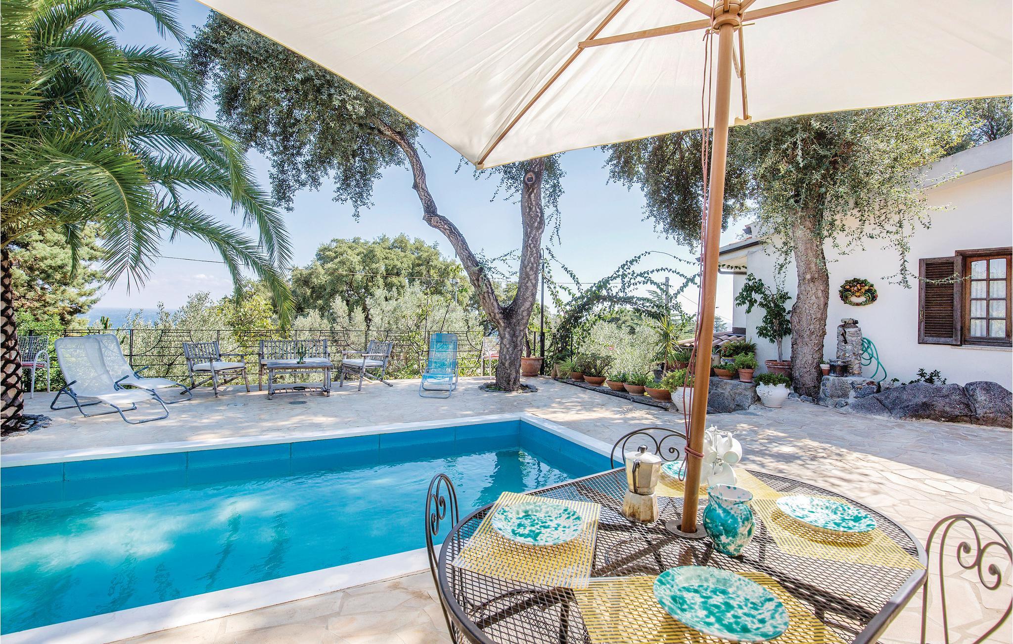 Ferielejlighed i et hus med to lejligheder, med adgang til privat pool, med beliggenhed på en bakke med udsigt over Copanello, ved den Ionske kyst i Calabrien, kun 700 meter fra havet. Ideelt til den store familie på grund af den store grund og en have med legeplads til jeres børn. Anlægget er omgivet af plæner. Tagterrasse med pool og udendørs område med grill og borde og stole til at nyde maden på. Boligen er indrettet i flere planer der er forbundet med trin både uden- og indendørs. Den består af et hovedhus og en sidebygning med køkken, der ligger højt og har egen indgang.