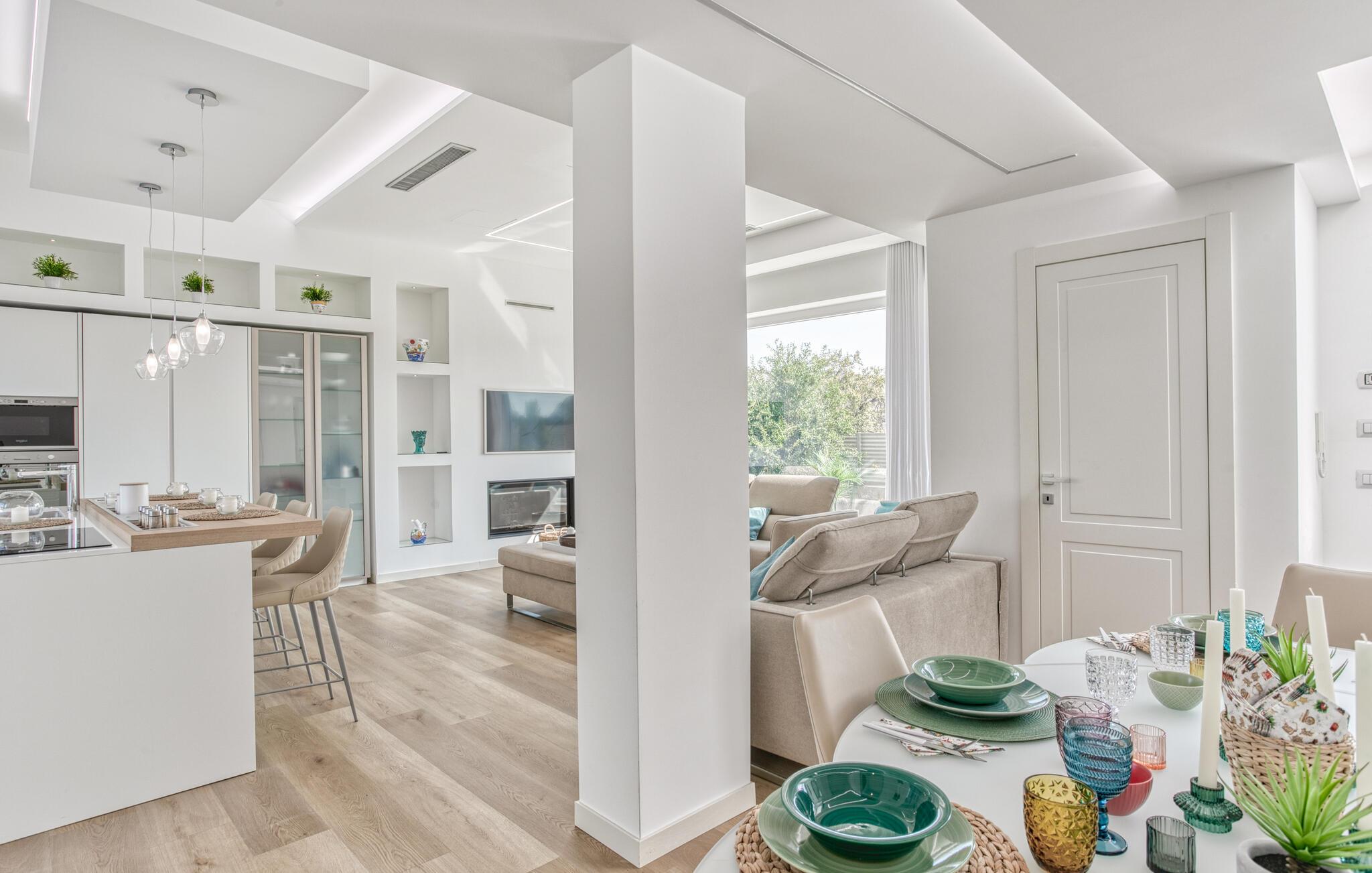 Velkommen til dette indbydende og børnevenlige hus, der ligger på den østlige del af Sicilien. Huset er smagfuldt indrettet i lyse farver, og I vil hurtigt føle jer hjemme. Her kan I lade en feriedag gå på hæld med en fælles aftensmad for hele familien, som I måske vil udfordre til brætspil bagefter? I skal bare gøre jer det behageligt i sofaerne, hvor I kan sludre til langt ud på natten.