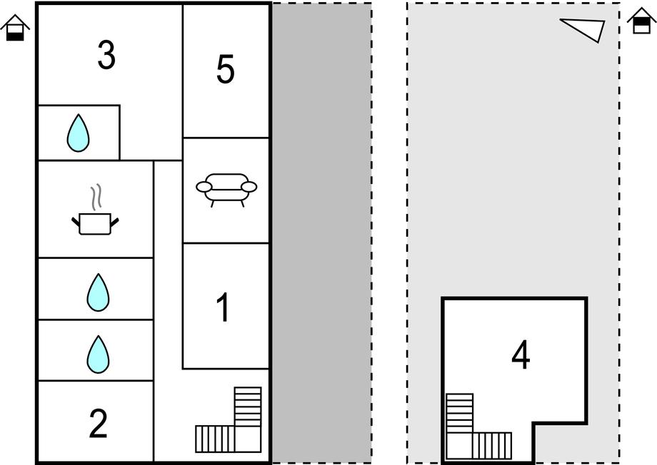 Soveværelse 36m2 (nr. 5) - 1 Soveplads. (Enkeltseng(e)). 2 Sovepladser. (Dobbeltseng(e)).