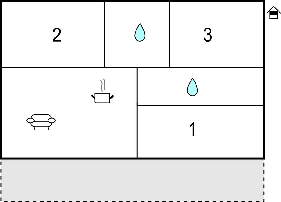 Badeværelse 4m2 (nr. 1) - WC. Varmt og koldt vand. Bruser