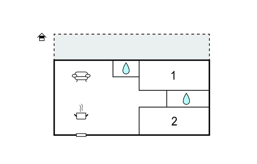 Opholdsstue/køkken 25m2 - 1 Soveplads. (Sofa, madras eller lignende).