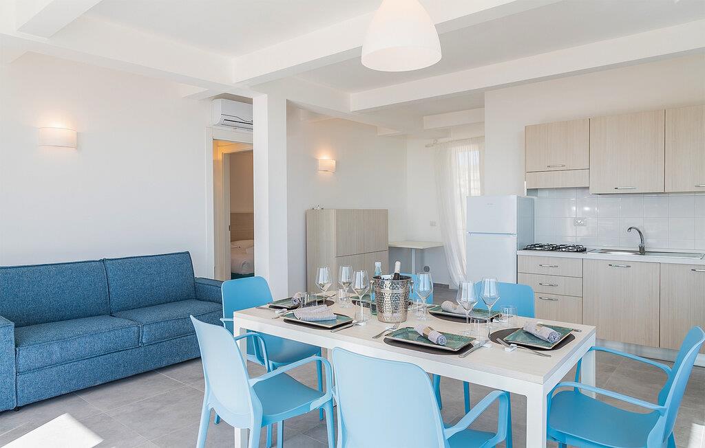 Boligen er pænt og lyst indrettet med gode møbler og nærmest maritime farveskalaer, der får skuldrene til at sænke sig og gør det nemt at komme ned i et behageligt tempo. Begynd dagen med at tilberede en lækker morgenmad i køkkenet og nyd maden ved spisebordet eller i den friske luft på altanen, hvor I kan mærke solens stråler og tabe kæben over udsigten, inden I tager på tur.