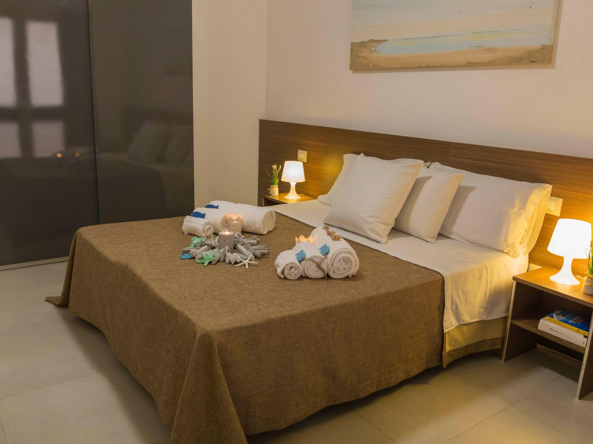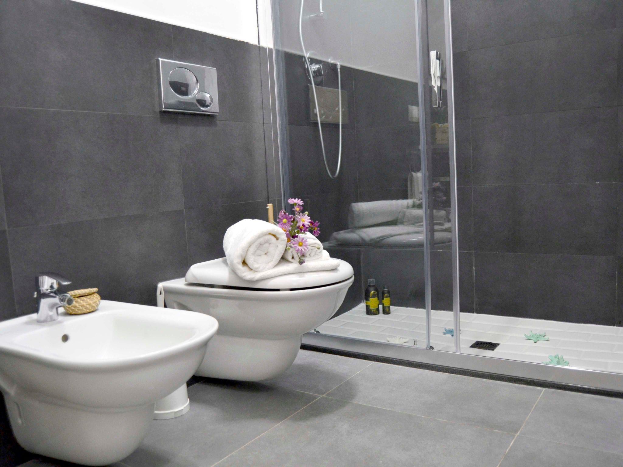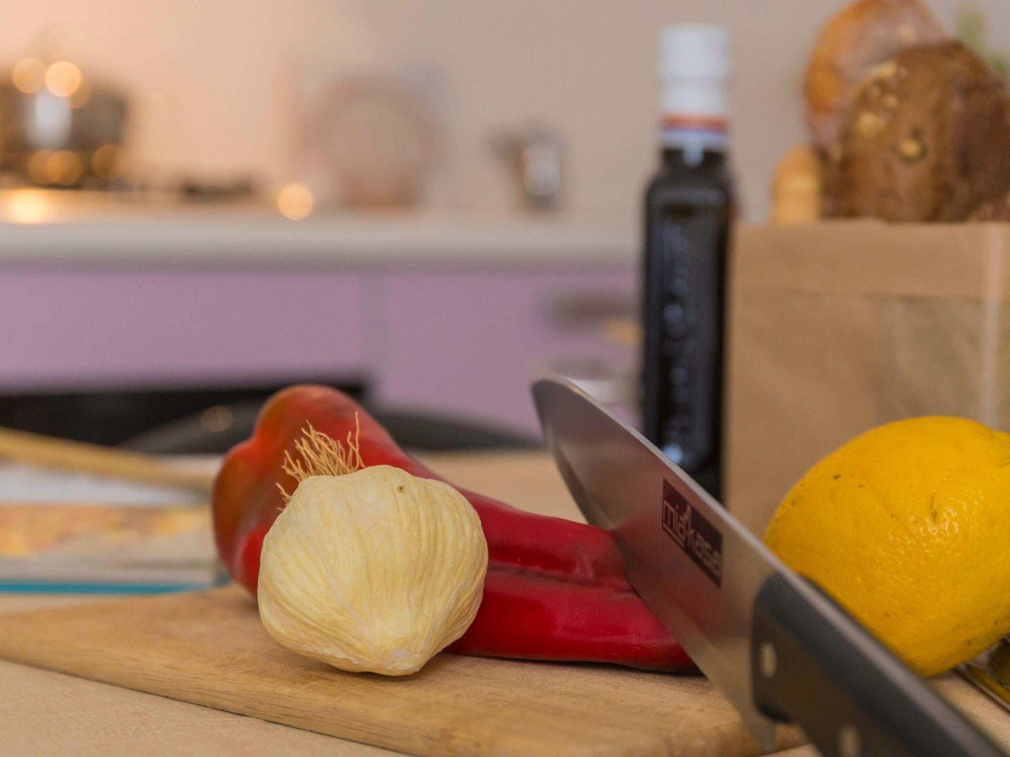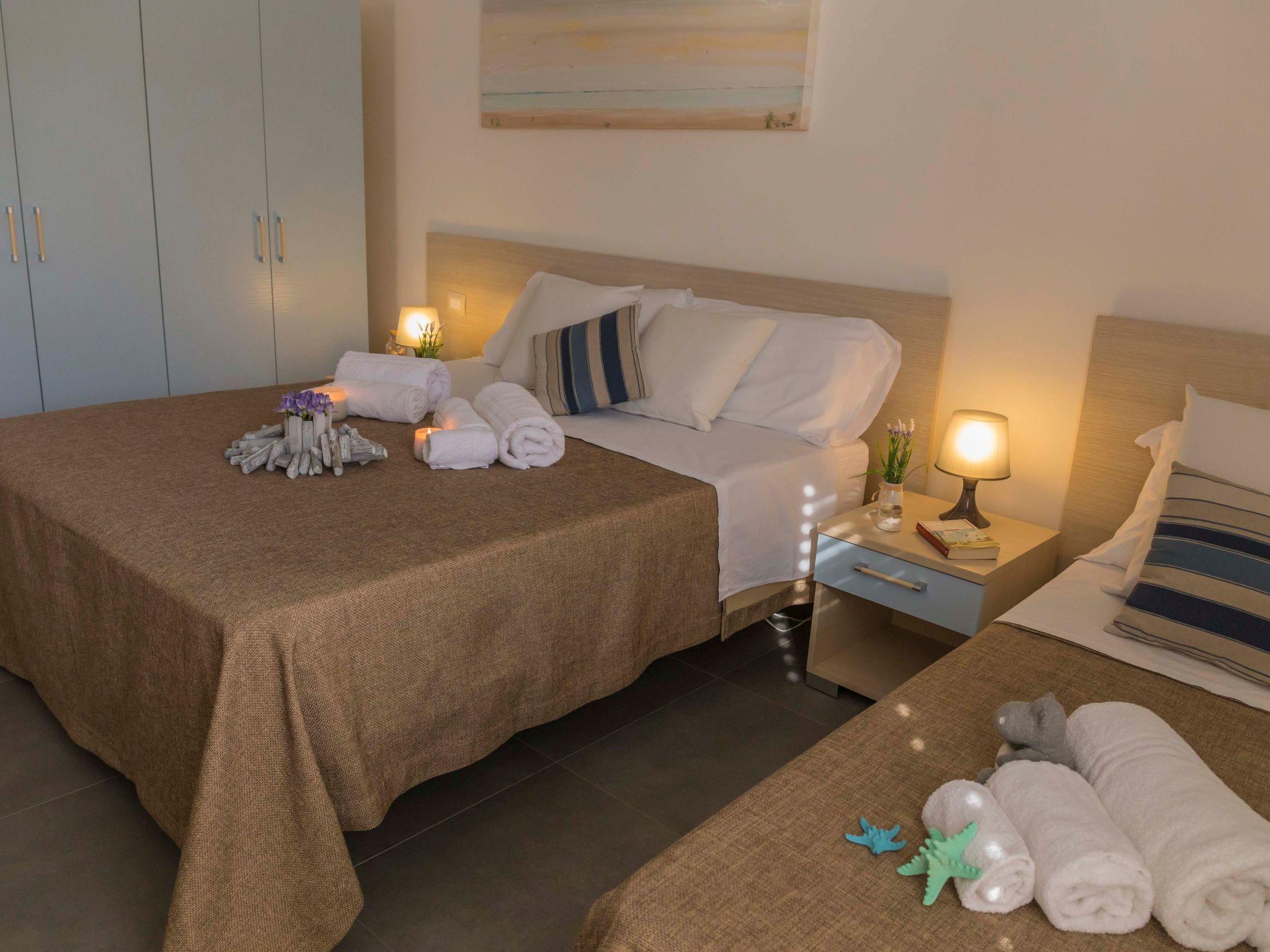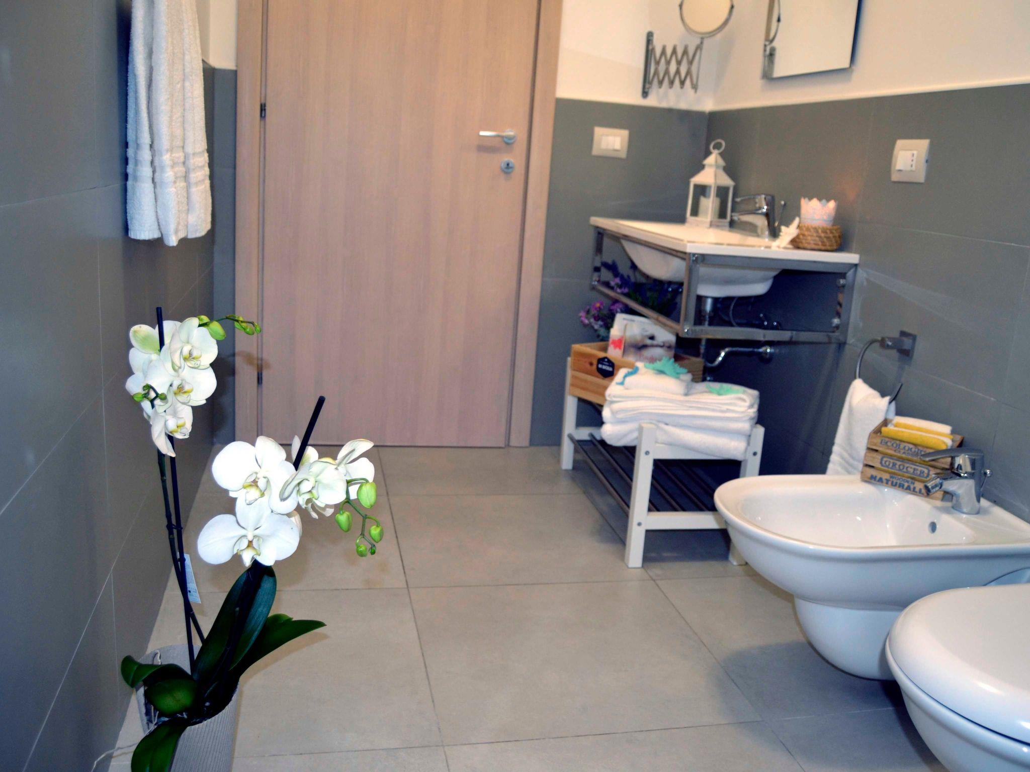 The holiday flat consists of two bedrooms, a large, fully equipped kitchen-living room with sofa bed and an elegant bathroom with two showers. One of the rooms is furnished with a double bed, the other with two single beds. The flat is tastefully furnished in a modern style. The fully equipped kitchen-dining room includes a gas cooker, an oven and a dining table with chairs. There is enough space for cooking and eating together.