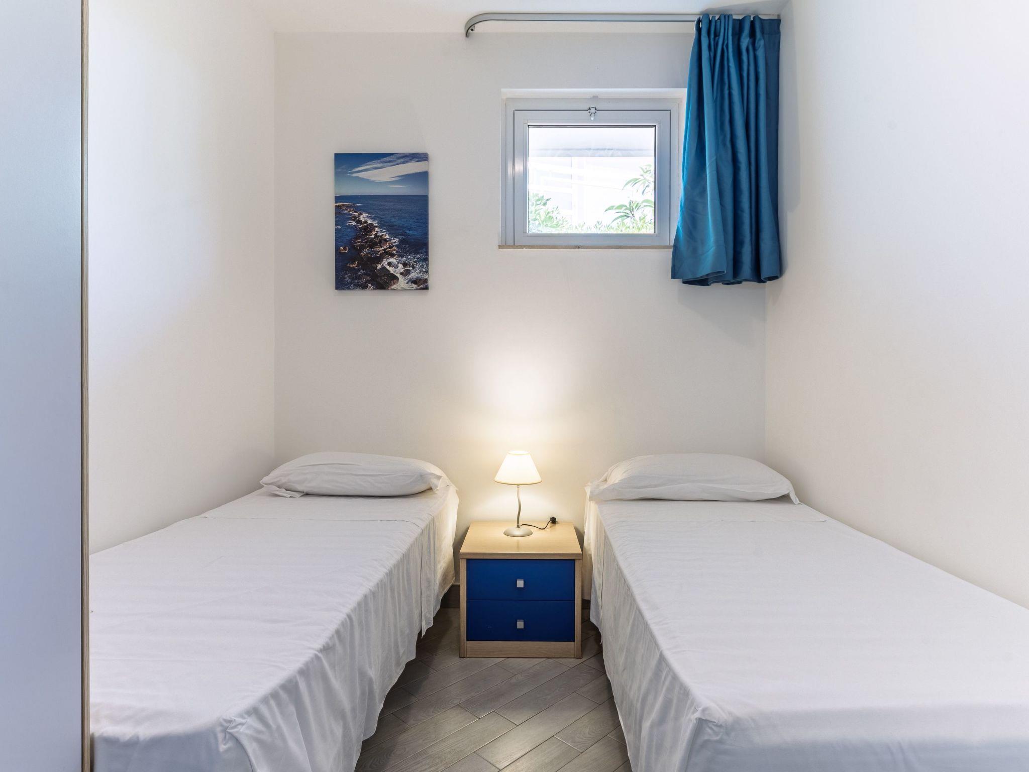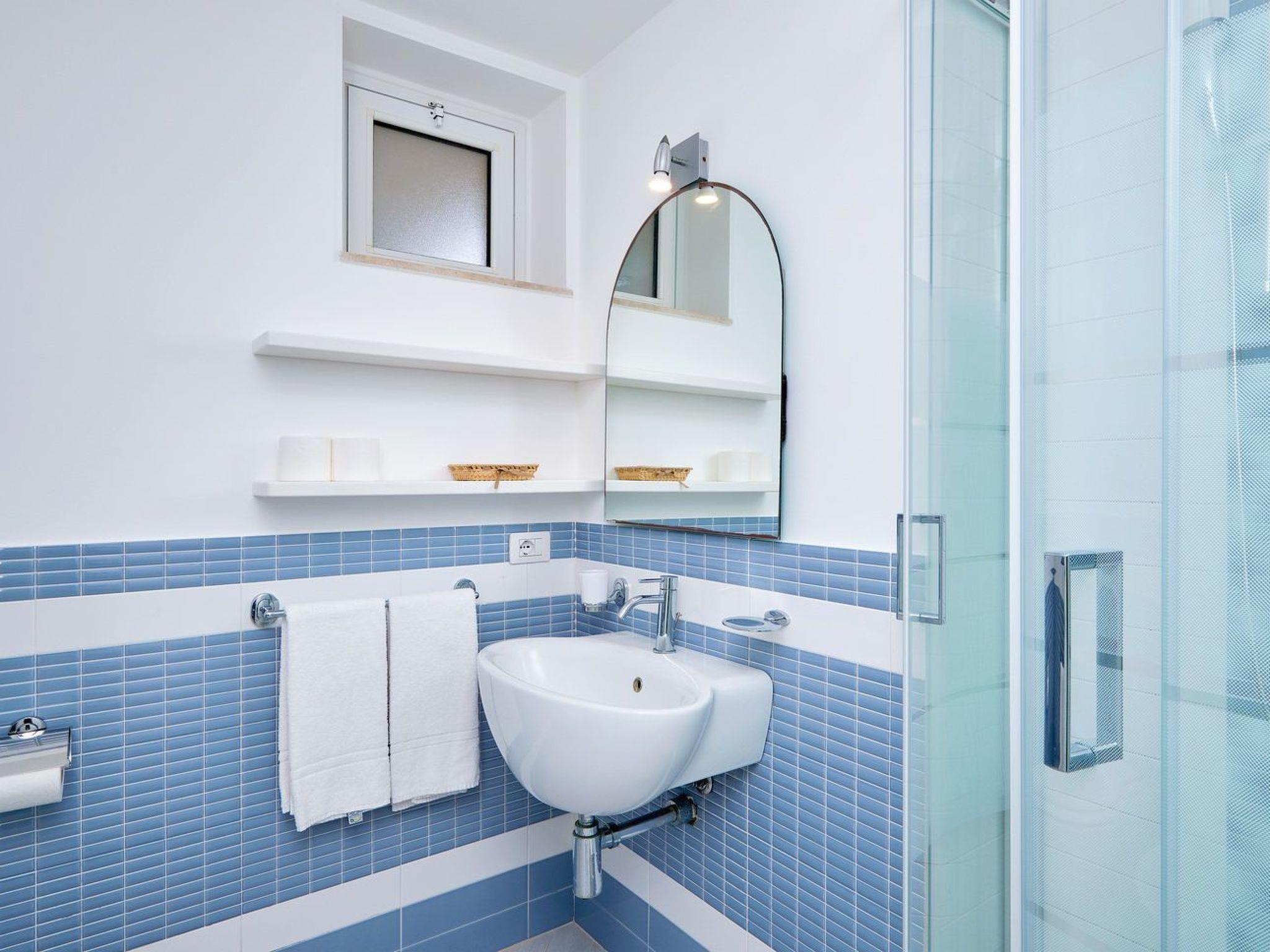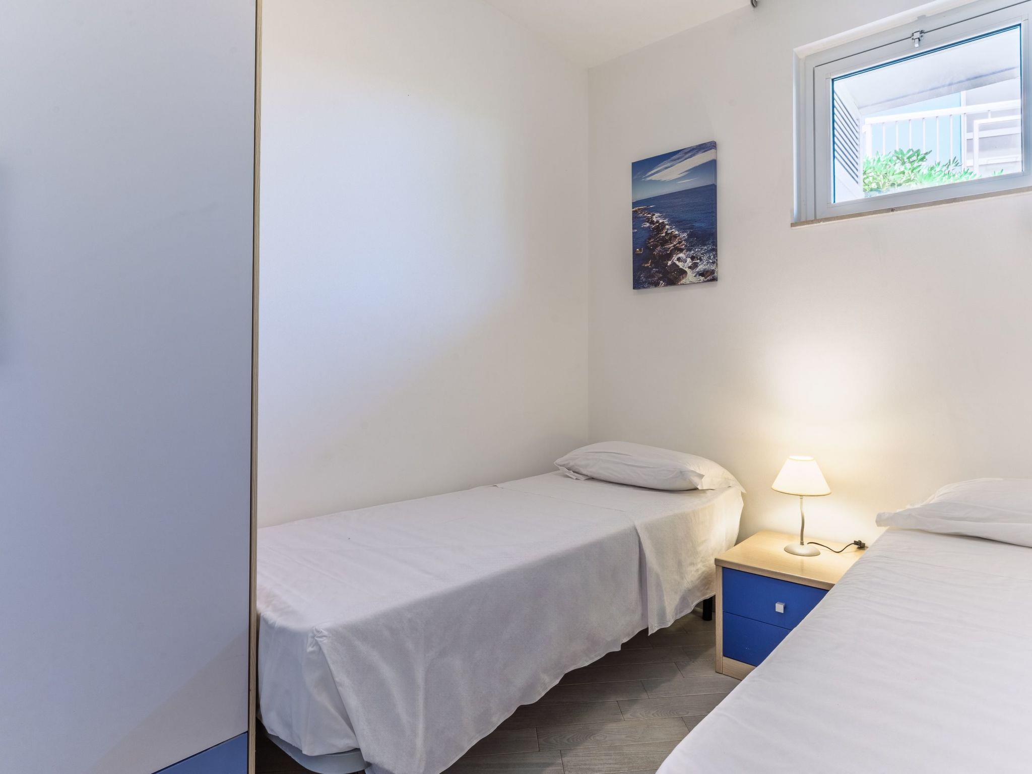 Description Ground floor with a garden and sheltered veranda, furnished to have alfresco lunch and dinner (there is a barbecue). A wide living room with sofa bed and a kitchen equipped with oven, fridge and freezer. Three bedrooms: one with queen bed, one with small double bed and one twin bedroom. Two bathrooms with shower. Centralized hot/cold air conditioning, washing machine and TV. Internet Wi-Fi. Reserved parking space inside the residence.