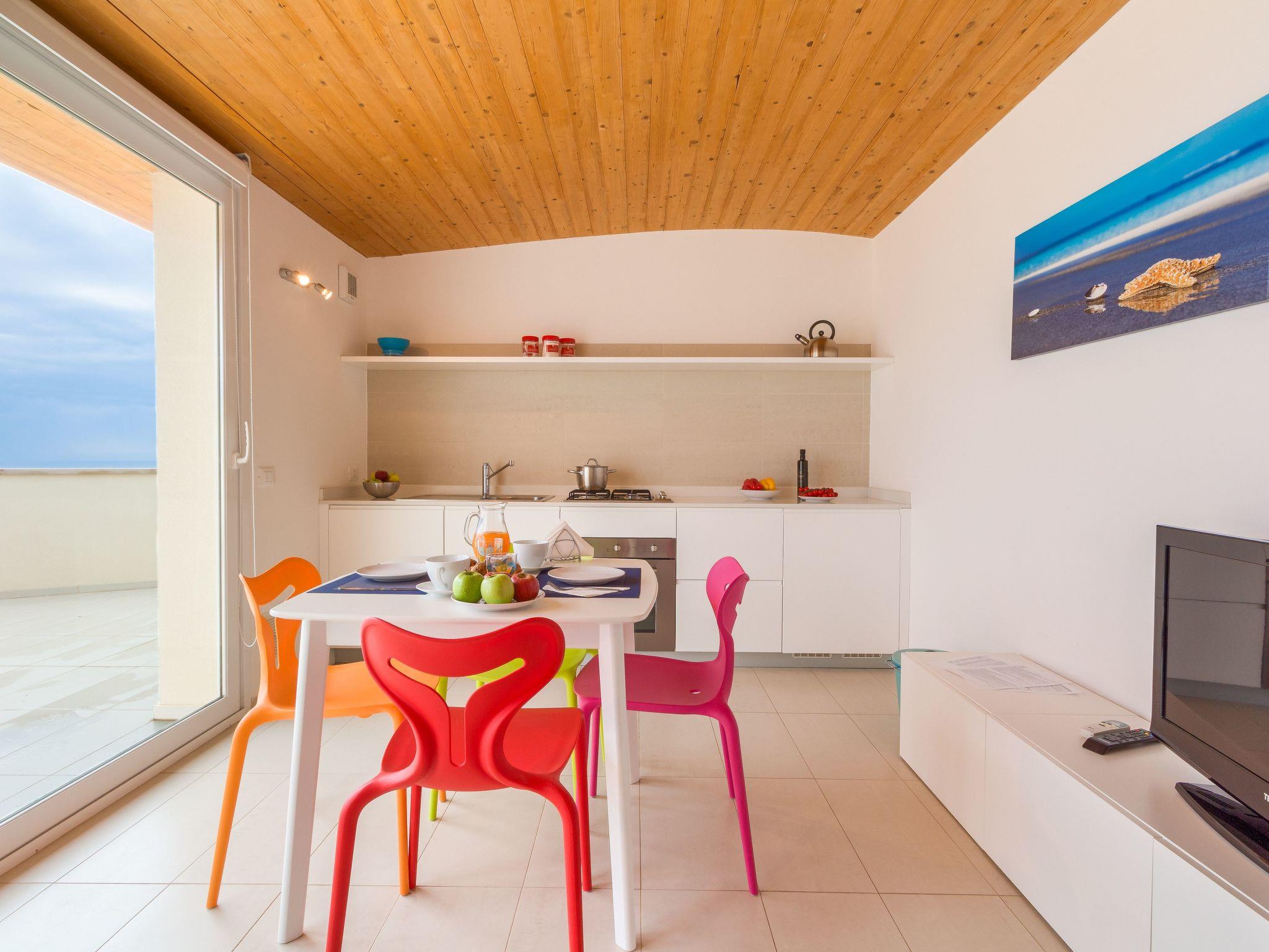 It is the perfect accommodation to relax and enjoy al fresco dining on the beautiful terrace. Small and comfortable, it is ideal for travelling as a couple. The apartment is located in a newly built residential complex, just 300 meters from the beach and the centre. You can move easily on foot. You will find all the comforts that will make your stay optimal.