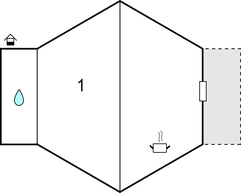 Opholdsstue/køkken - 2 Sovepladser. (Dobbeltseng(e)). 2 Sovepladser. (Etageseng(e)).
