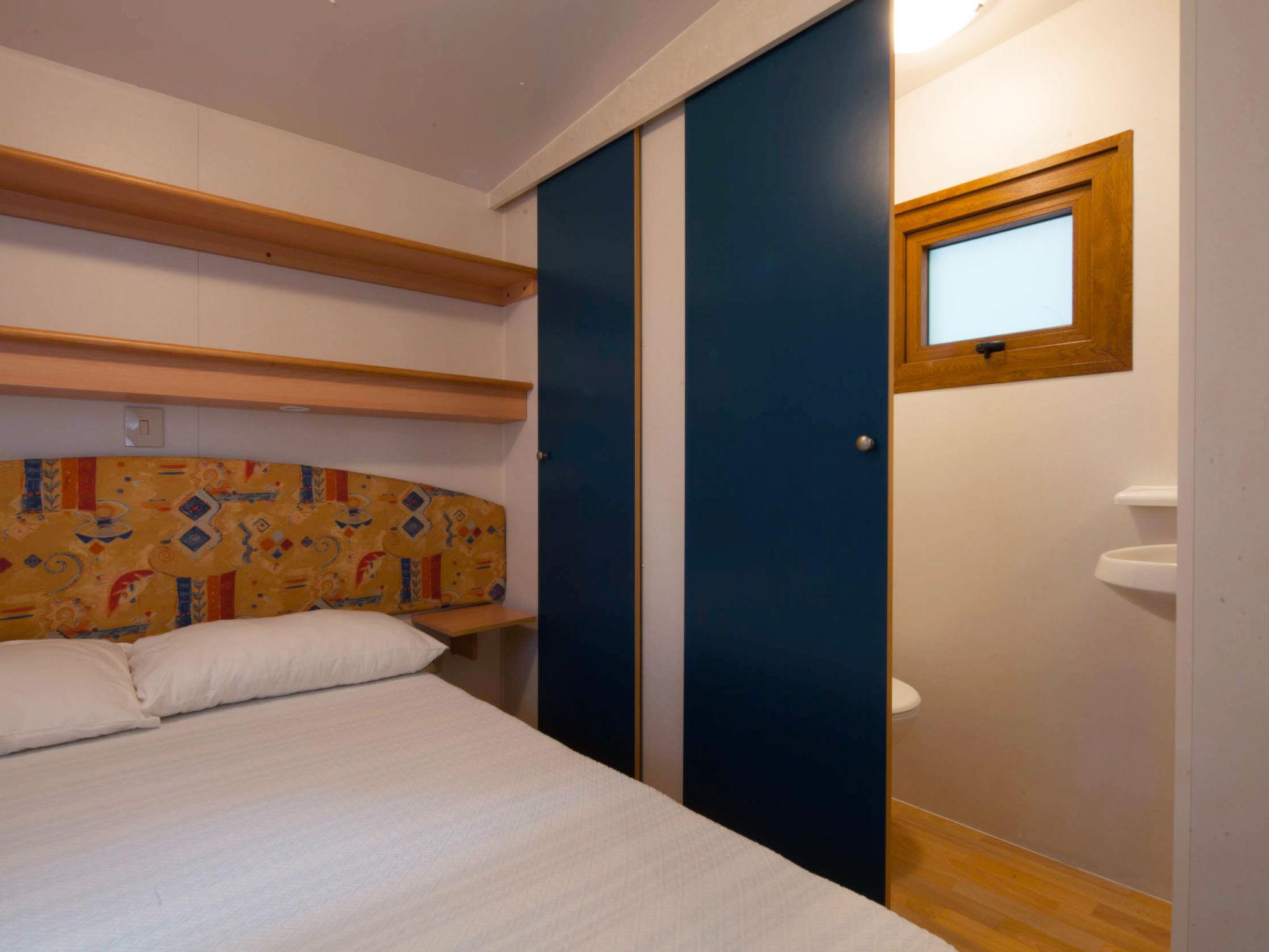 "Baia Comfort", 3-room mobile home 22 m2. Practical furnishings: living/dining room with dining table and satellite TV. 1 room with 1 french bed (140 cm), separate WC. 1 room with 2 beds (70 cm). Kitchenette (4 gas rings). Shower/WC. Air-conditioning, forced-air heating (extra). Terrace roofed. Terrace furniture. Parking (1 car). Please note: non-smokers only. Maximum 2 small pets/ dogs allowed. IT027044B1OWGM56Q6