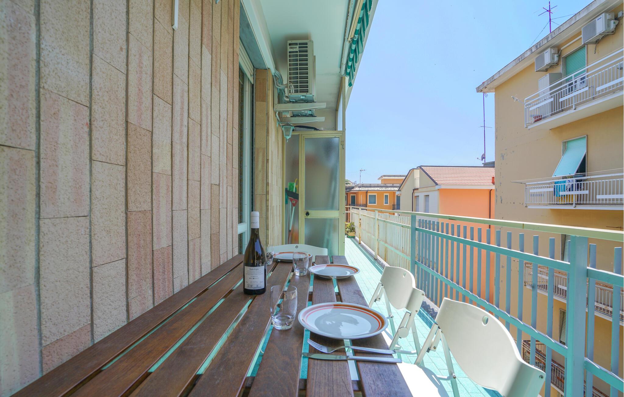 Den charmerende indkvartering i Cavi di Lavagna giver jer ikke kun komfort, men også en fremragende beliggenhed til at opleve denne fascinerende kystby. Begynd jeres dage med morgenmad på balkonen og nyd udsigten over byens tage. Den elegante opholdsstue er optimal til at slappe af efter en begivenhedsrig dag. Find jer godt til rette i de komfortable sofaer og fordøj alle dagens spændende indtryk.