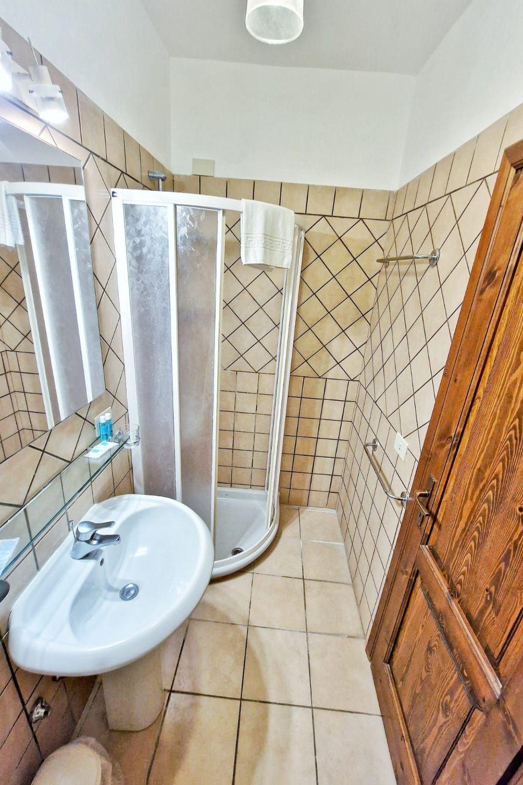 Comprising living room with kitchenette and double sofa bed (entrance with double French window, large ante-bathroom with bunk bed, private bathroom with shower cubicle (no window), bedroom (with window on service corridor side with natural light and naturally ventilated) with double bed + single bed and private service bathroom with window also on corridor side. Colour TV, air conditioning, standard fridge. Covered veranda equipped with table and chairs.